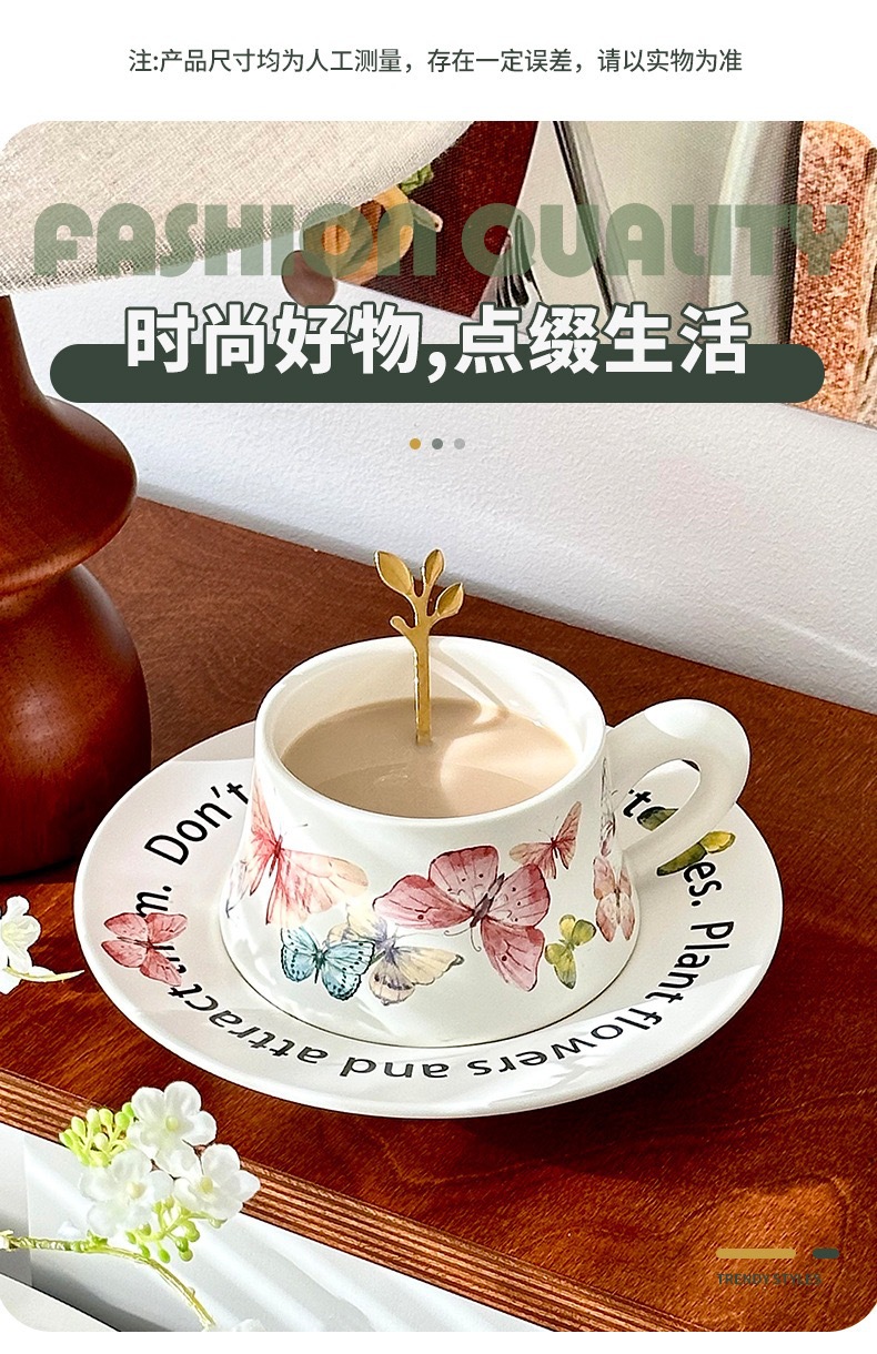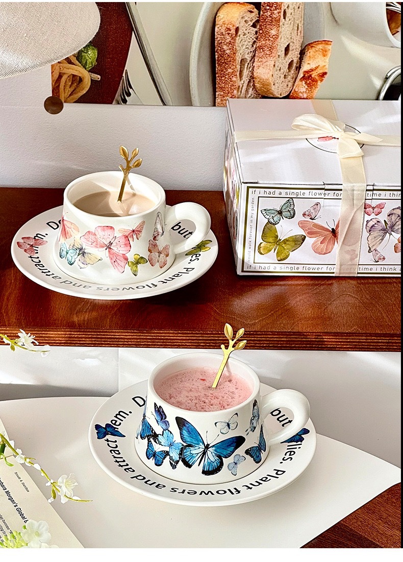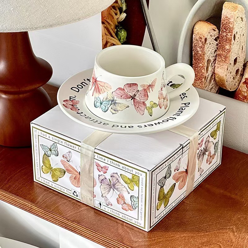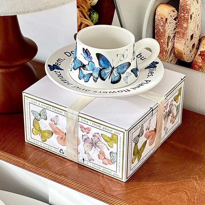 高级感蝴蝶咖啡杯碟套装精致陶瓷下午茶女生生日礼物高颜值伴手礼
