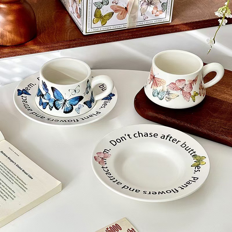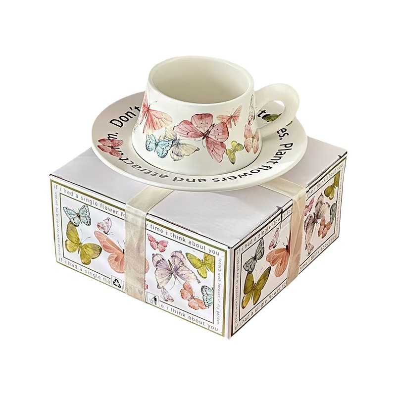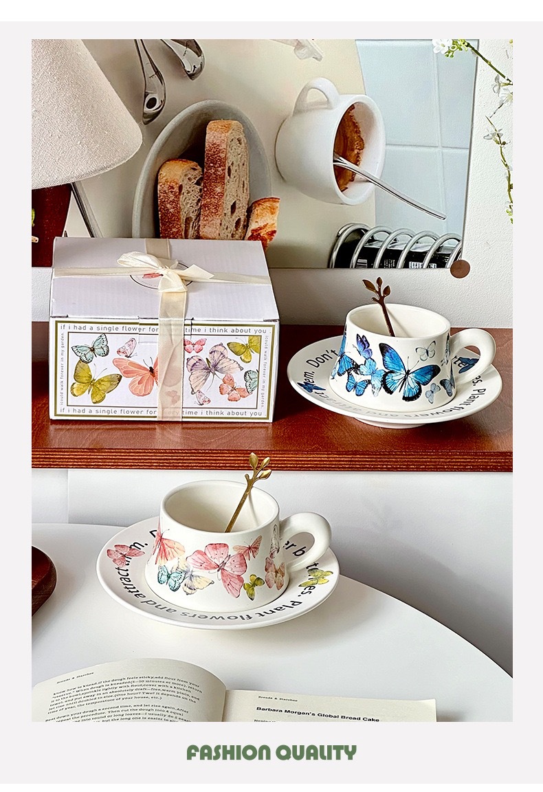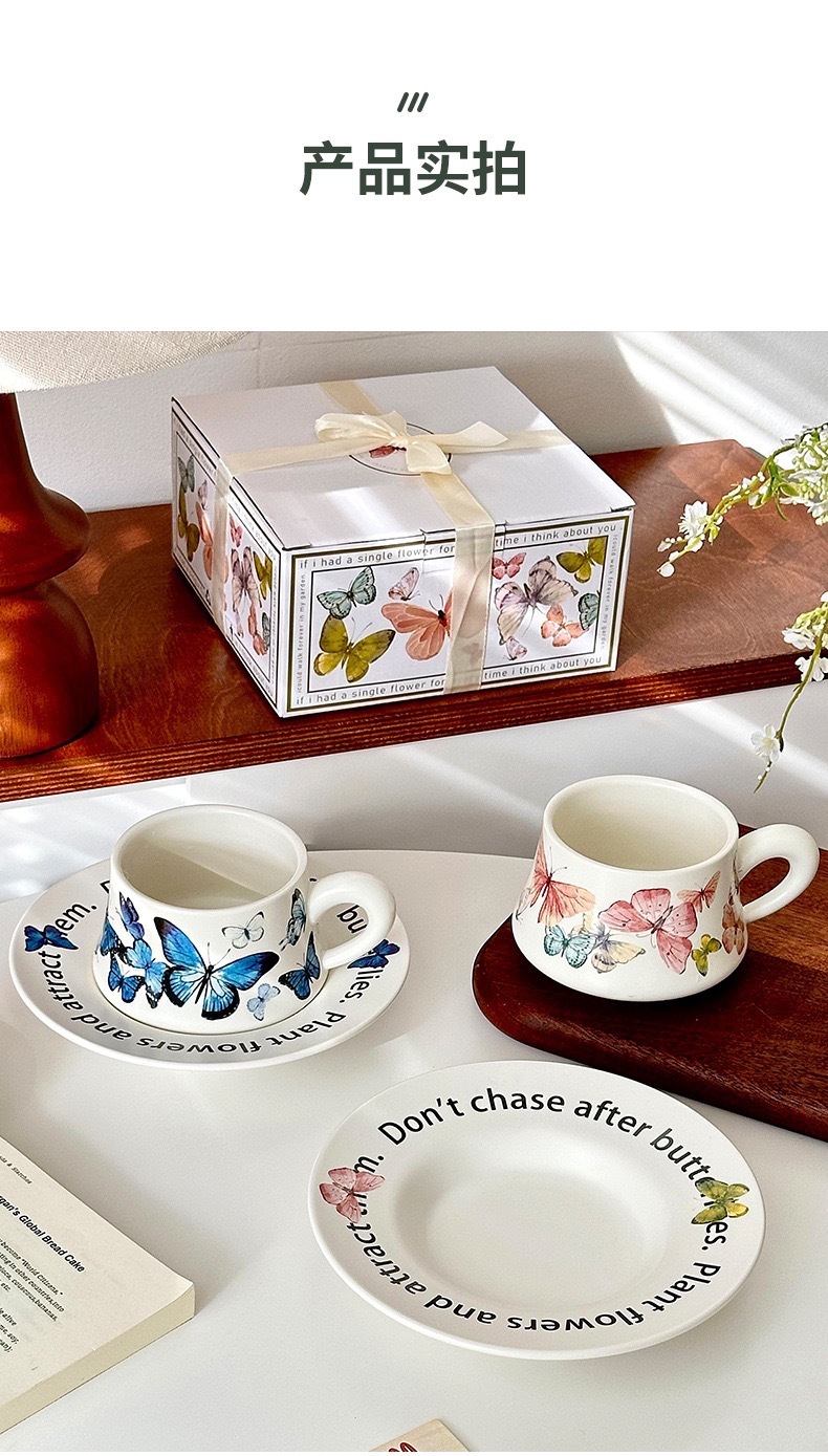 高级感蝴蝶咖啡杯碟套装精致陶瓷下午茶女生生日礼物高颜值伴手礼