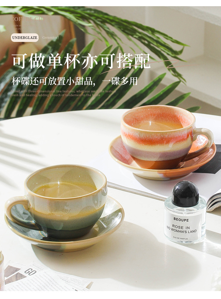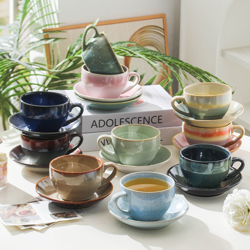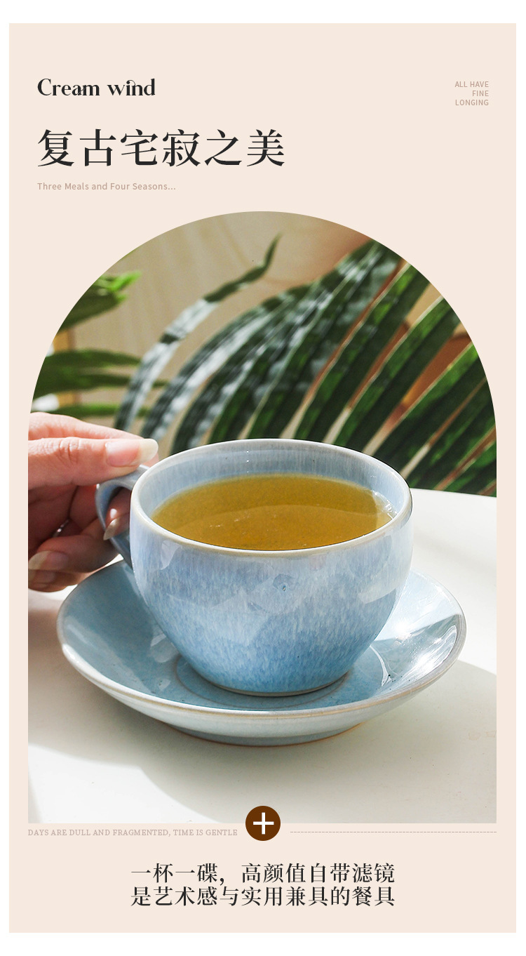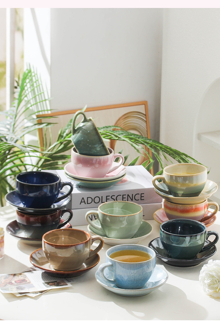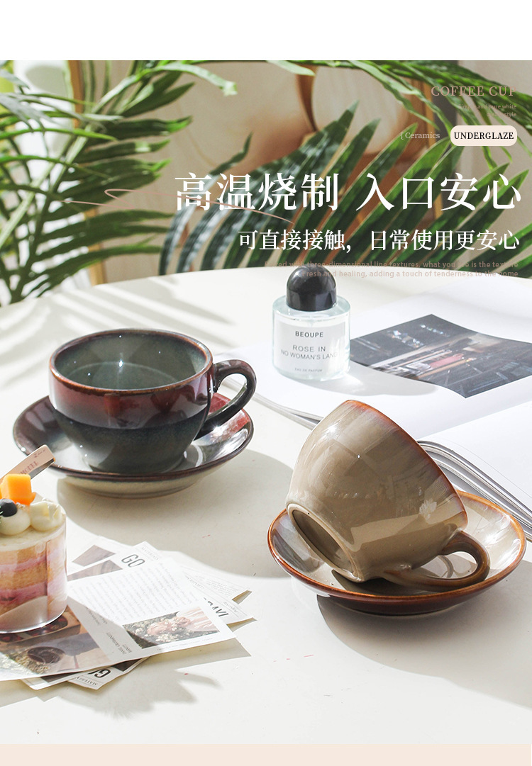 日式复古陶瓷马克杯咖啡杯餐厅商用家用午茶杯拿铁杯拉花杯套装