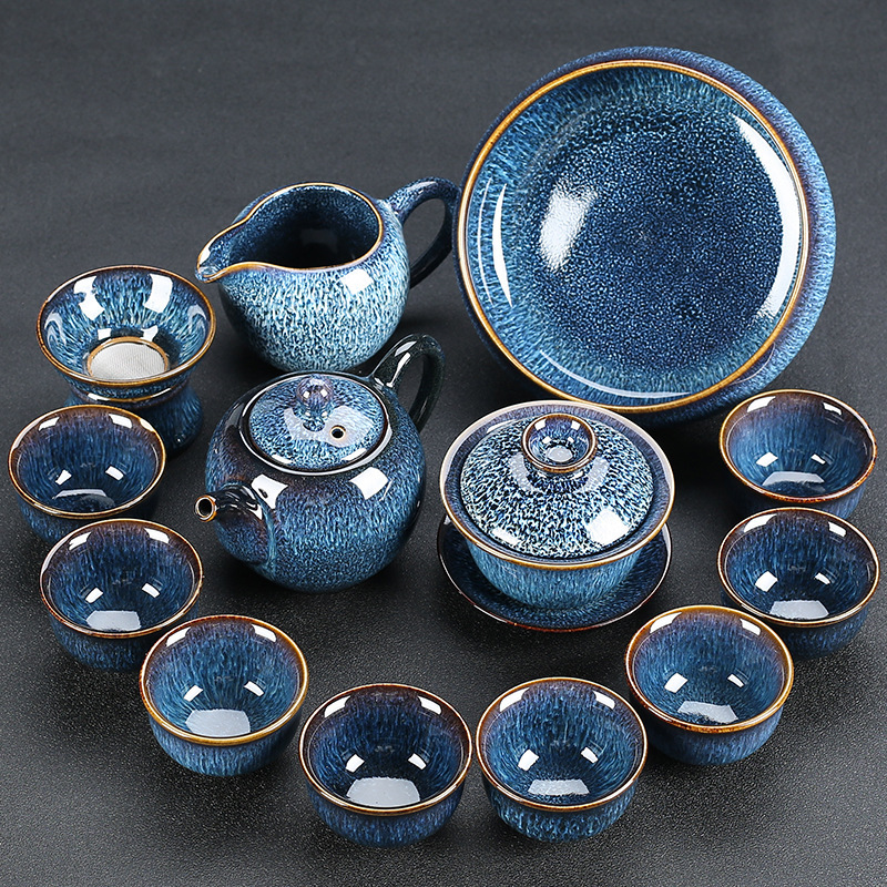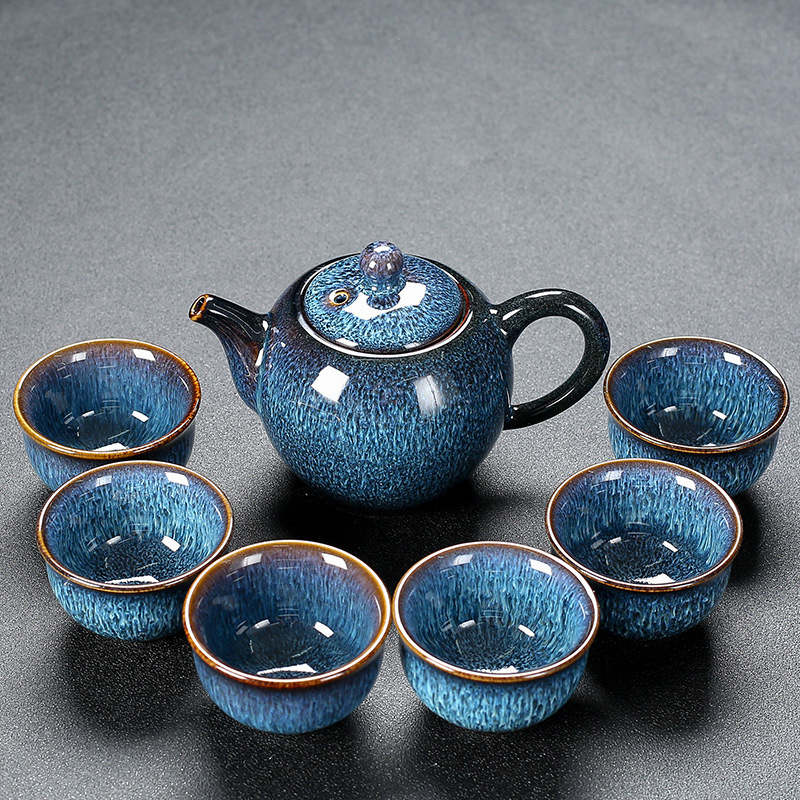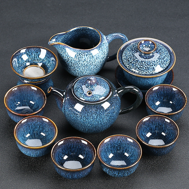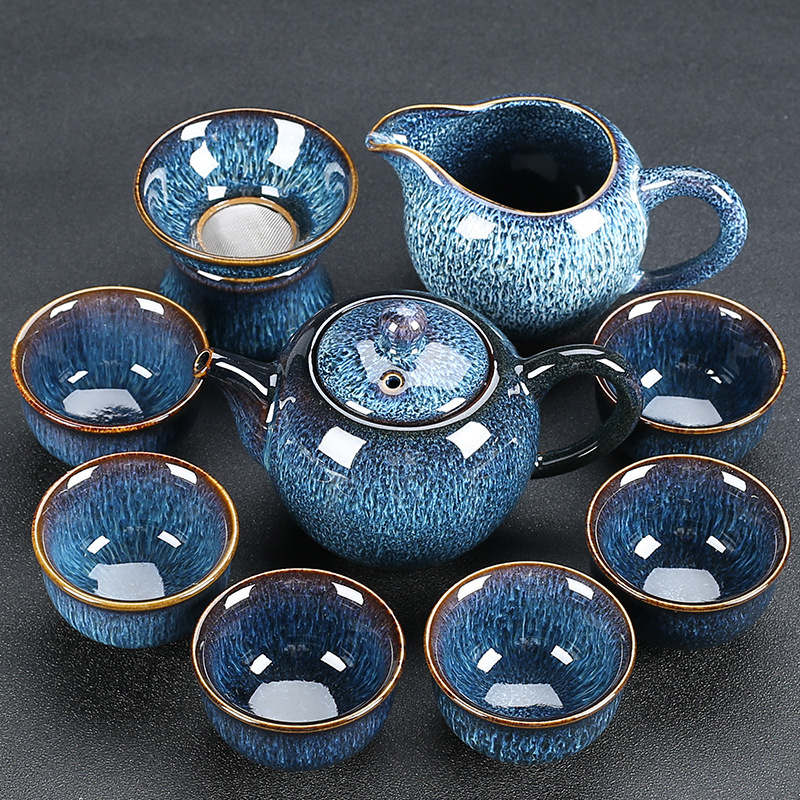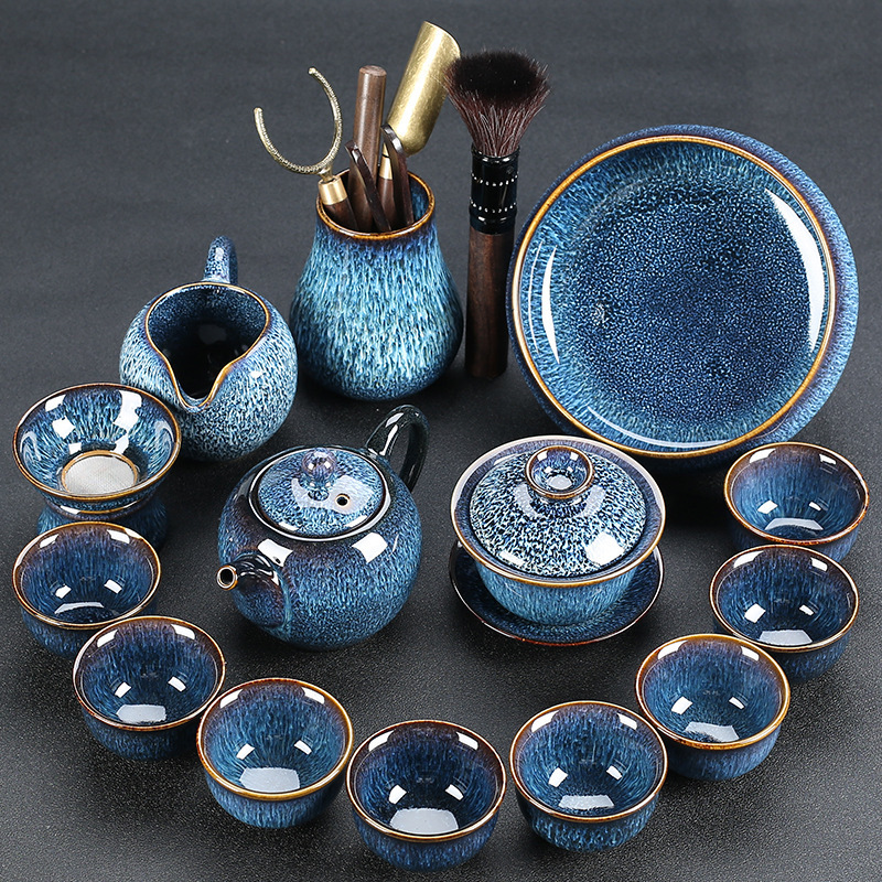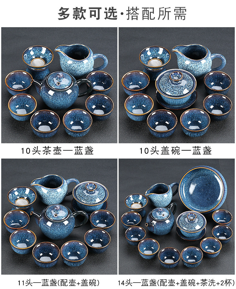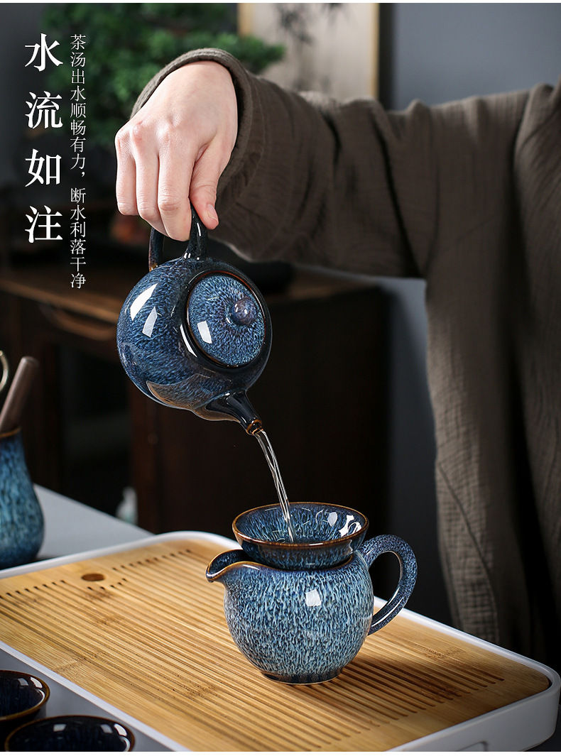 窑变建盏功夫茶具套装陶瓷泡茶盏茶碗家用办公室茶壶茶杯高档轻奢