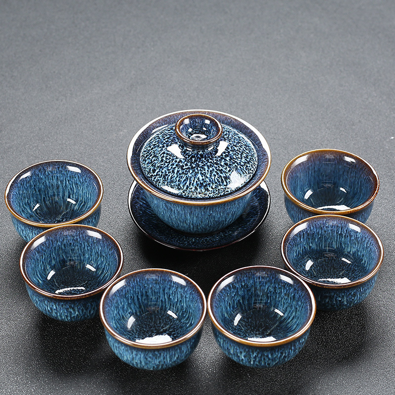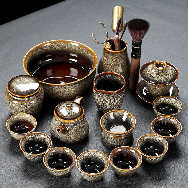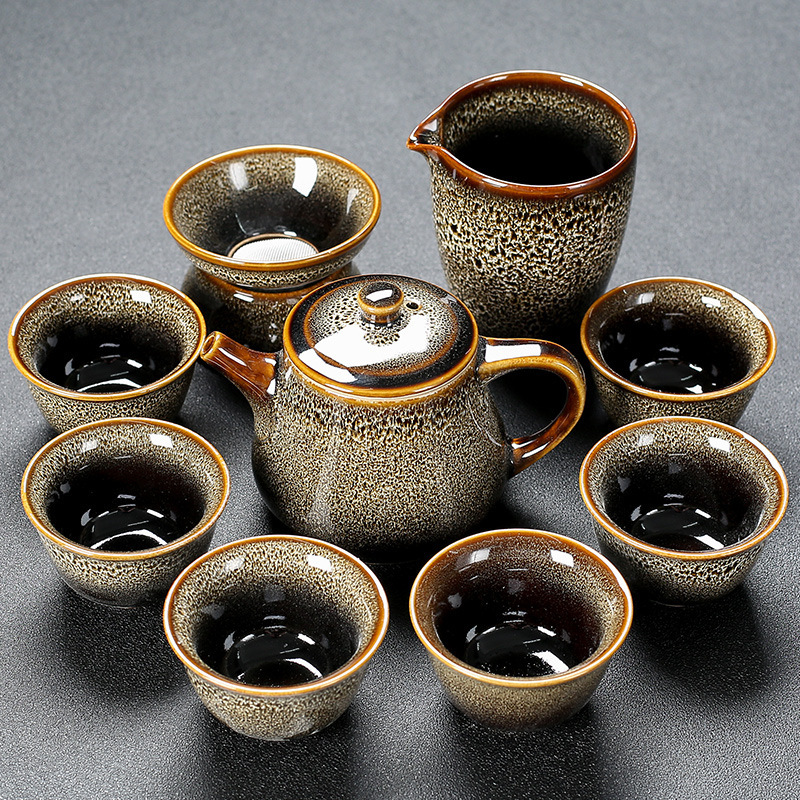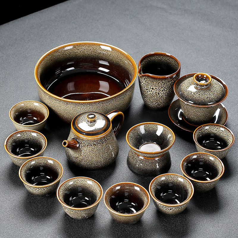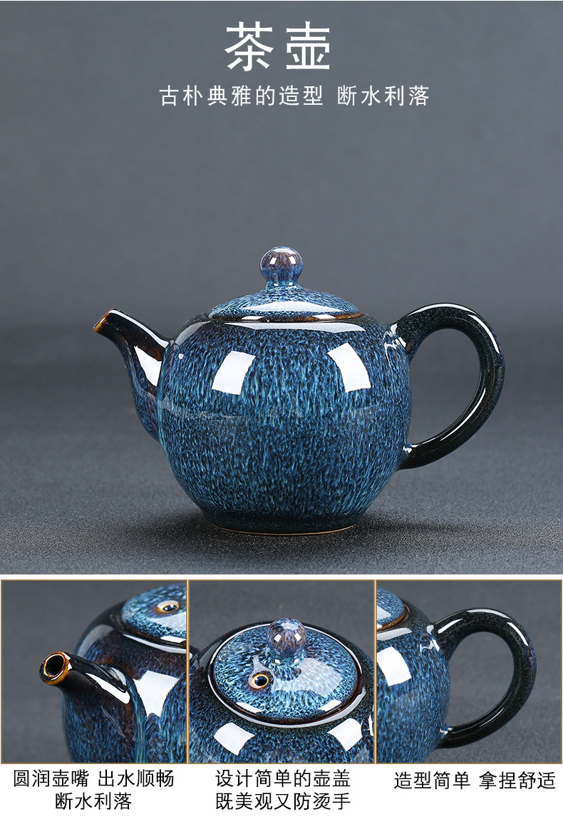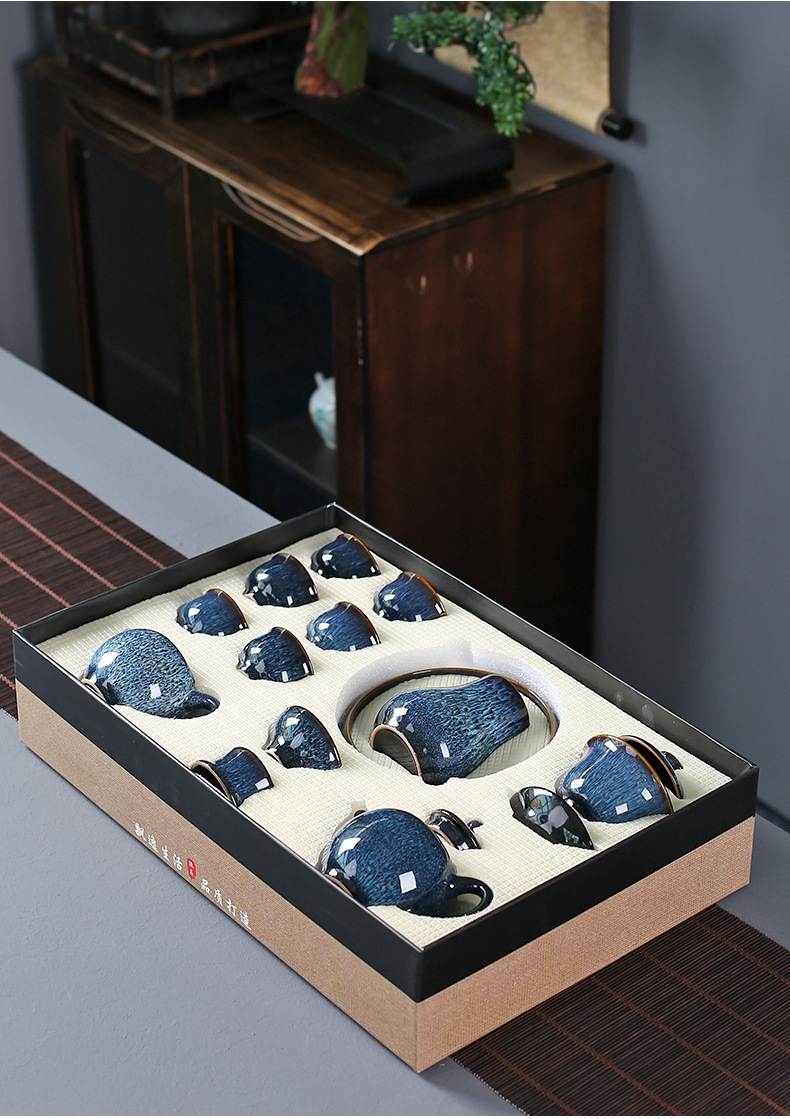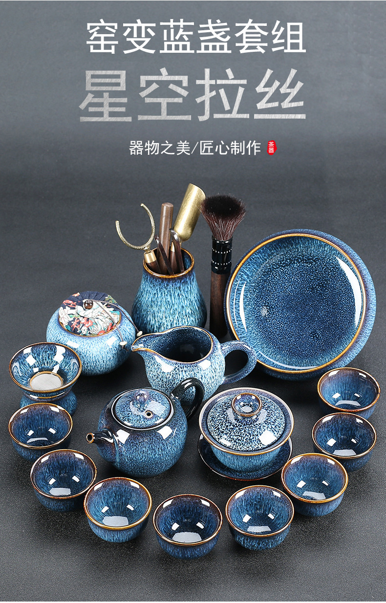 窑变建盏功夫茶具套装陶瓷泡茶盏茶碗家用办公室茶壶茶杯高档轻奢