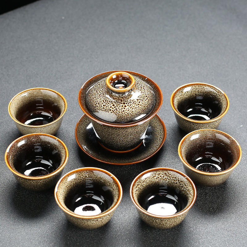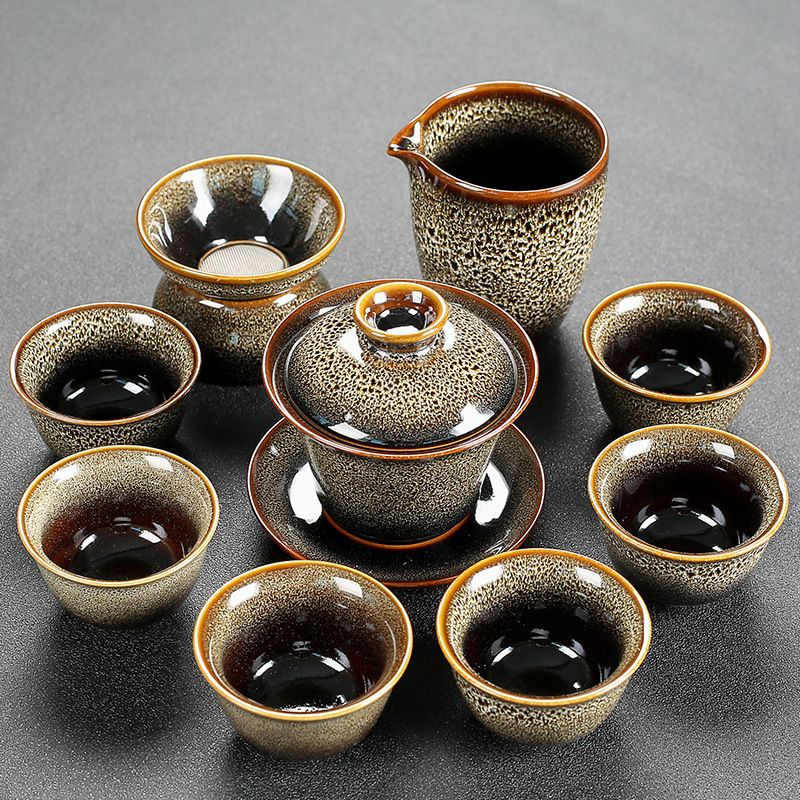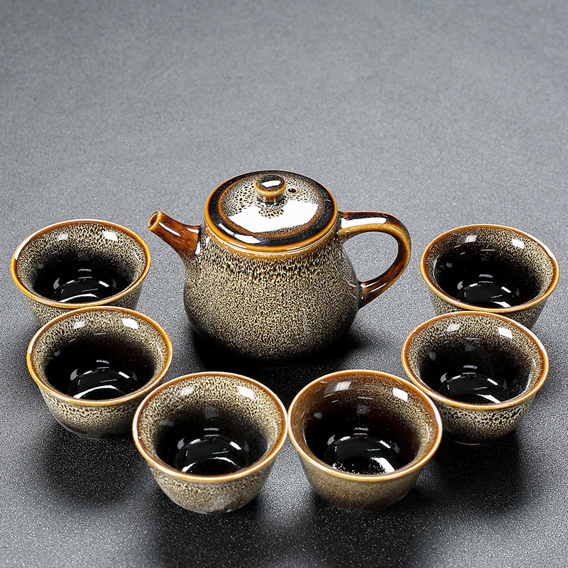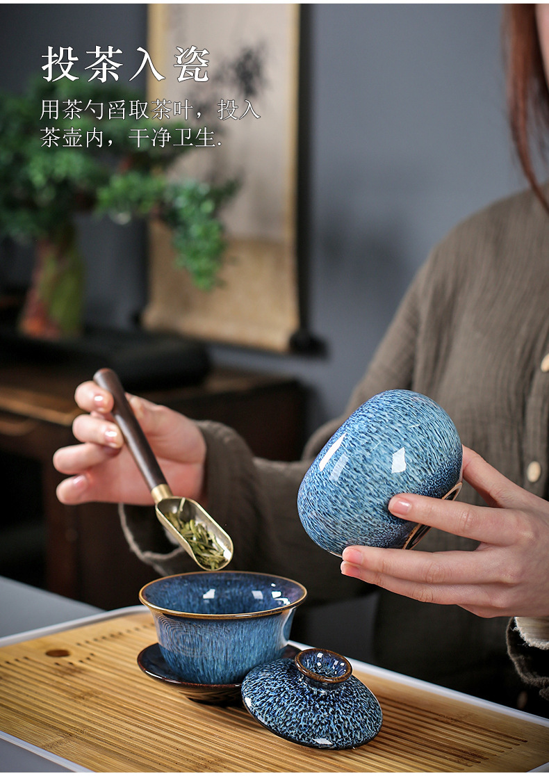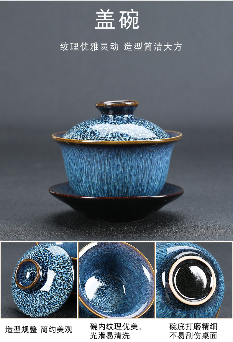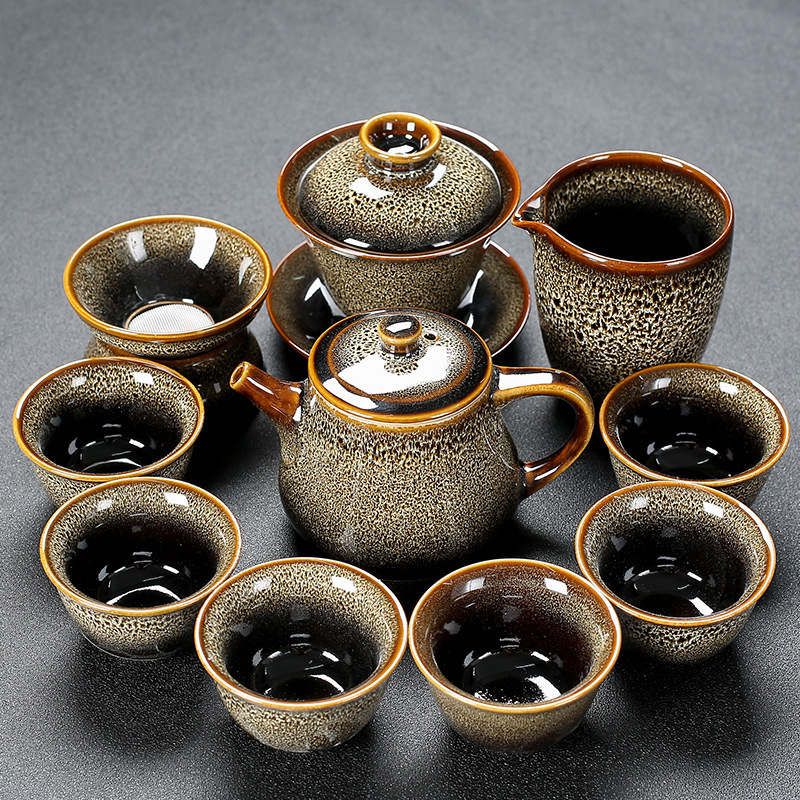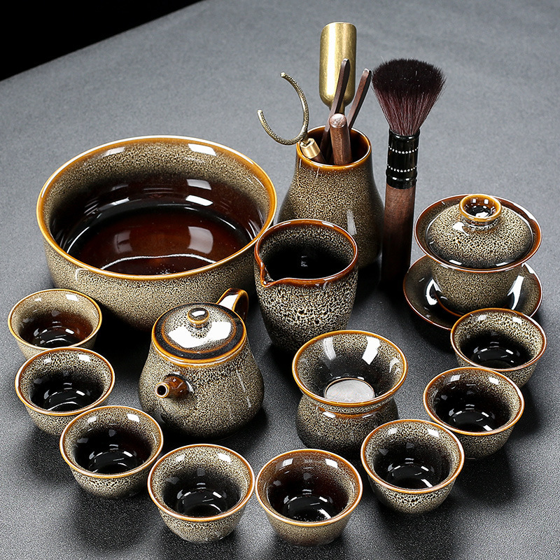 窑变建盏功夫茶具套装陶瓷泡茶盏茶碗家用办公室茶壶茶杯高档轻奢