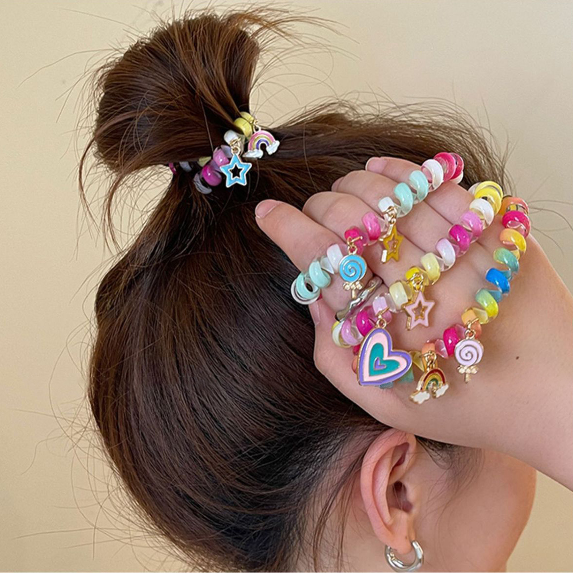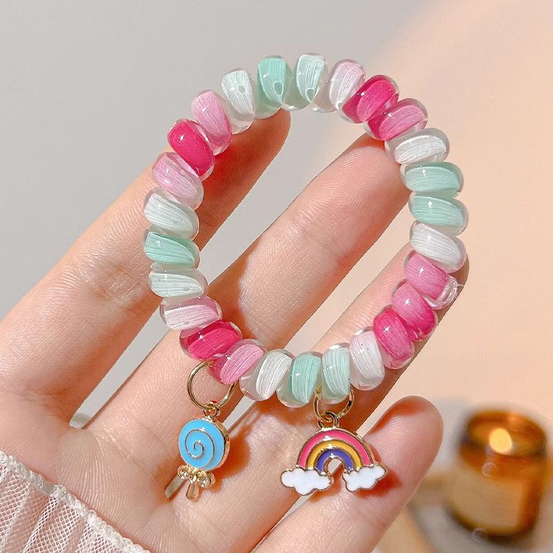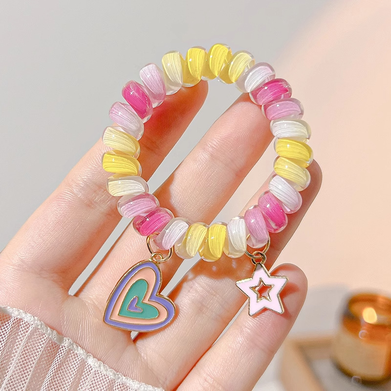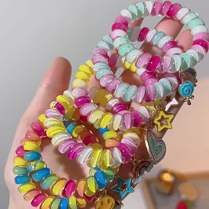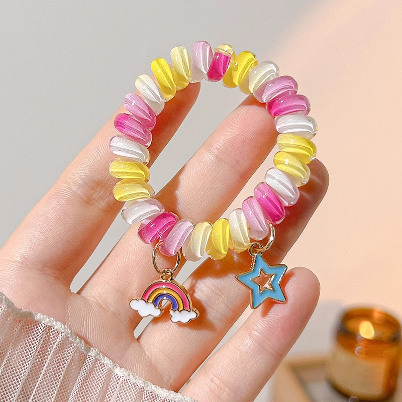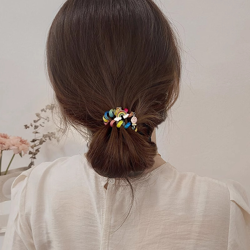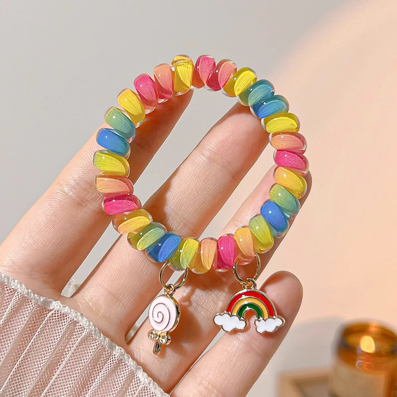 彩虹电话绳发圈女超可爱基础款无痕不伤发头绳简约皮筋女扎头发饰
