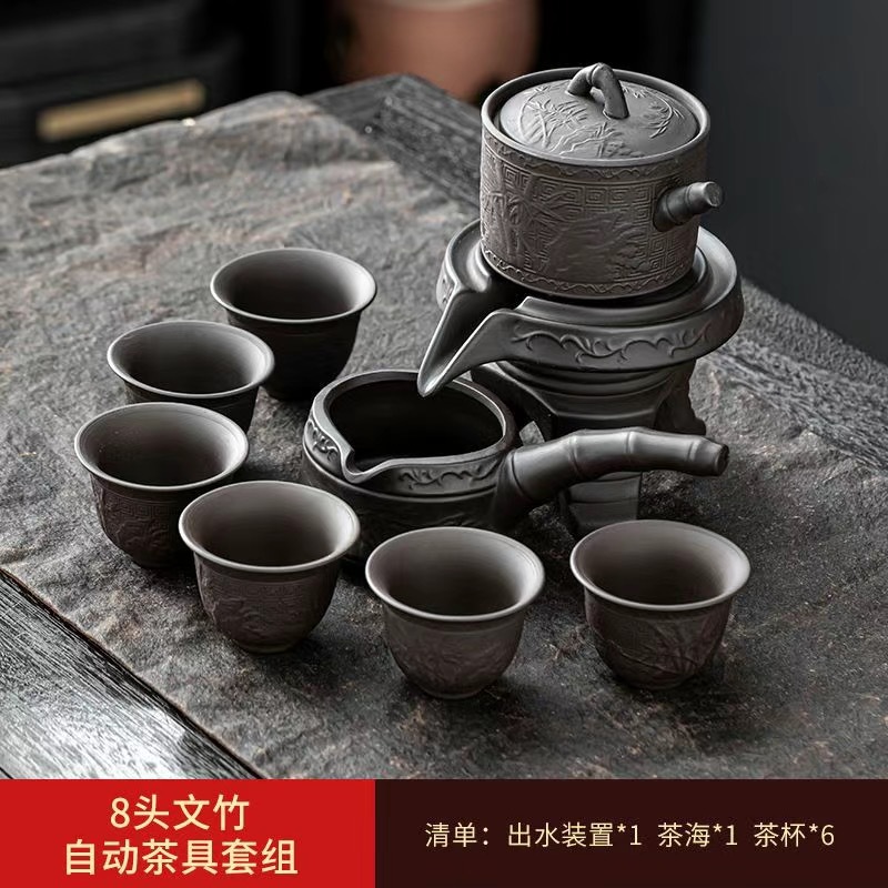 功夫茶具自动茶具懒人石磨套装家用陶瓷茶壶泡茶日式办公室喝茶杯