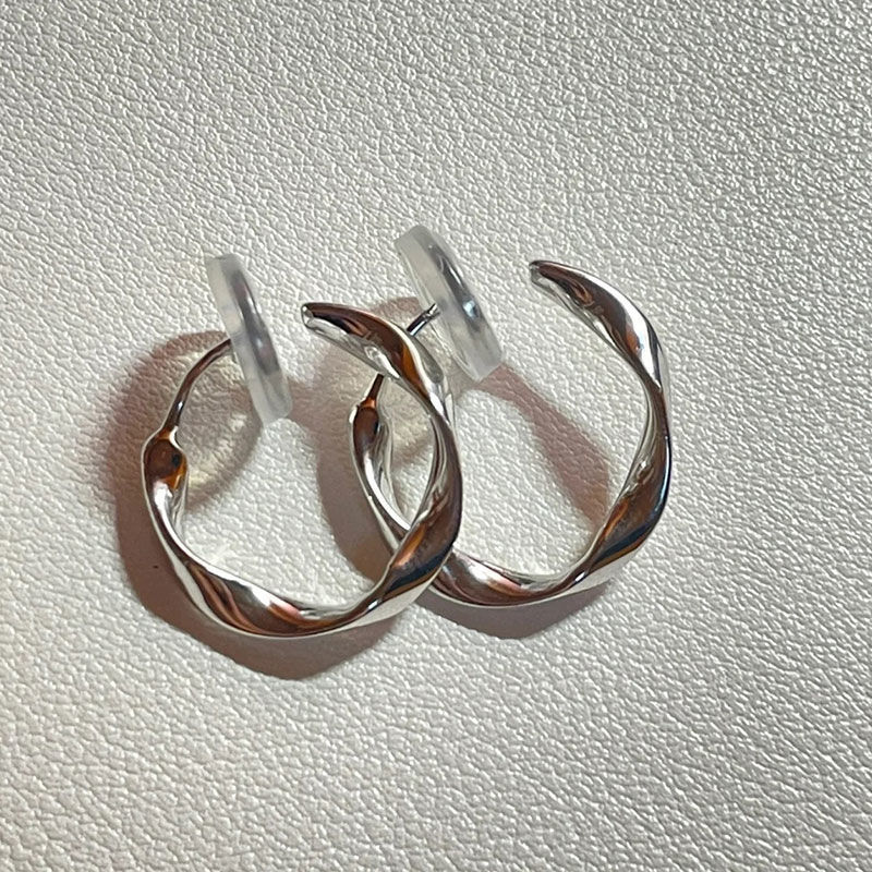 复古港风银色不规则扭曲耳夹无耳洞耳环女秋冬新款蚊香盘圆形耳饰