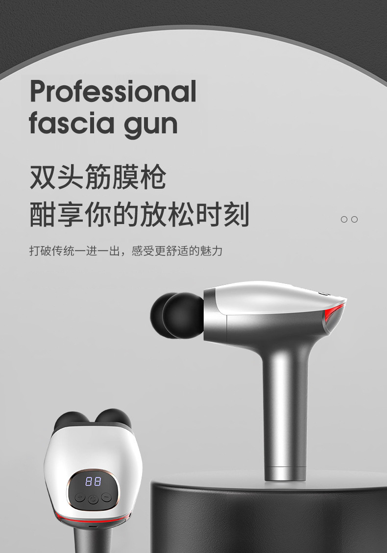 跨境数显双头按摩枪健身便捷肌肉放松震动按摩棒专业级电动筋膜枪