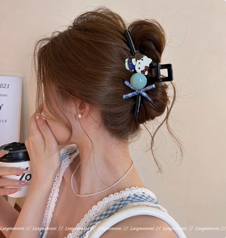 超萌猫咪蝴蝶结鲨鱼夹大号发夹抓夹女2025新款高级感后脑勺发饰