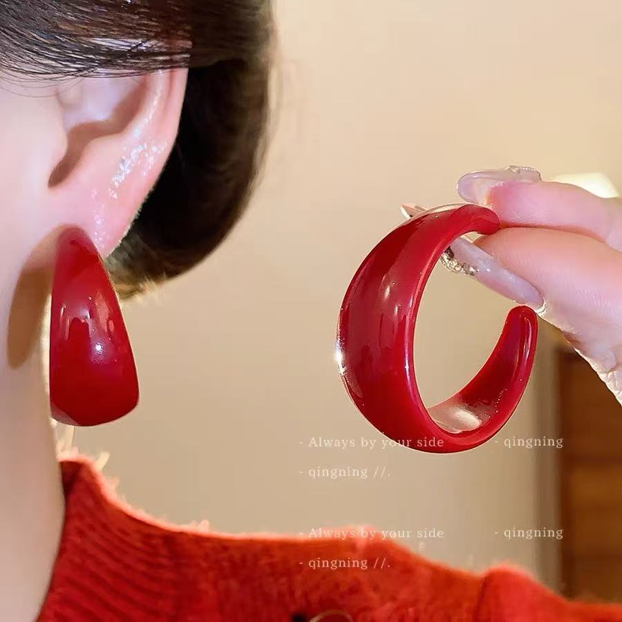 2025新款红色系列纯银针耳钉女款滴油喜庆耳环文艺复古个性耳饰