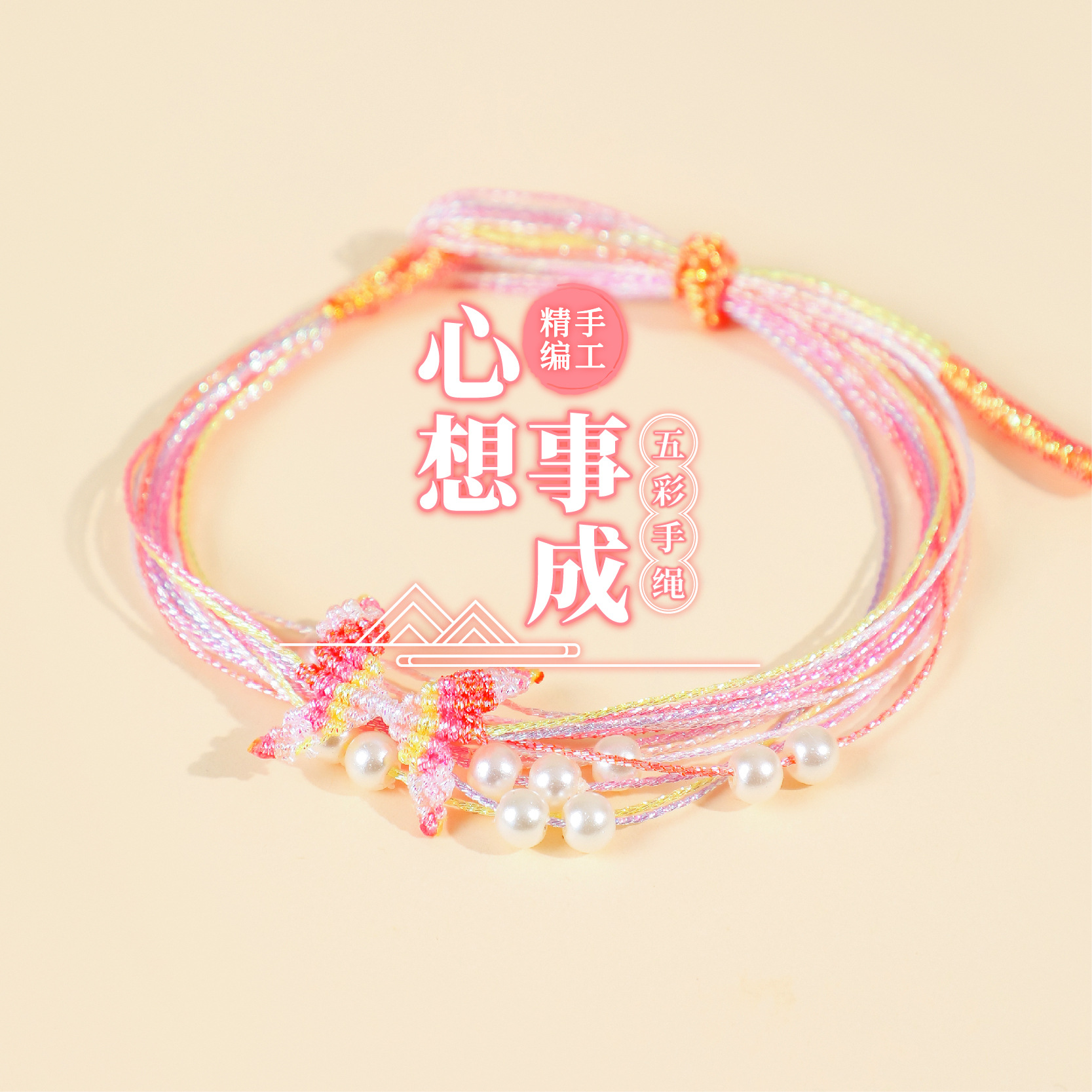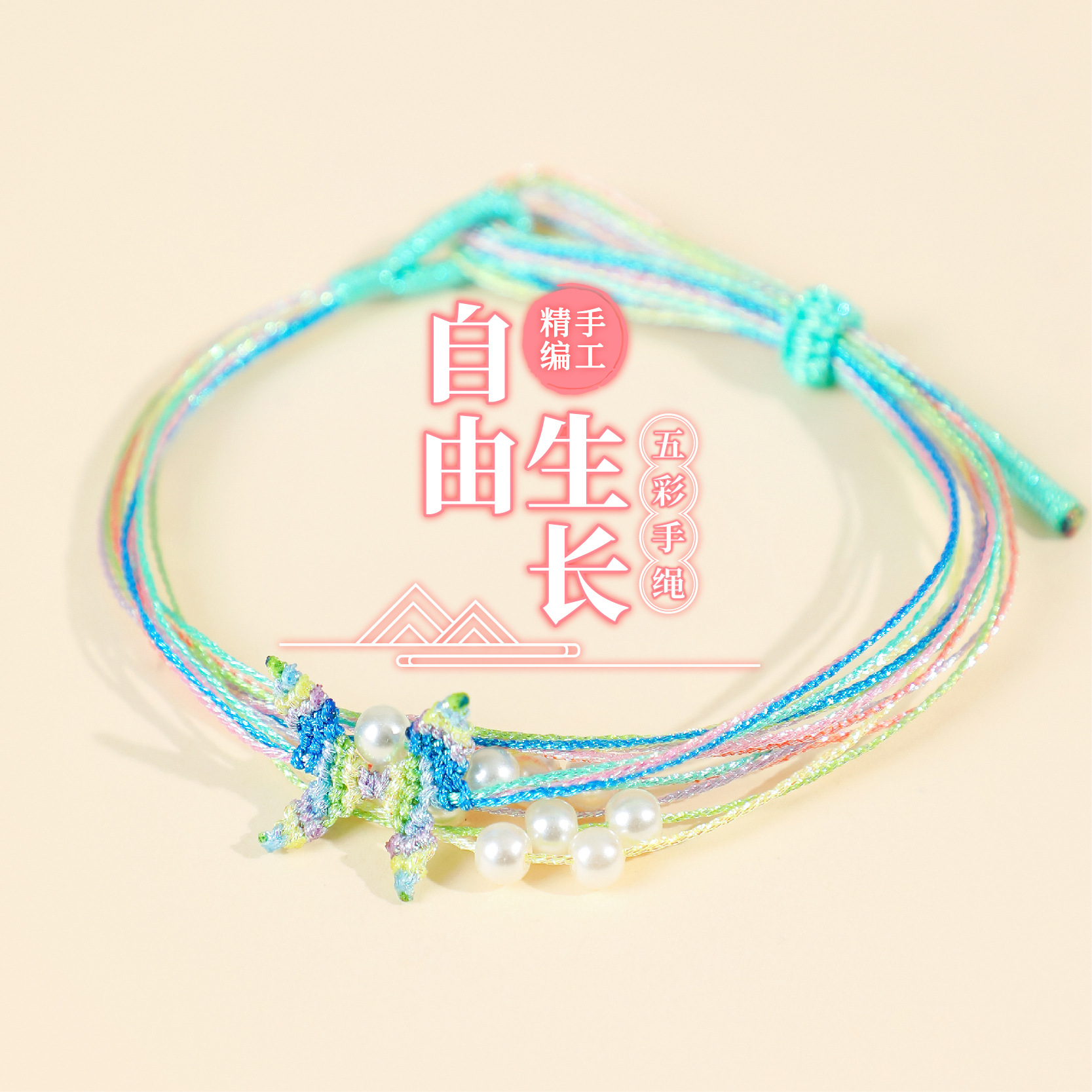 端午节手绳五彩绳手工编织小红书同款幻彩蝴蝶手绳千丝手绳仿珍珠