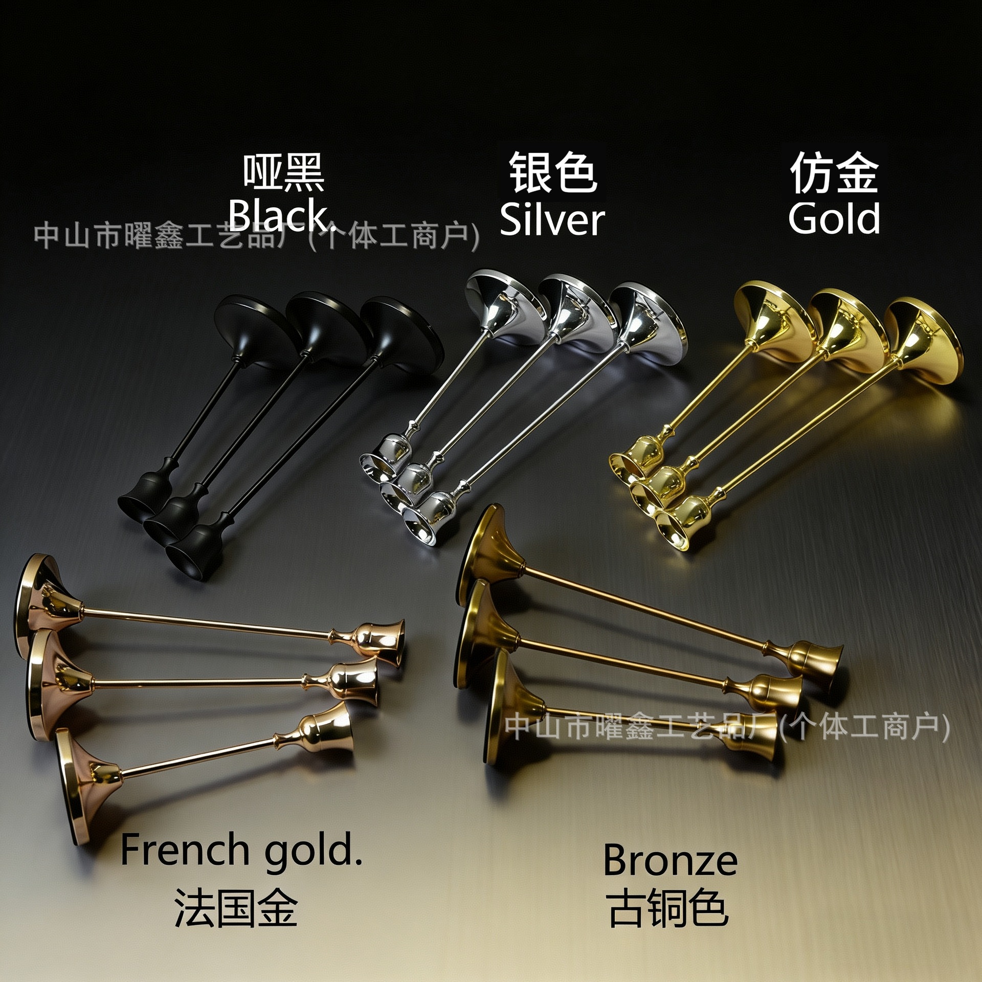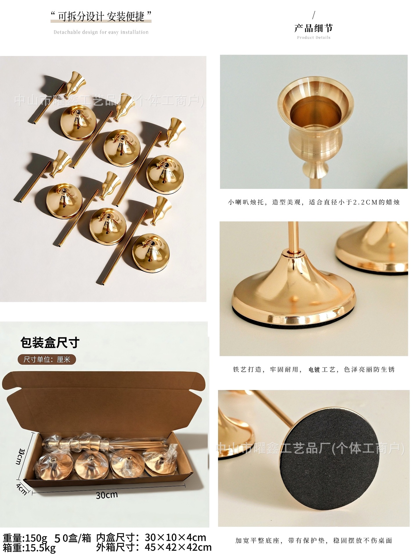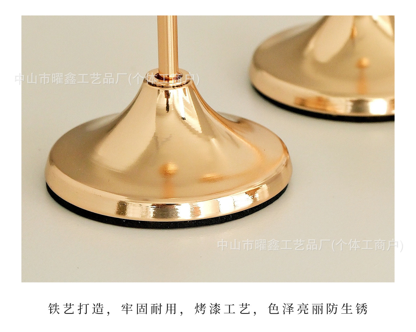 我厂专注于高端家居摆件领域,核心产品为金色铁艺烛台系列。产品设计融合北欧风烛台的简约线条与法式烛台、复古欧式的典雅韵味,涵盖高脚烛台、欧式高脚烛台等经典器型。我们采用先进的欧式电镀与复古电镀工艺,确保每一件烛台摆件都呈现出持久如新的高级感。