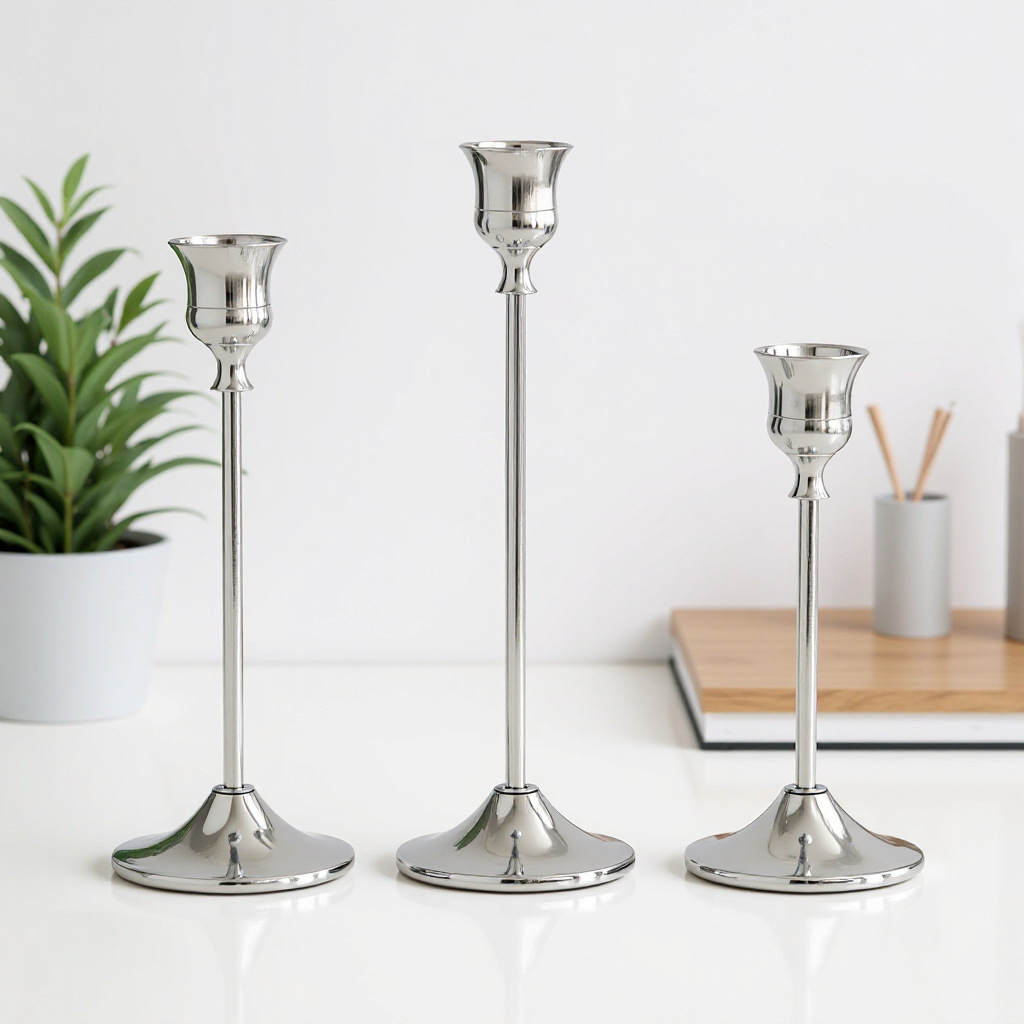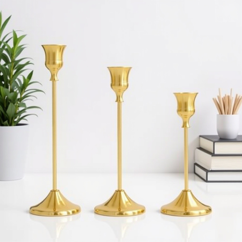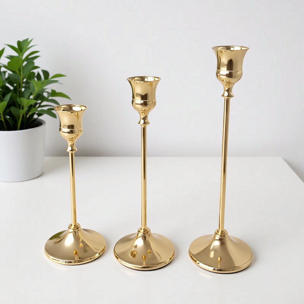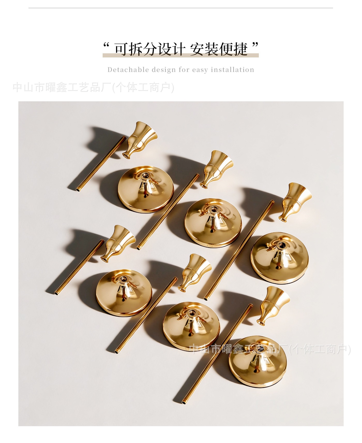 我厂专注于高端家居摆件领域,核心产品为金色铁艺烛台系列。产品设计融合北欧风烛台的简约线条与法式烛台、复古欧式的典雅韵味,涵盖高脚烛台、欧式高脚烛台等经典器型。我们采用先进的欧式电镀与复古电镀工艺,确保每一件烛台摆件都呈现出持久如新的高级感。