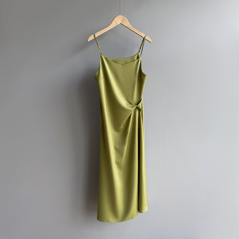 芷苁夕搭配小西装外套吊带连衣裙女收腰缎面长裙5130高腰显瘦