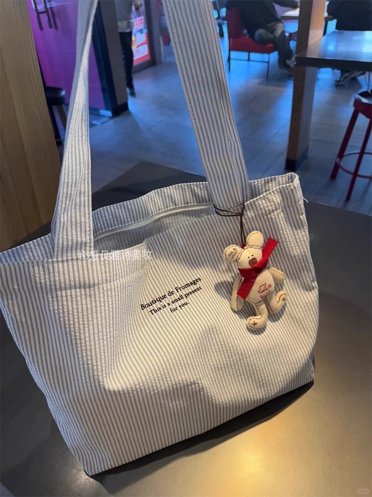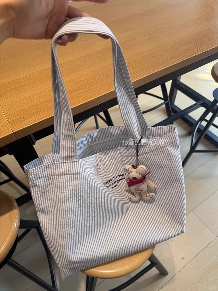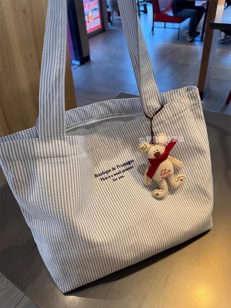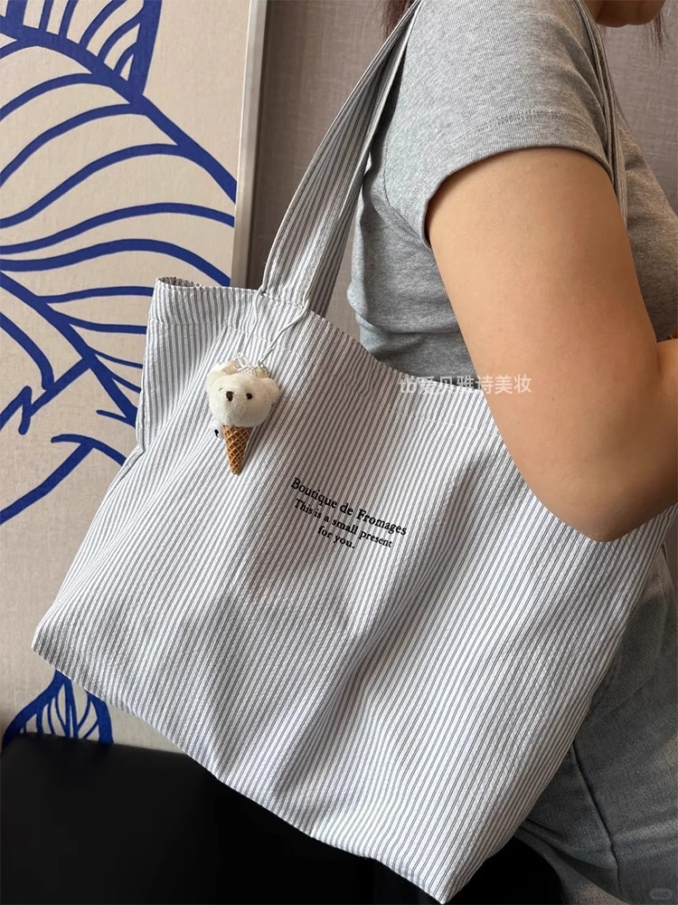 大容量帆布包新款休闲条纹慵懒简约2025通勤手提包百搭单肩托特