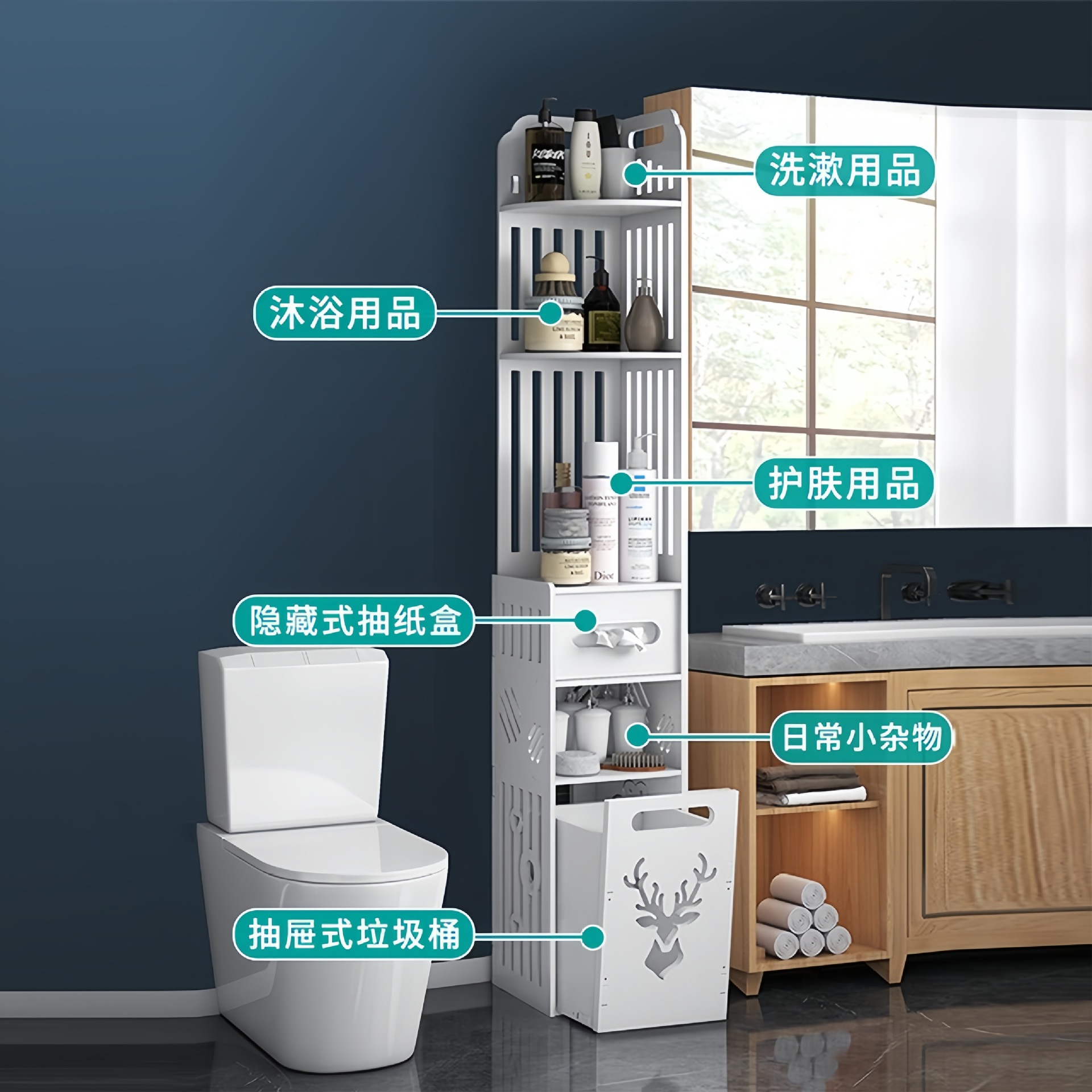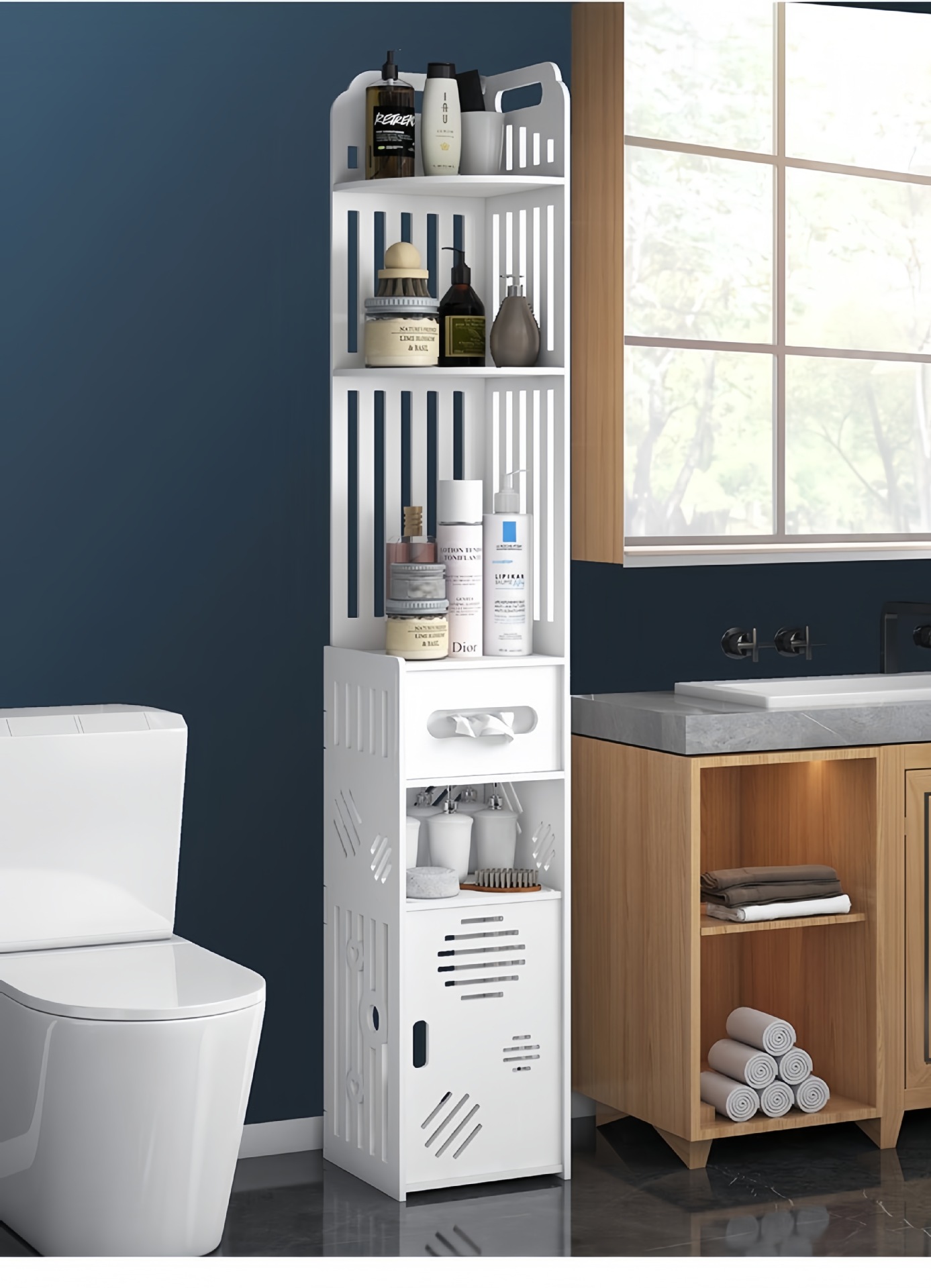 浴室置物架厕所落地边柜转角夹缝收纳柜卫生间的架子多层收纳窄柜