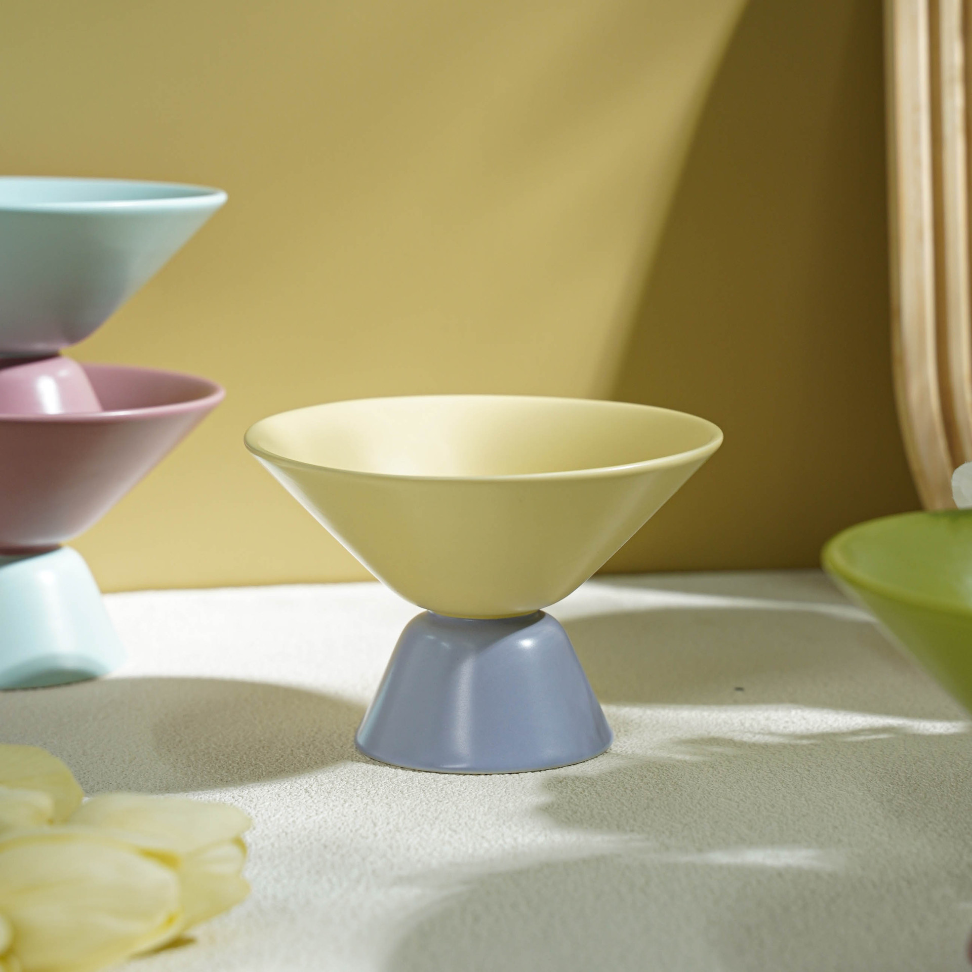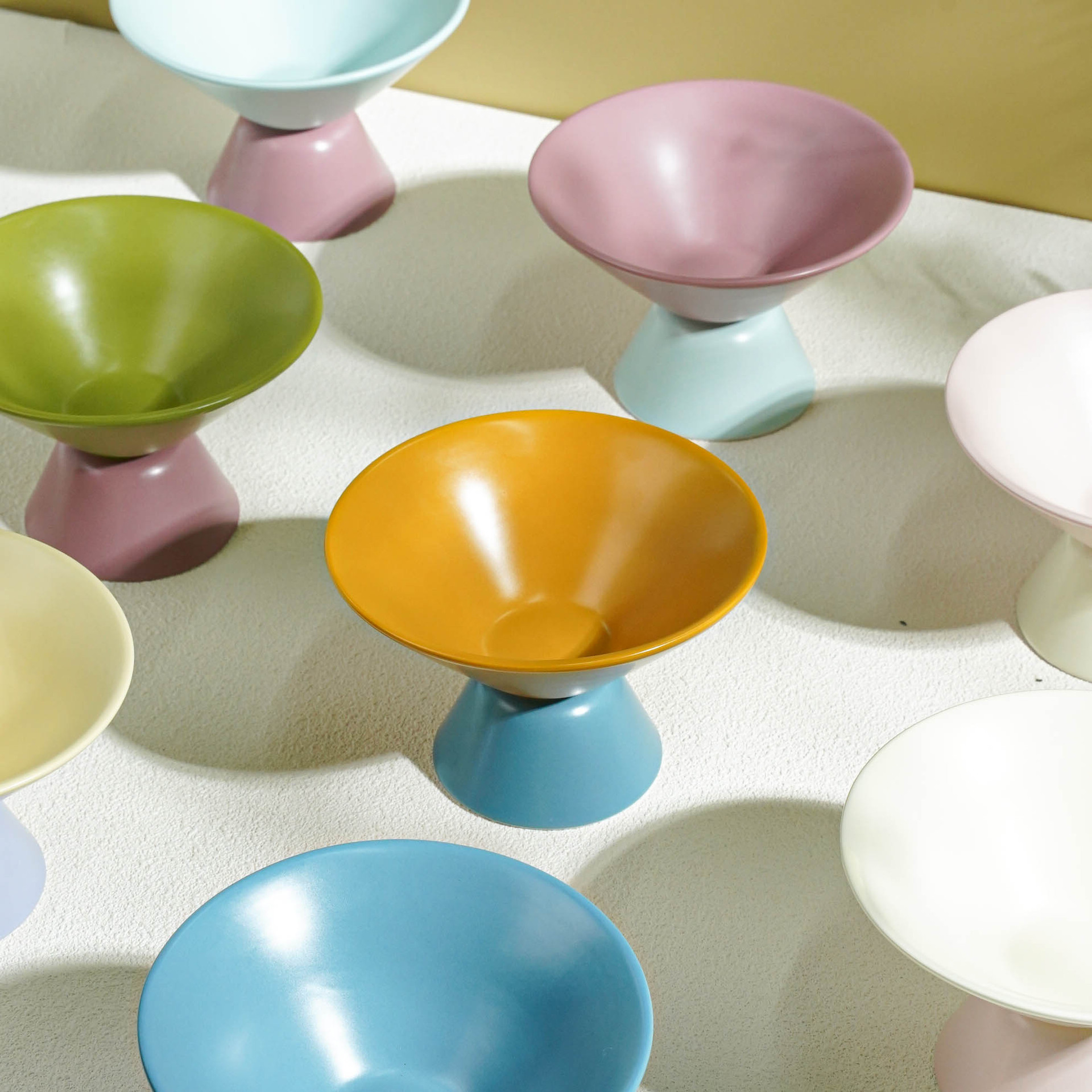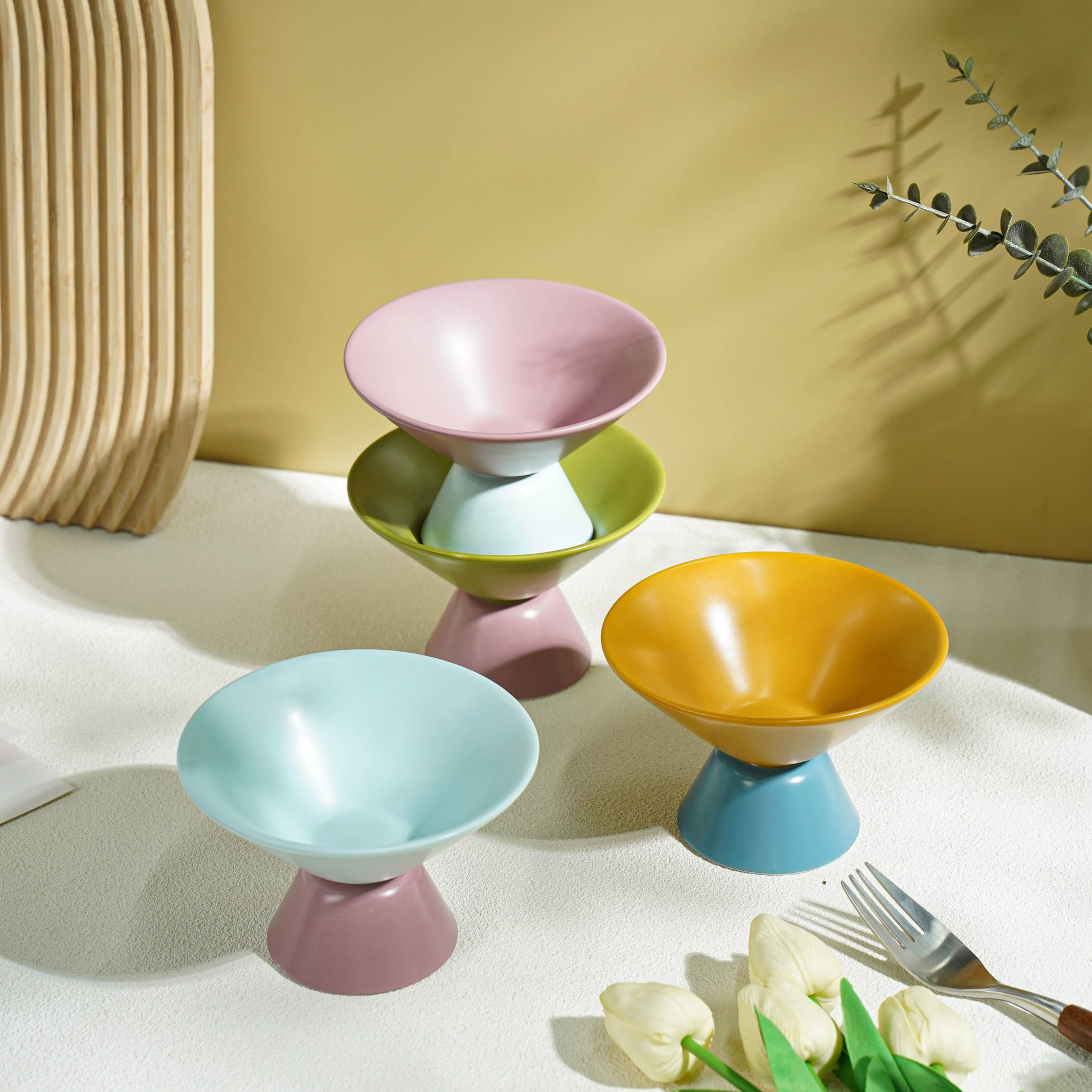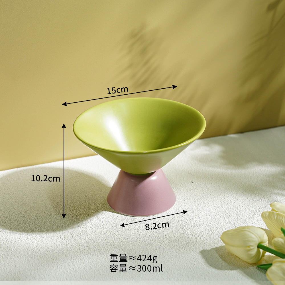 小食高脚碗陶瓷高颜值ins马卡龙色系果盘撞色简约轻奢客厅零食盘