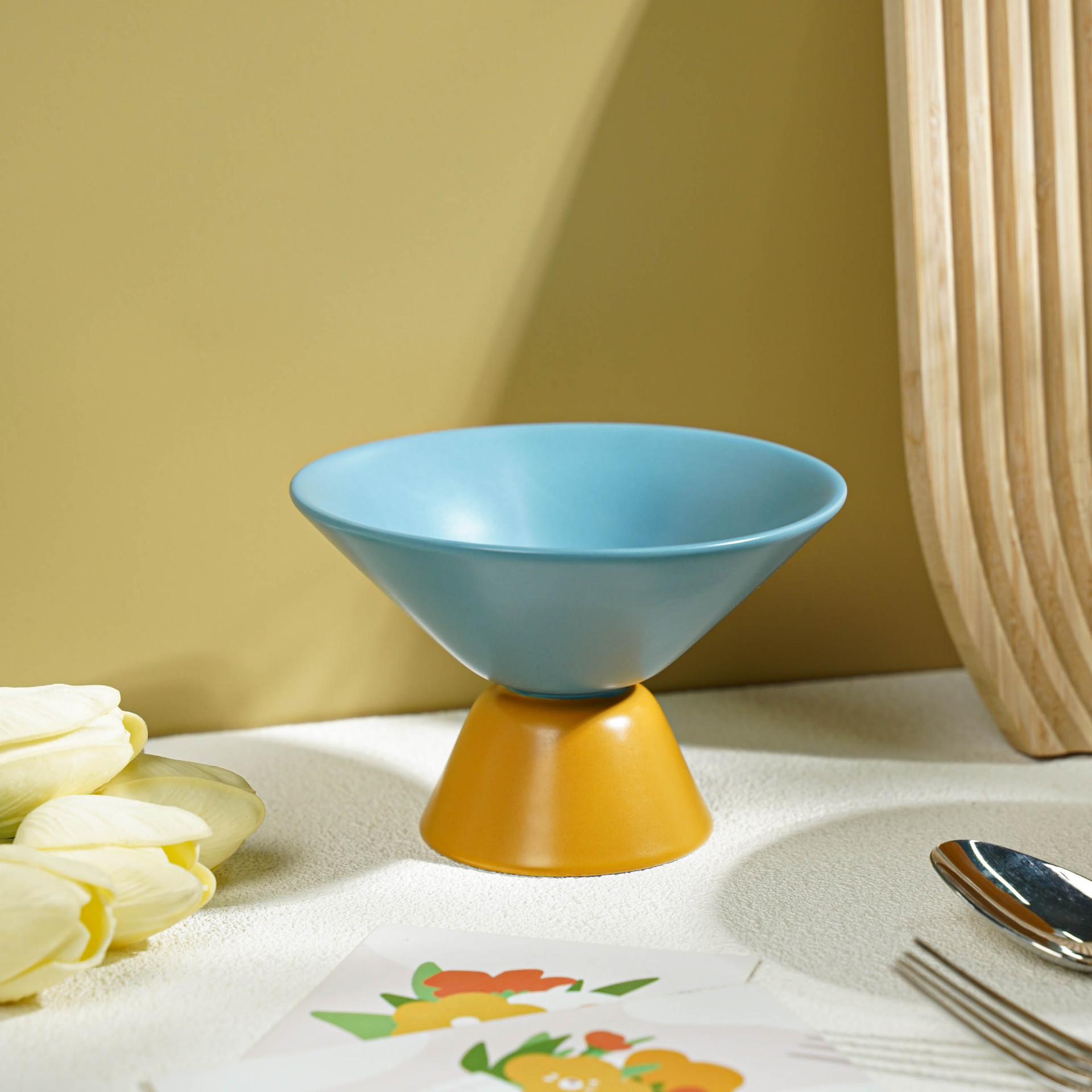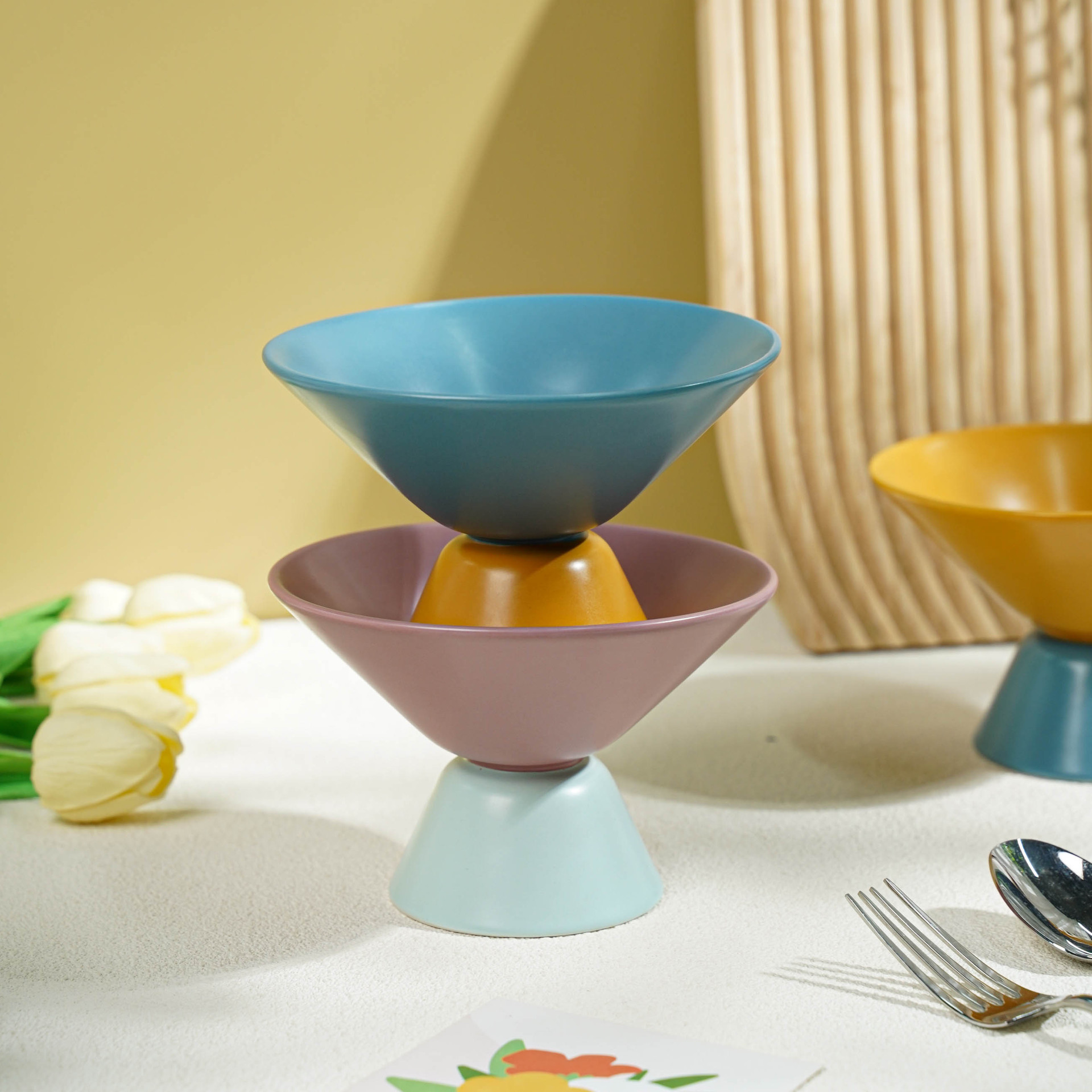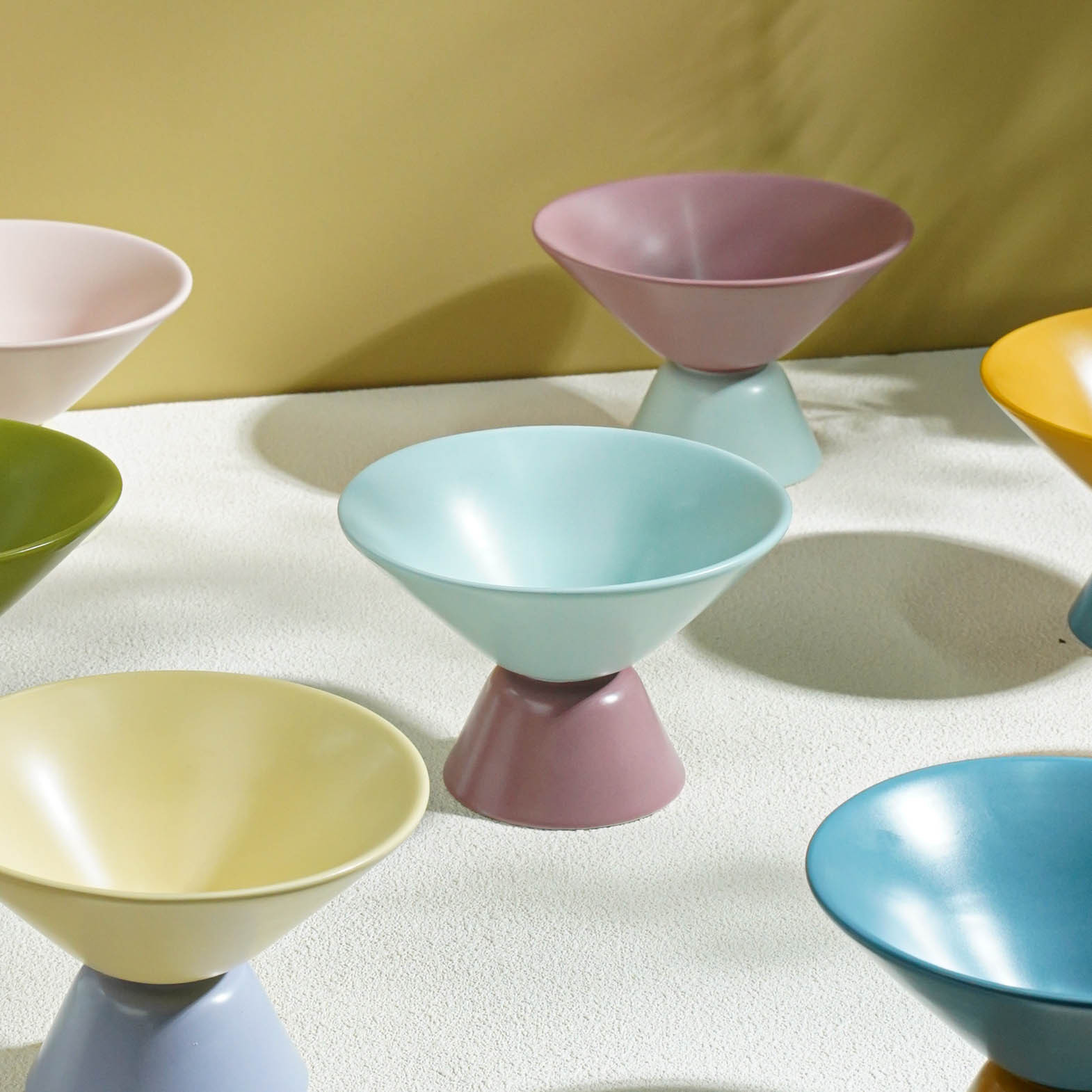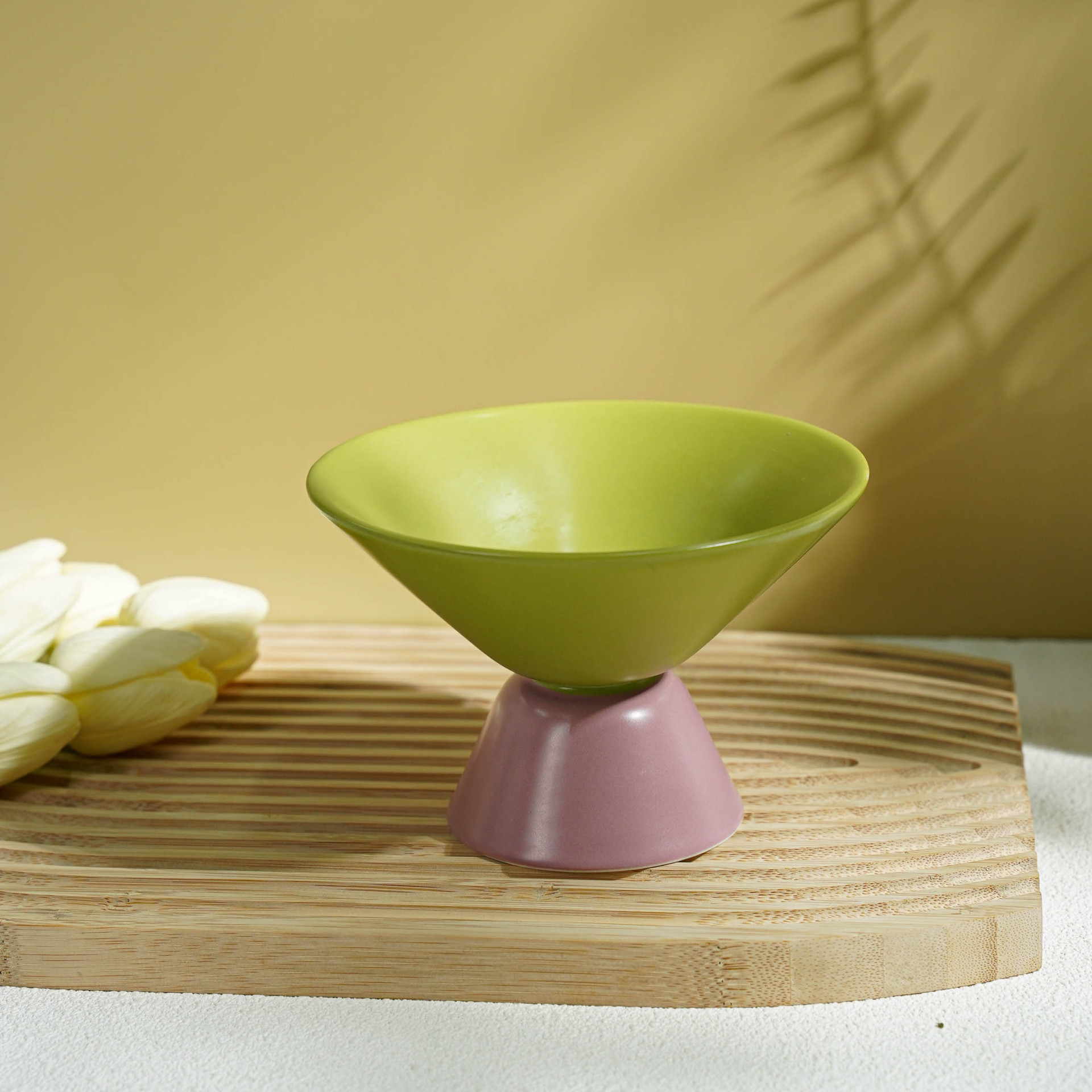 小食高脚碗陶瓷高颜值ins马卡龙色系果盘撞色简约轻奢客厅零食盘