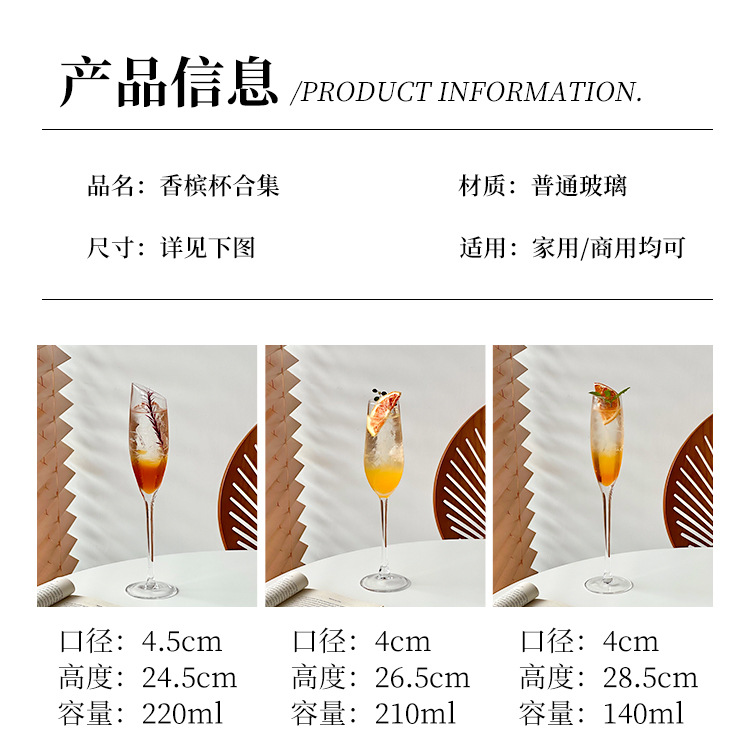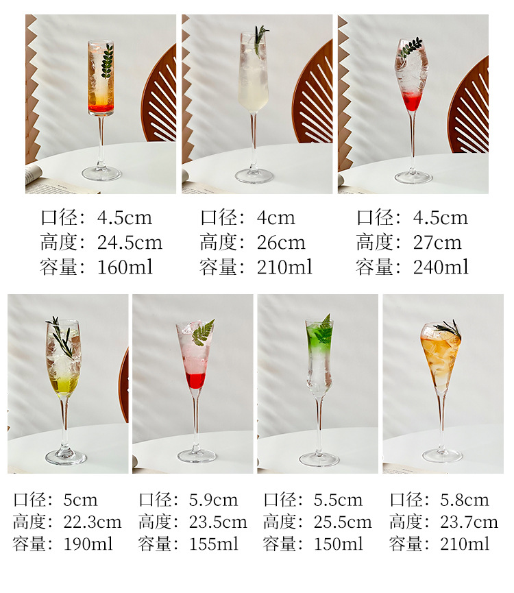 高颜值ins风起泡香槟杯高脚杯葡萄酒杯特调鸡尾酒杯套装玻璃杯子
