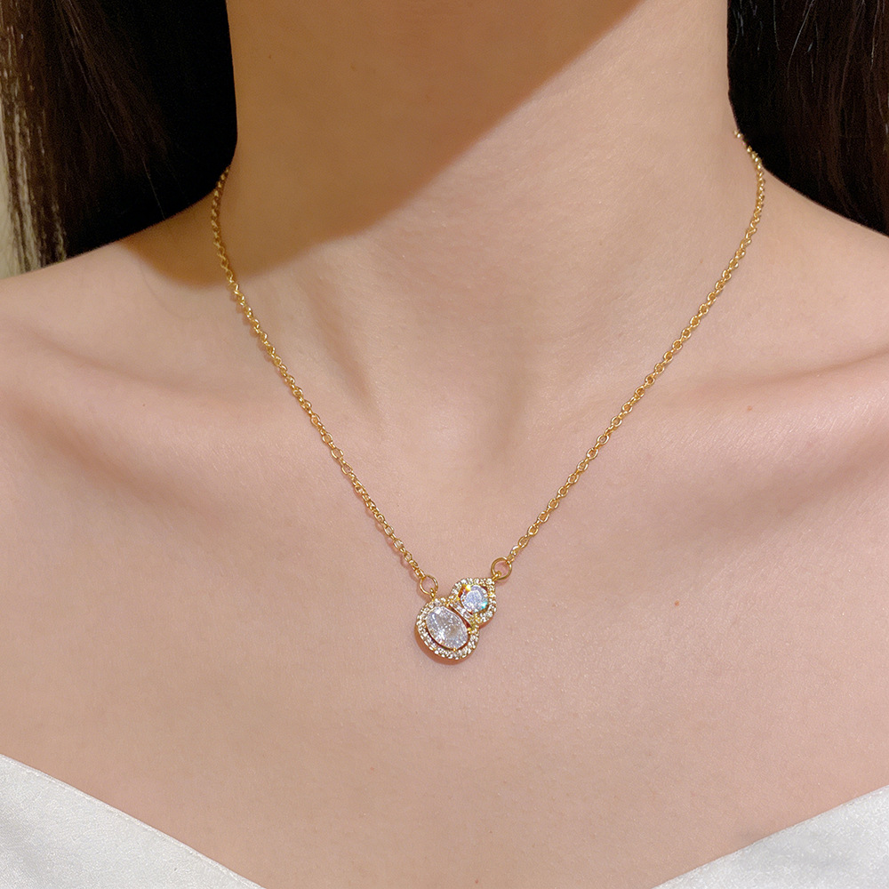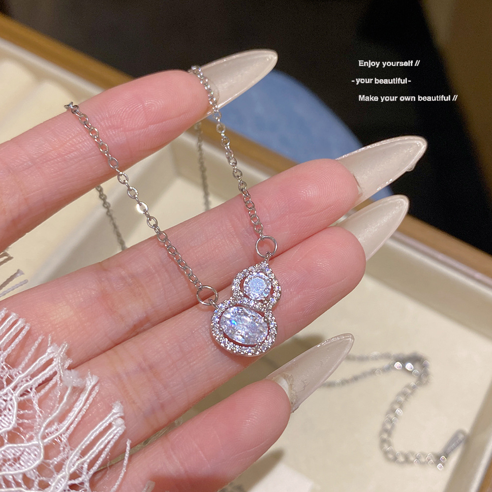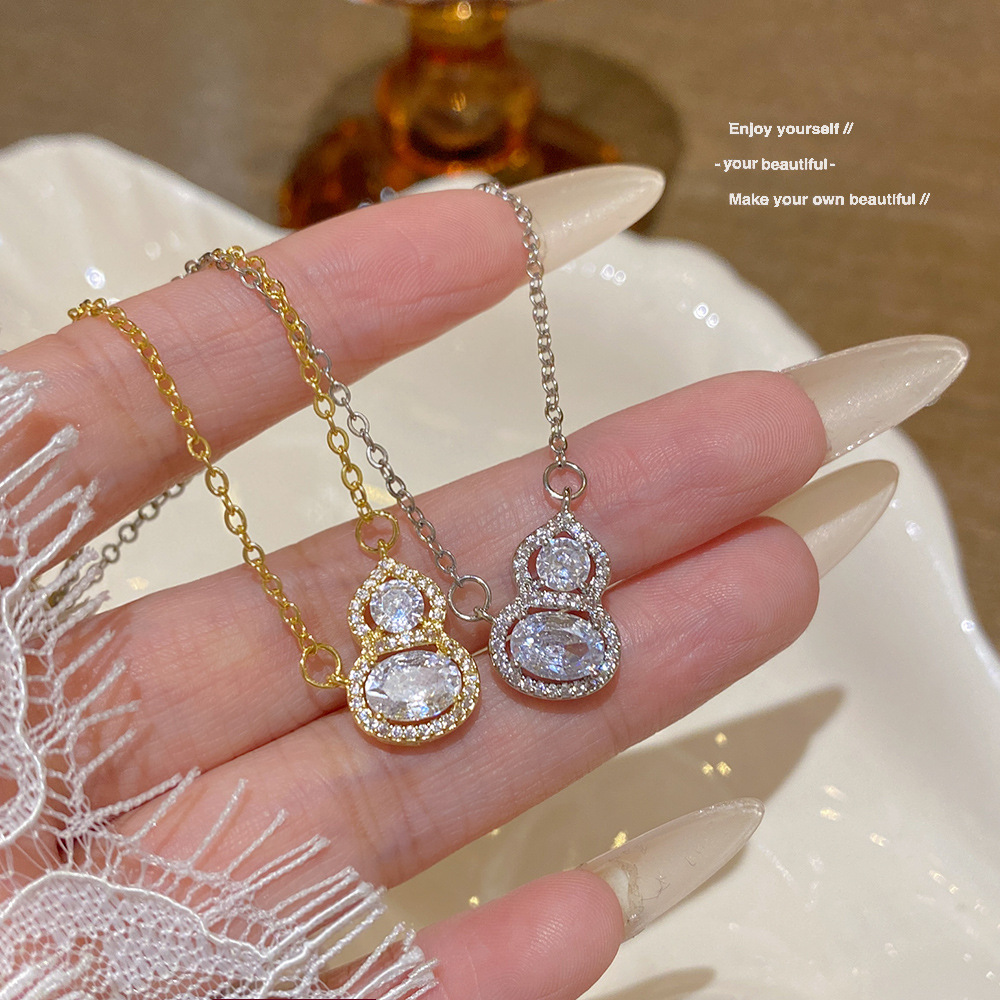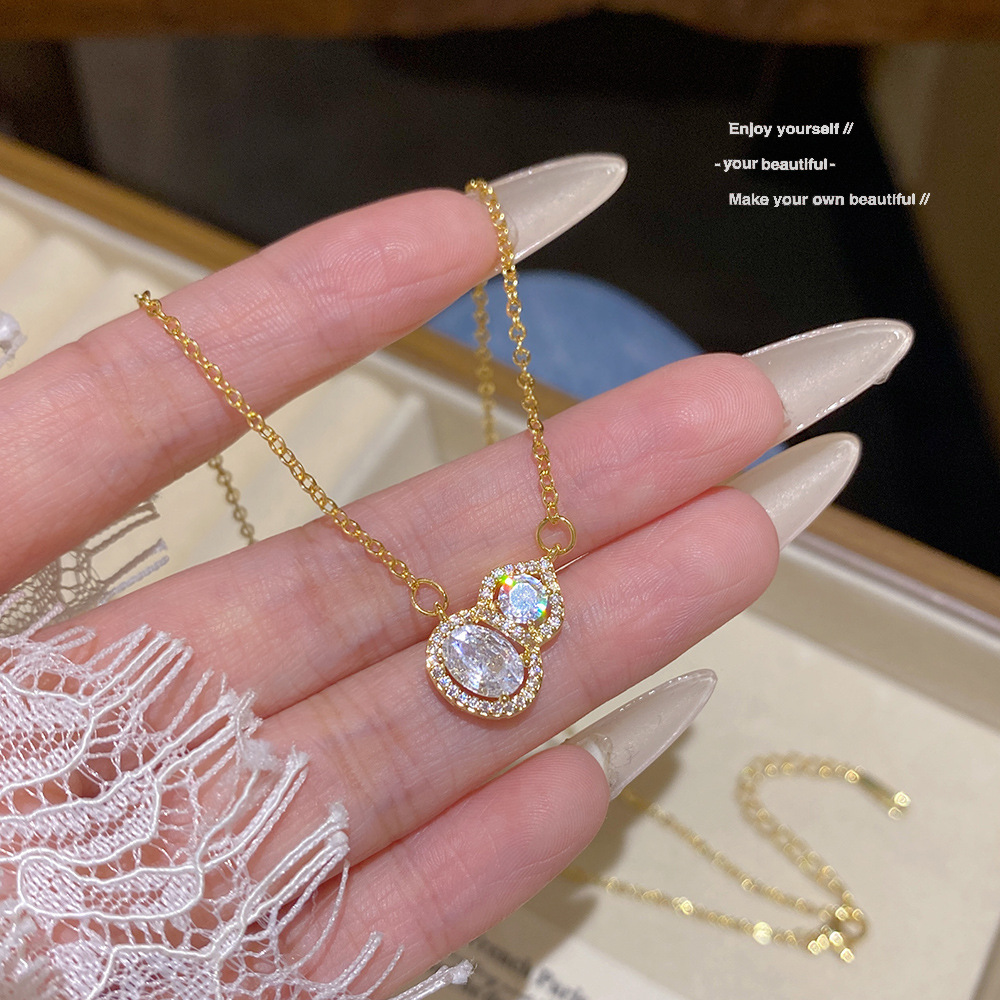 新中式精致超闪葫芦吊坠项链轻奢小众设计感新款清冷感百搭锁骨链