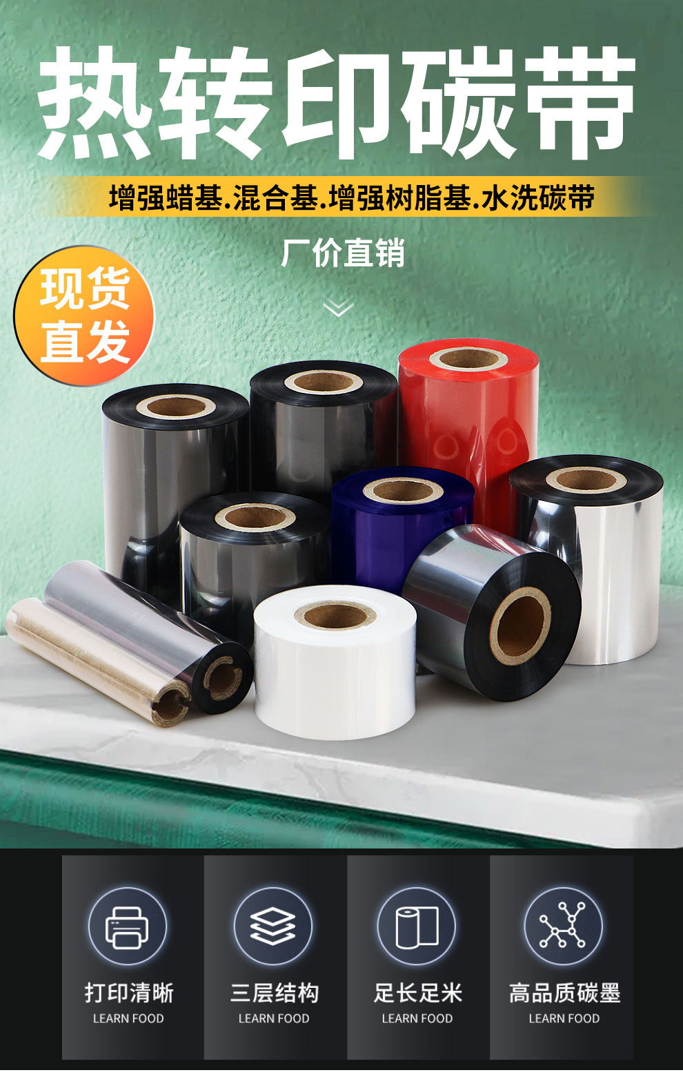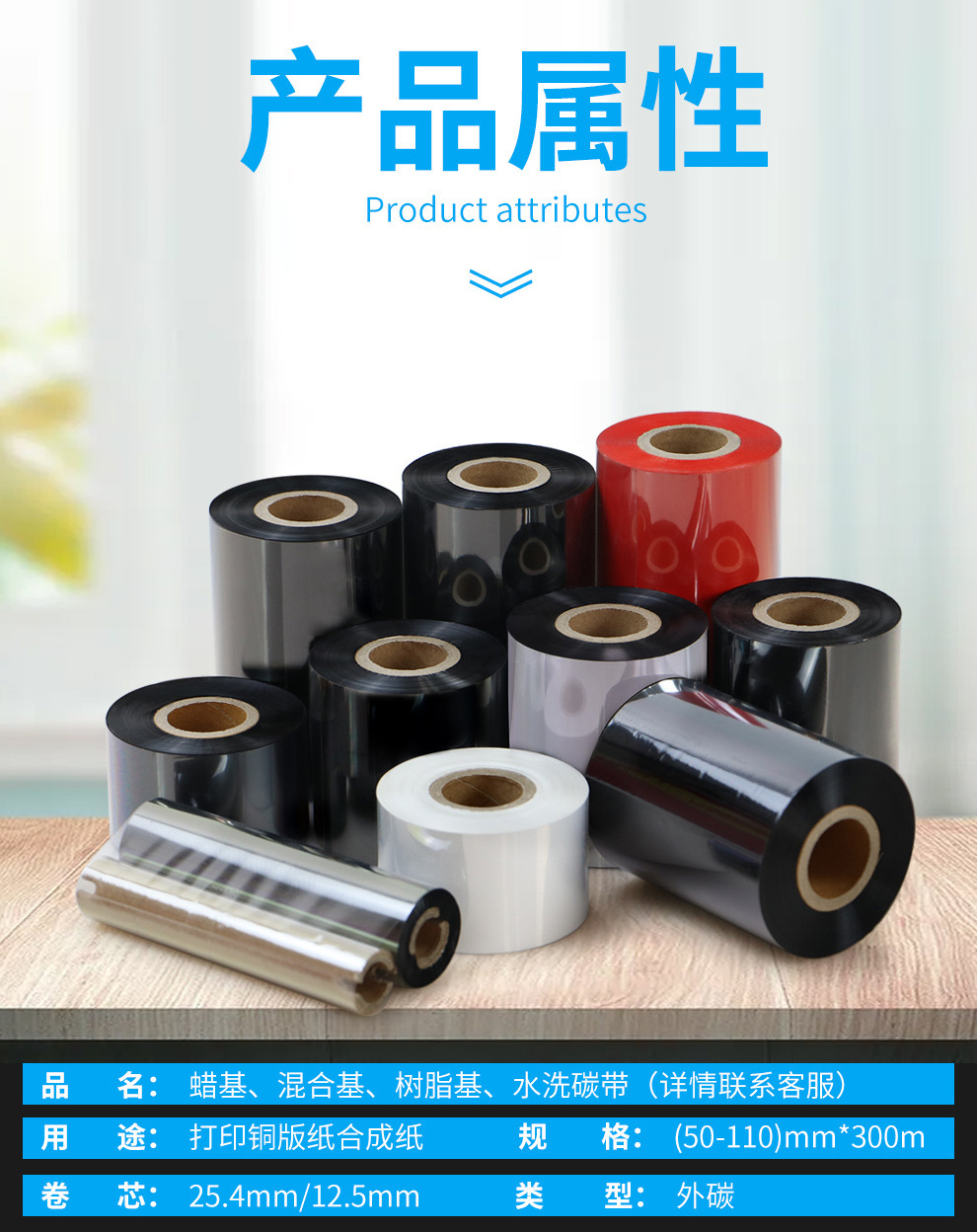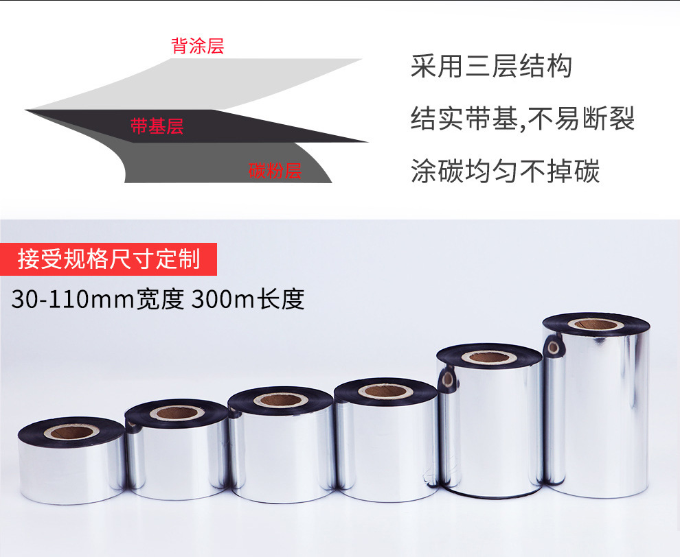 碳带增强蜡基混合多全树脂铜版不干胶合成亚银亮白标签热转印色带