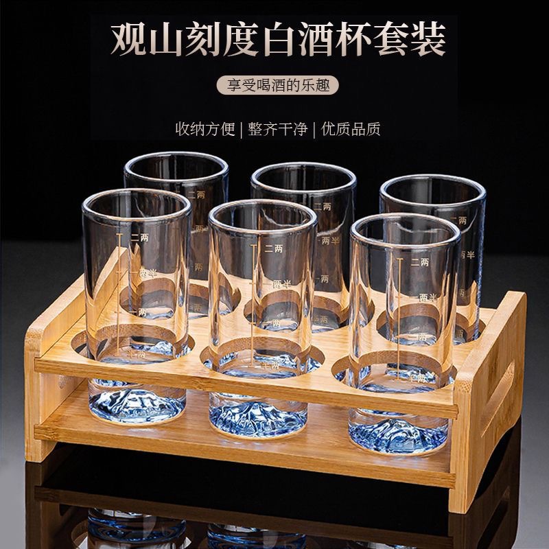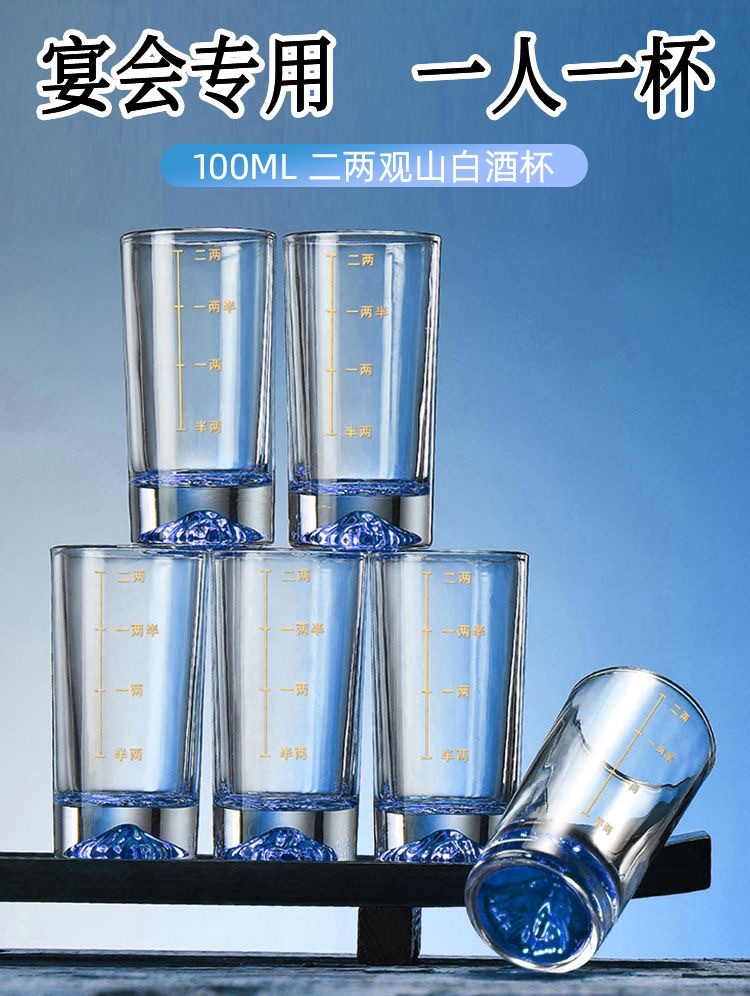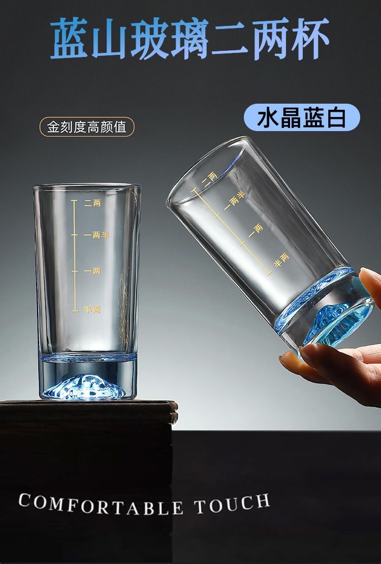 蓝山白酒杯2二两家用套装轻奢高档分酒器刻度水晶玻璃酒具盅酒具