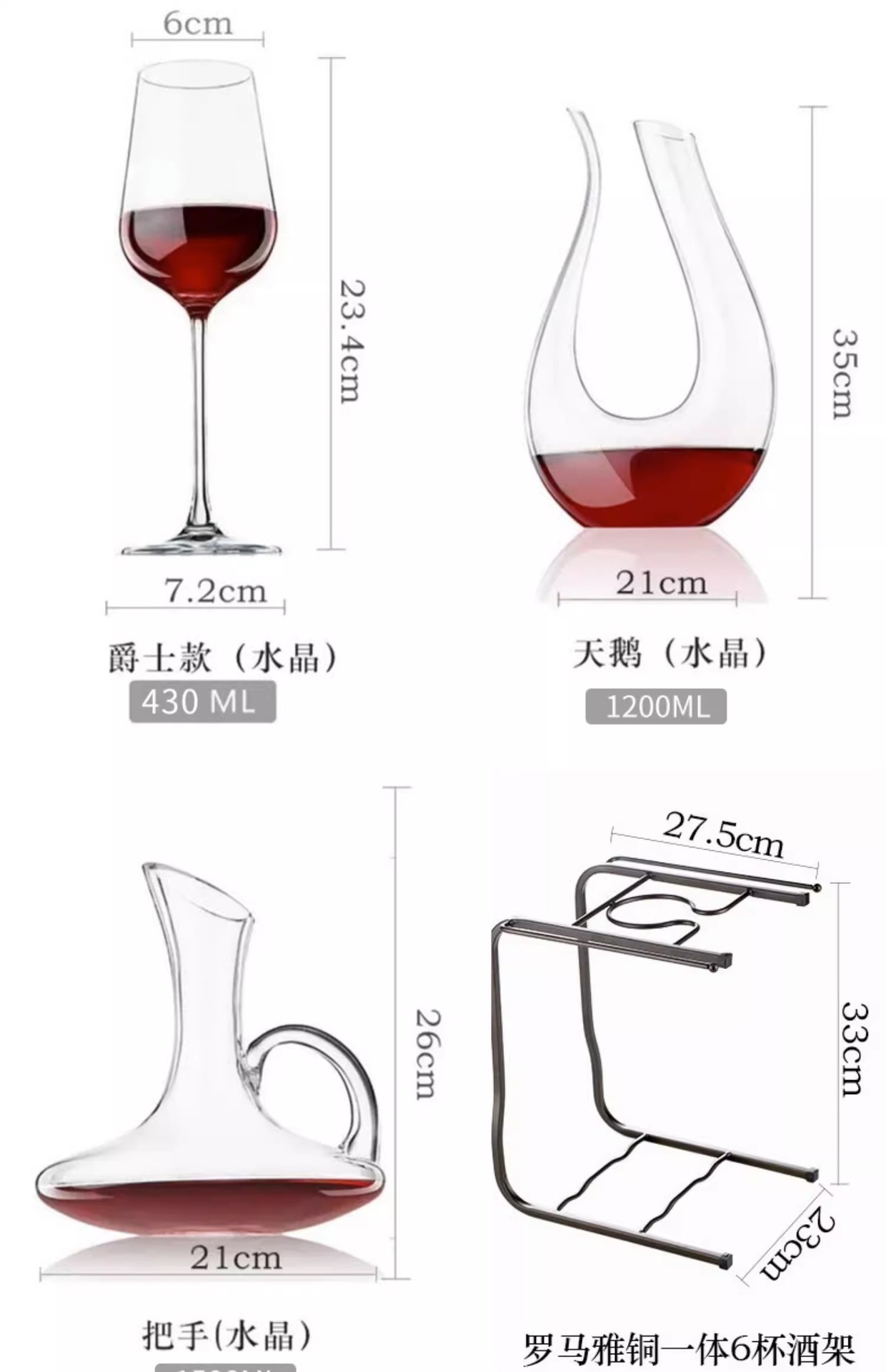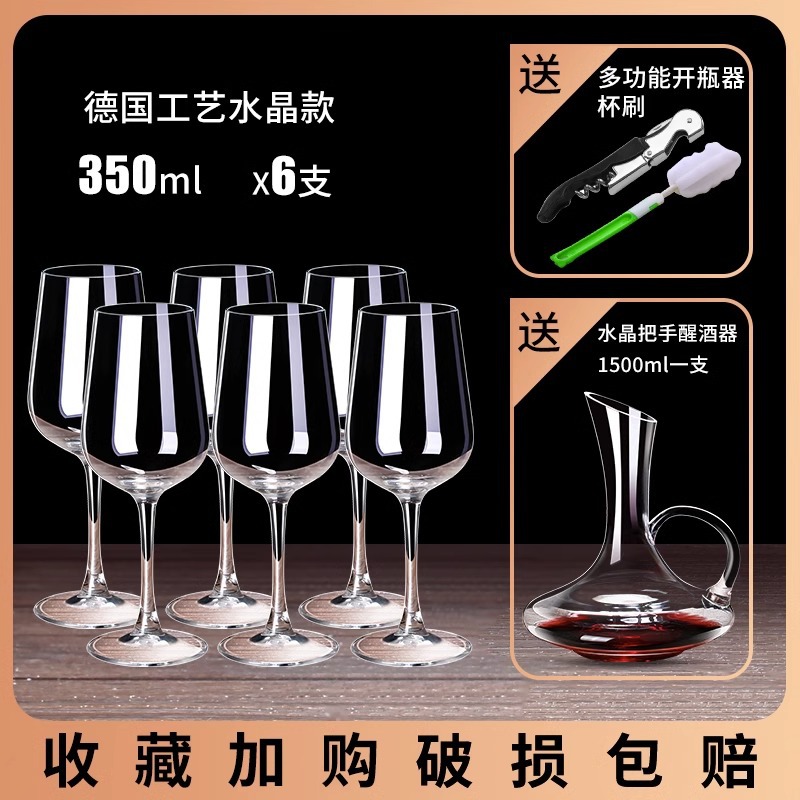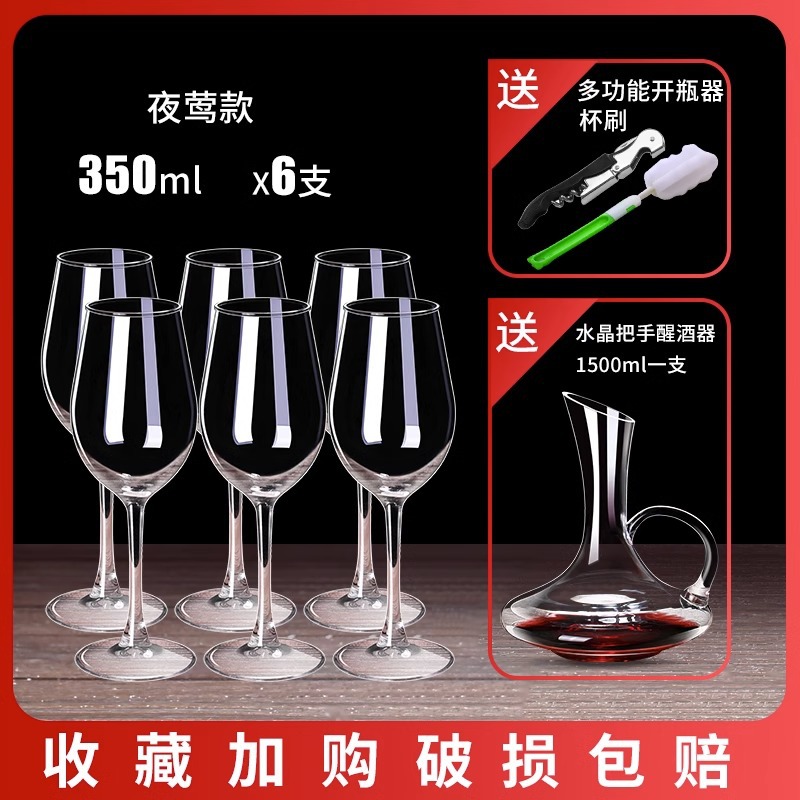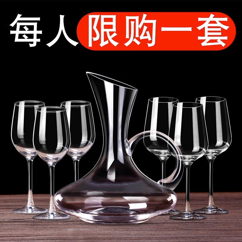 红酒杯套装欧式家用6只葡萄酒醒酒器大号水晶玻璃高脚杯创意酒具