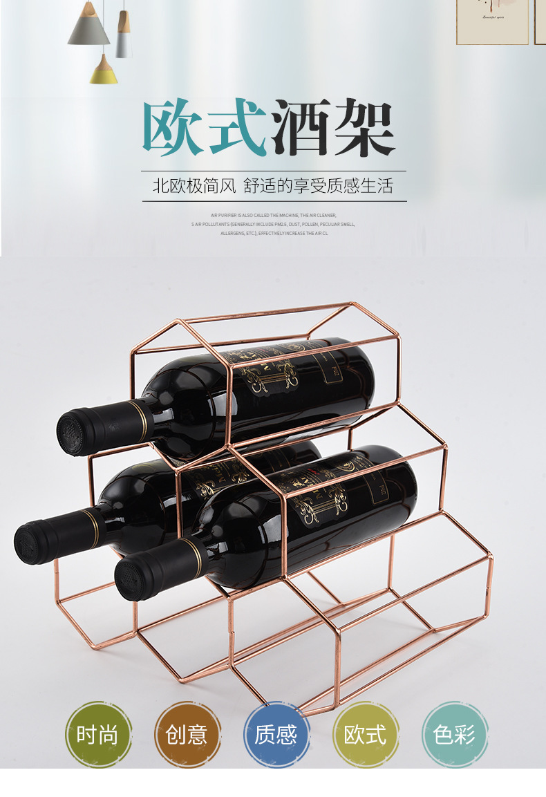 铁艺红酒架葡萄酒红酒架北欧样板间家饰品酒柜摆件酒瓶置物架酒柜