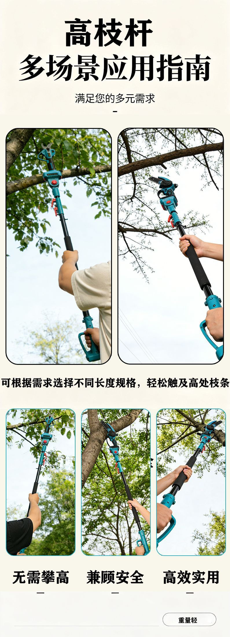 电动高枝锯高枝剪高杆锯高空锯修枝充电木工园林工具锂电