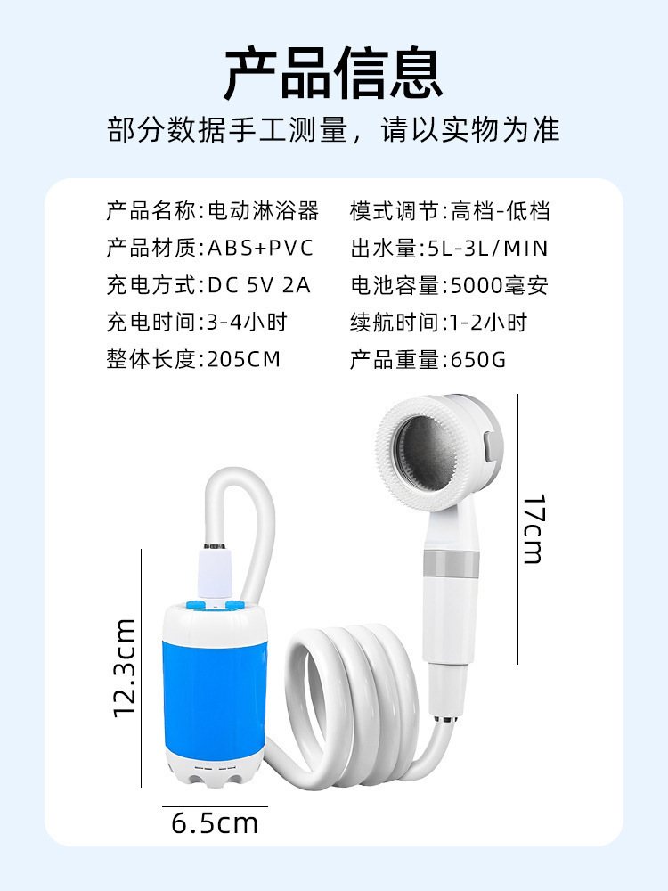 随身携带户外沐浴神器宿舍露营方便洗澡器充电式水泵便捷携带花洒