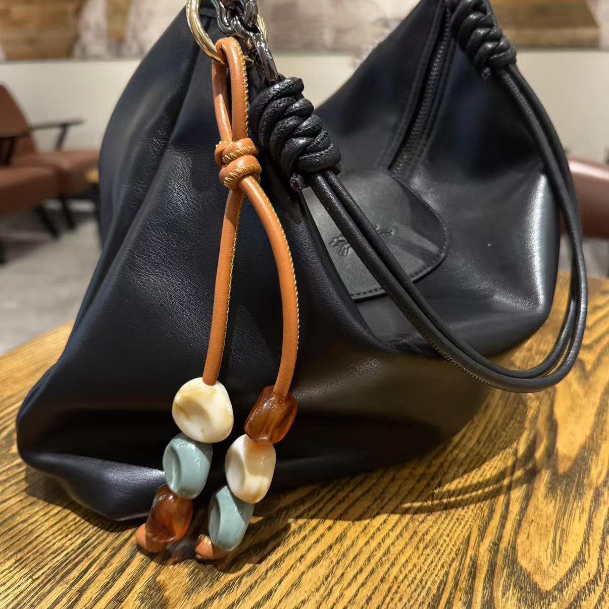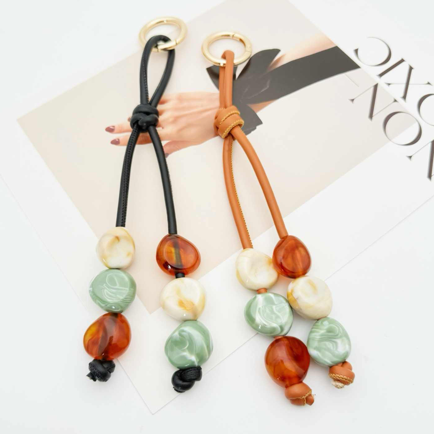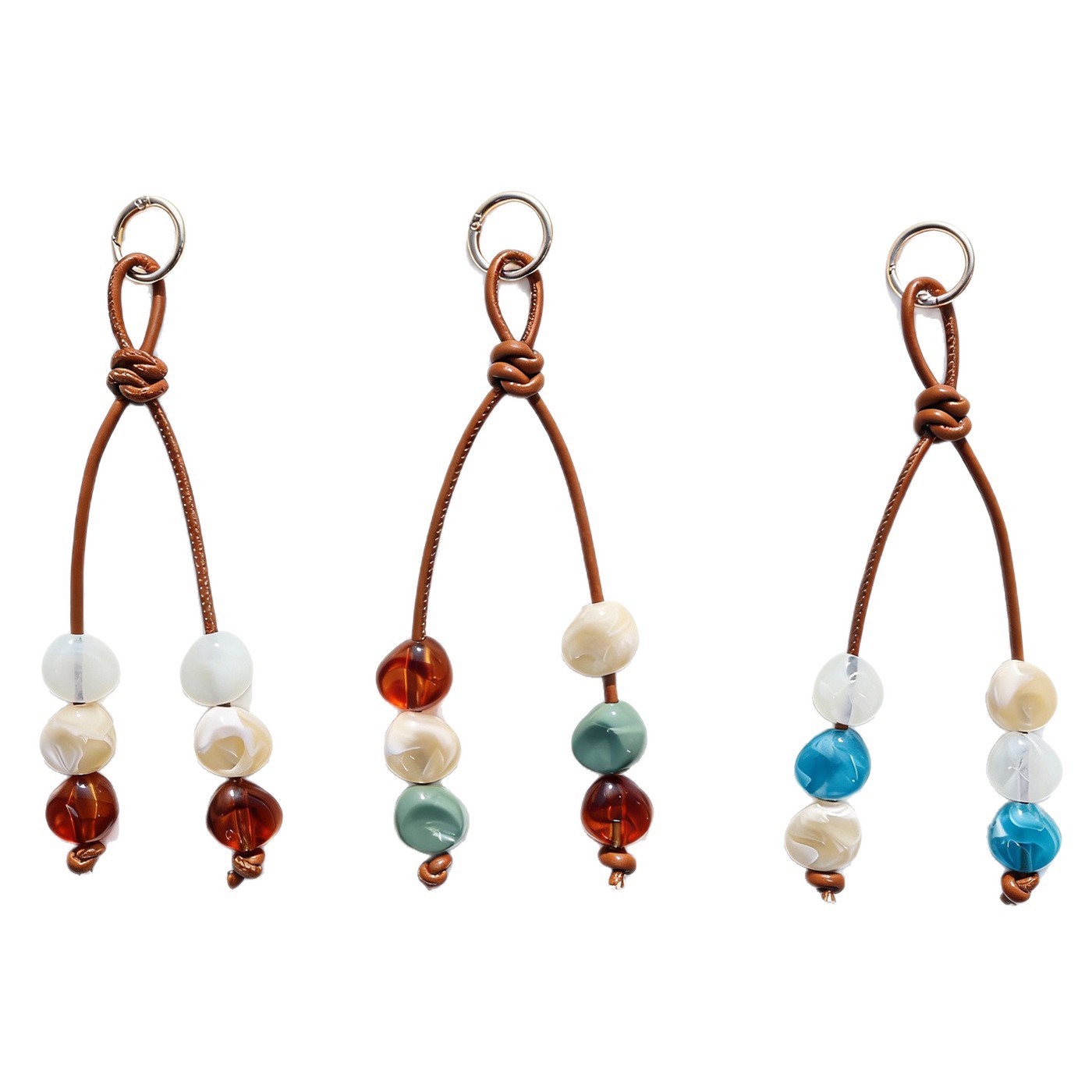 PU皮绳多色串珠编织包挂自然纹理扁珠挂坠钥匙扣箱包挂件包包挂饰