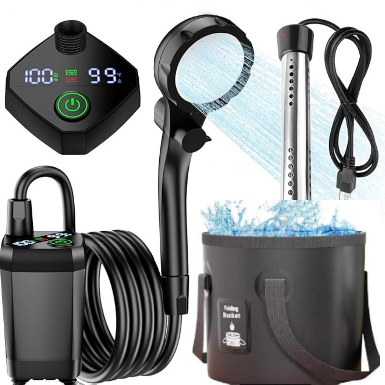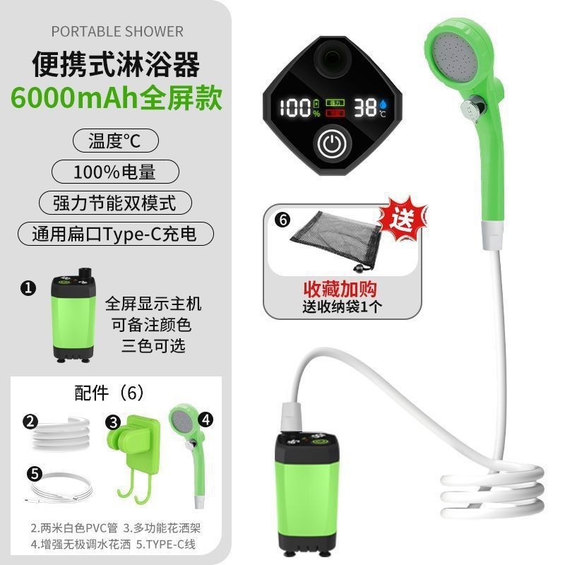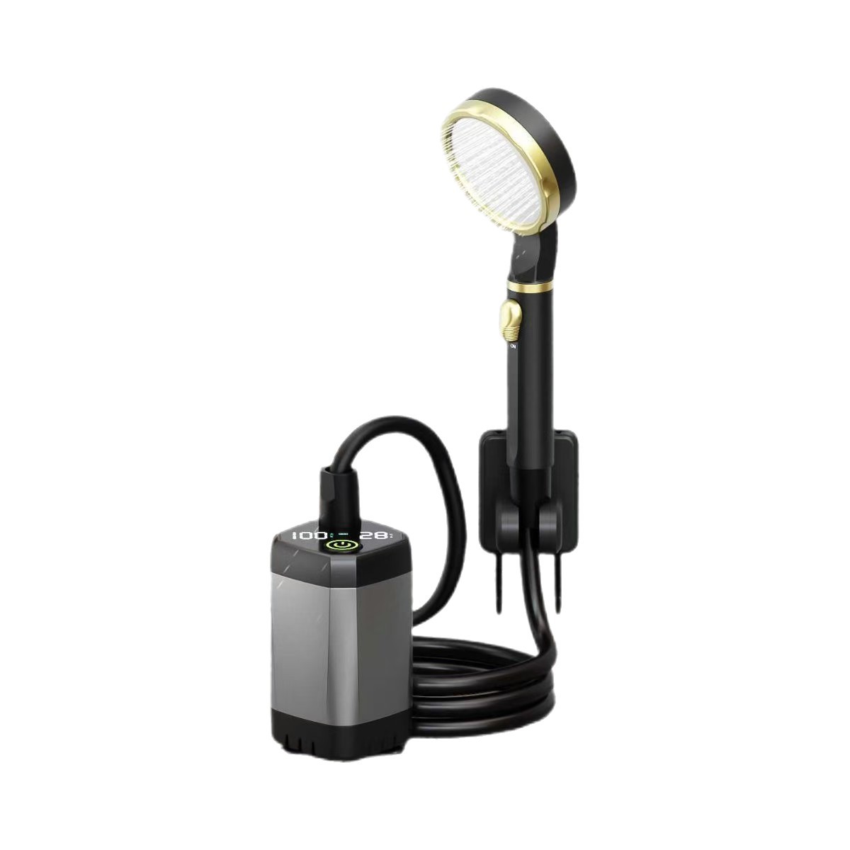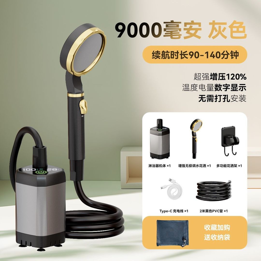 户外便携淋浴器野外露营洗澡器360度旋转挂钩水电分离式电动花洒