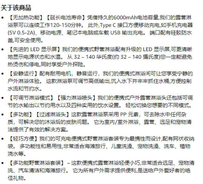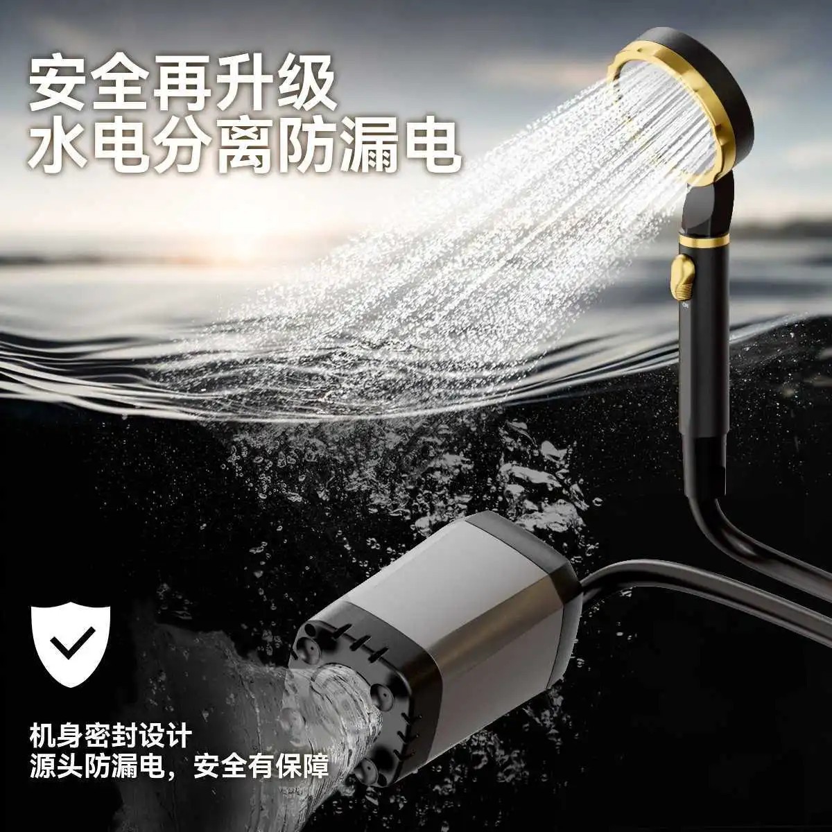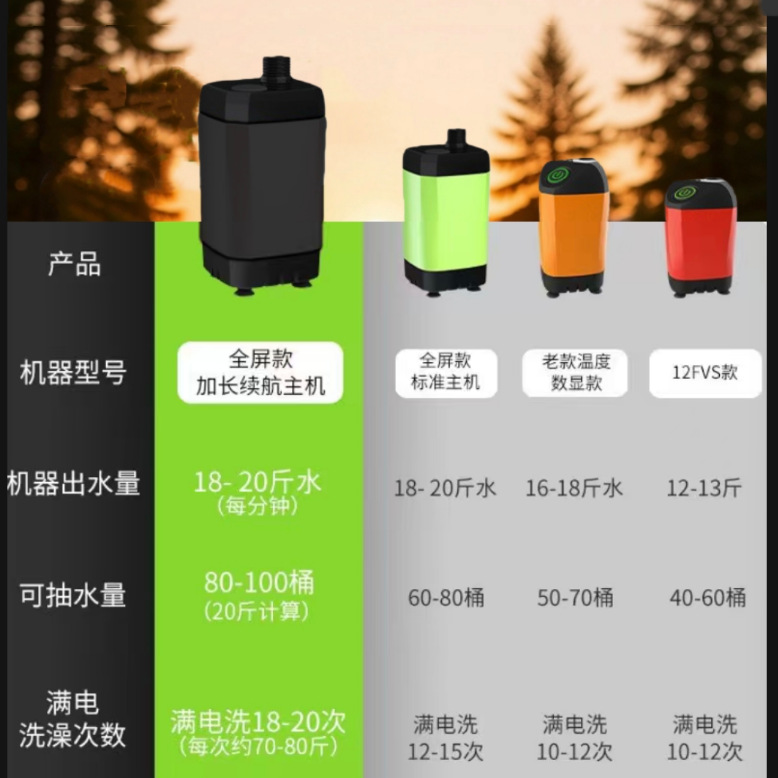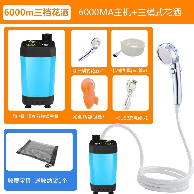户外便携淋浴器野外露营洗澡器360度旋转挂钩水电分离式电动花洒