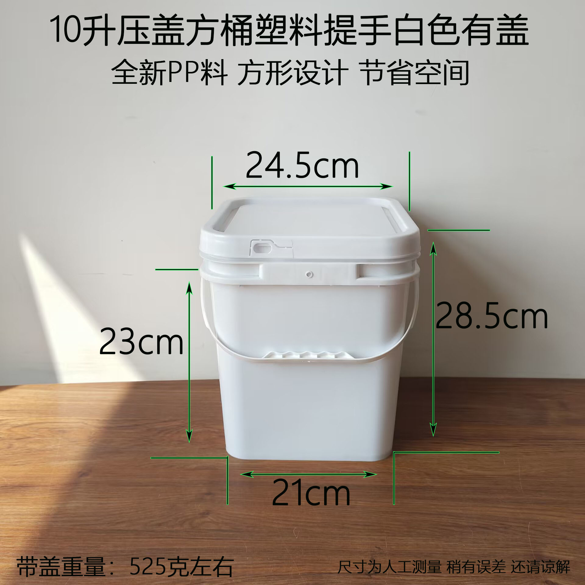 10升10L垃圾桶正方形塑料包装水桶背涂胶水全新PP料熟塑料桶熟胶