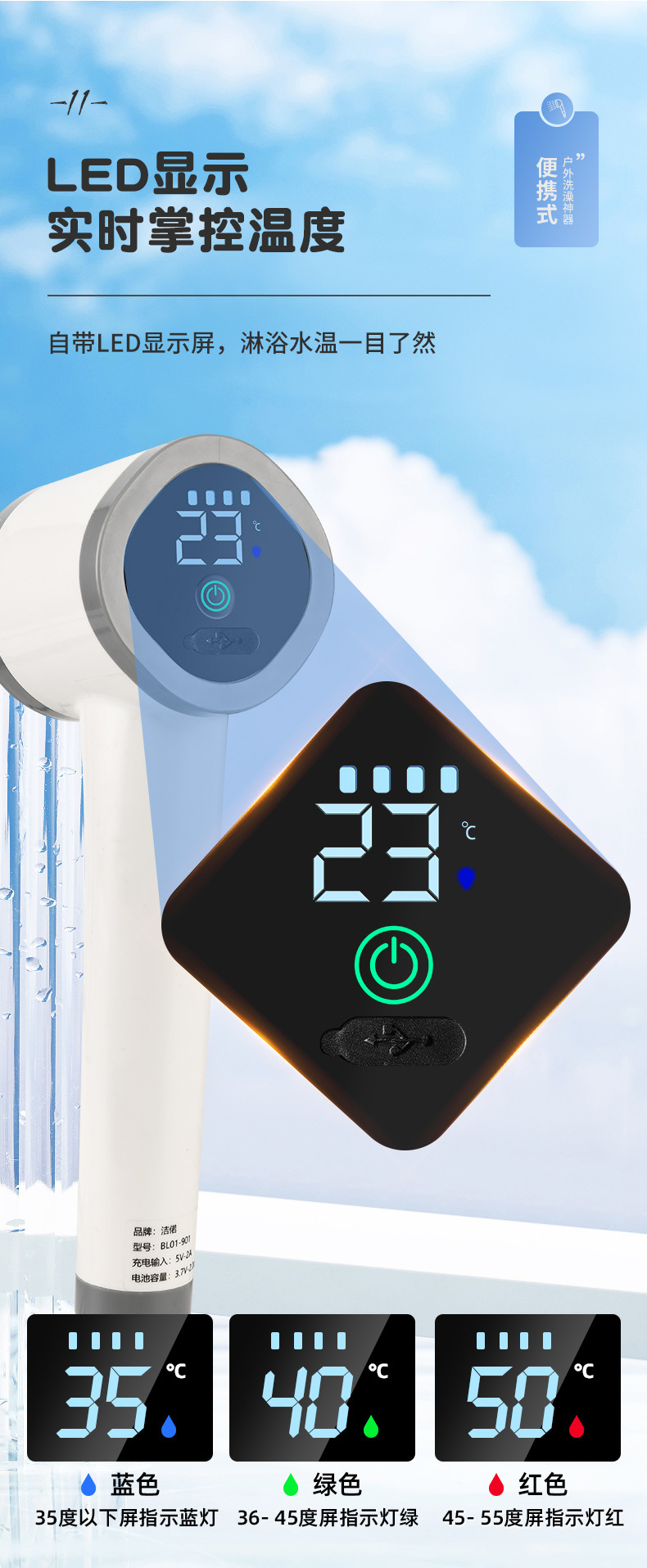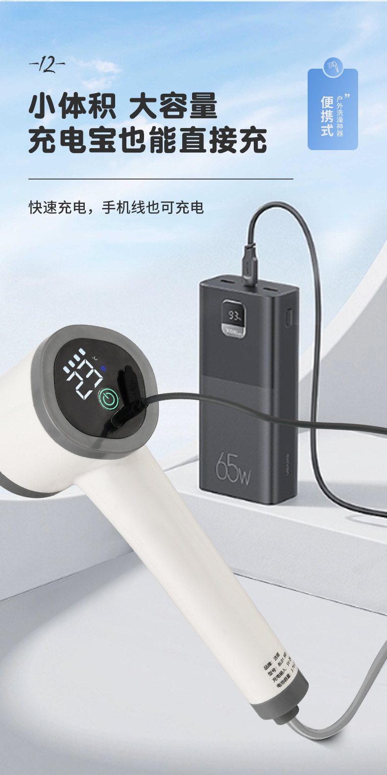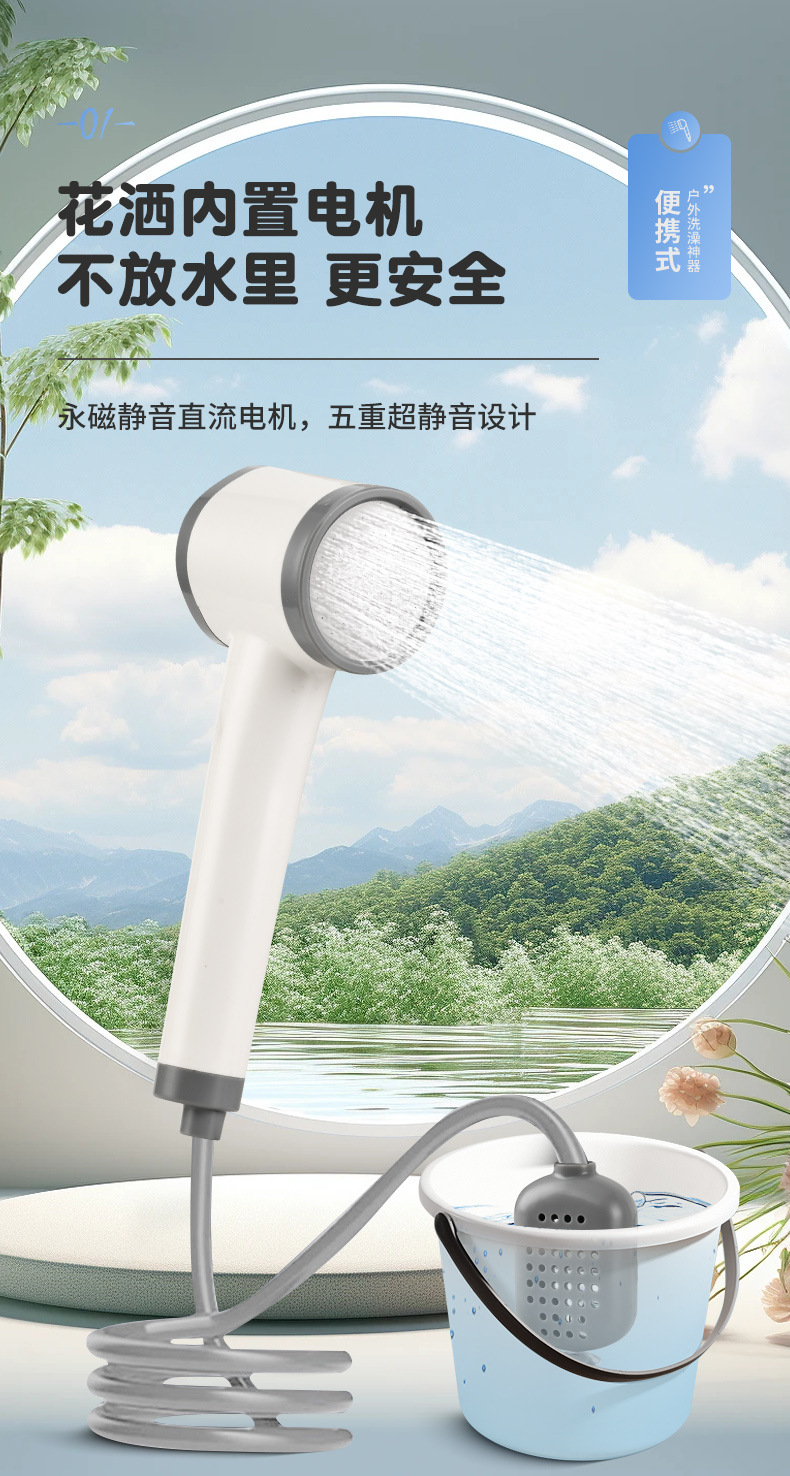 户外洗澡神器农村宿舍出租屋便携式自吸移动淋浴器电动充电花洒