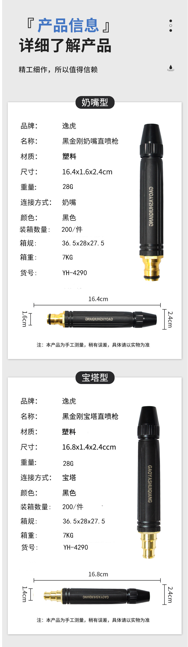黑金刚直喷水枪奶嘴宝塔型全塑料款水枪家用洗车园林高压水枪批发