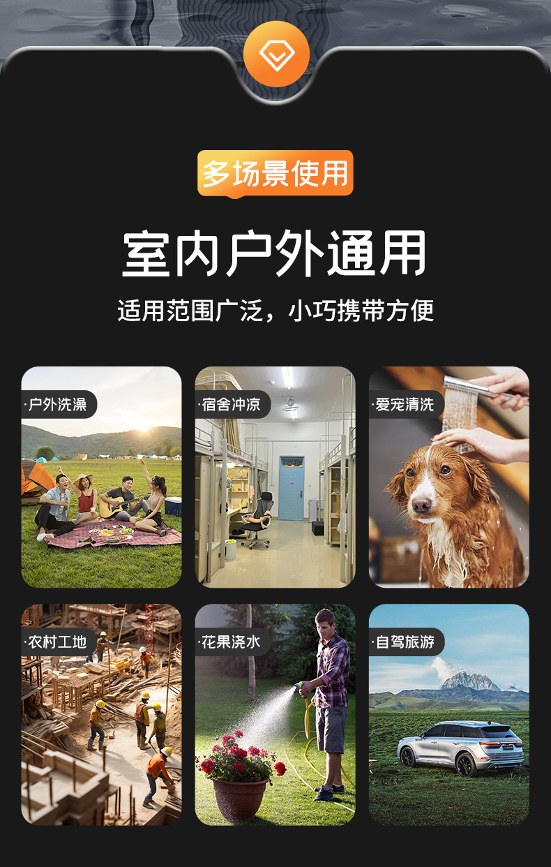 户外淋浴器农村洗澡便携式花洒智能淋浴花洒出租房宿舍移动露营