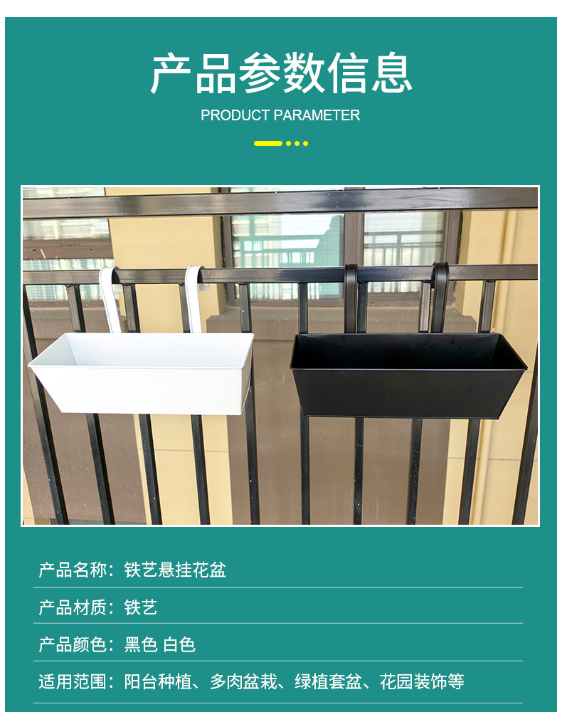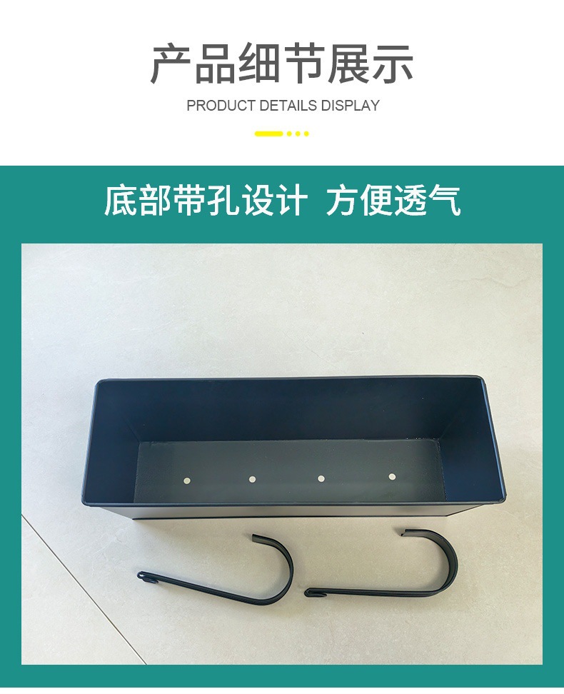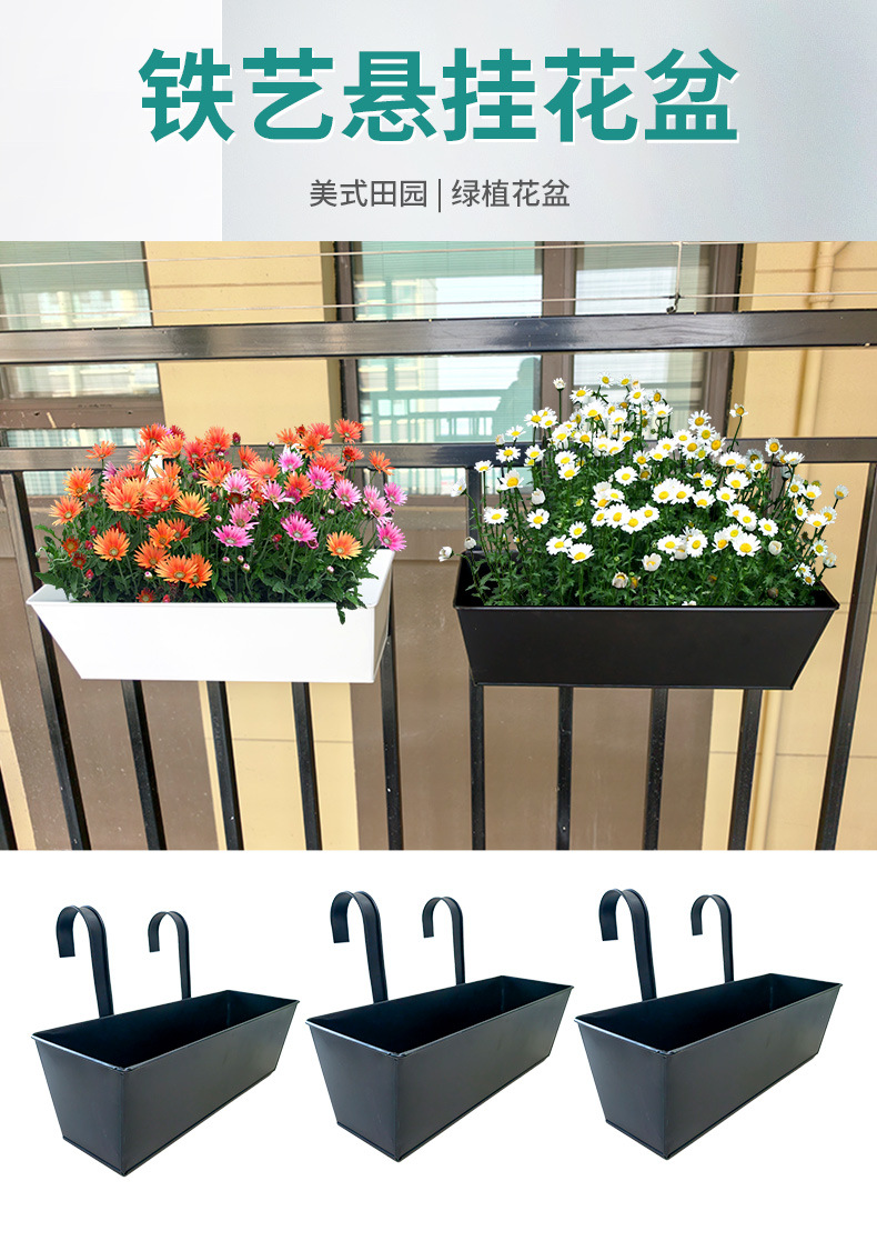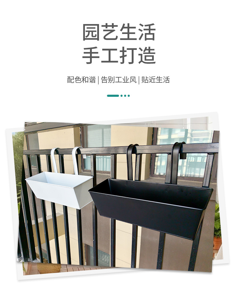 跨境热卖室内室外绿化家居园艺悬挂铁艺金属长方形花盆可拆卸挂桶