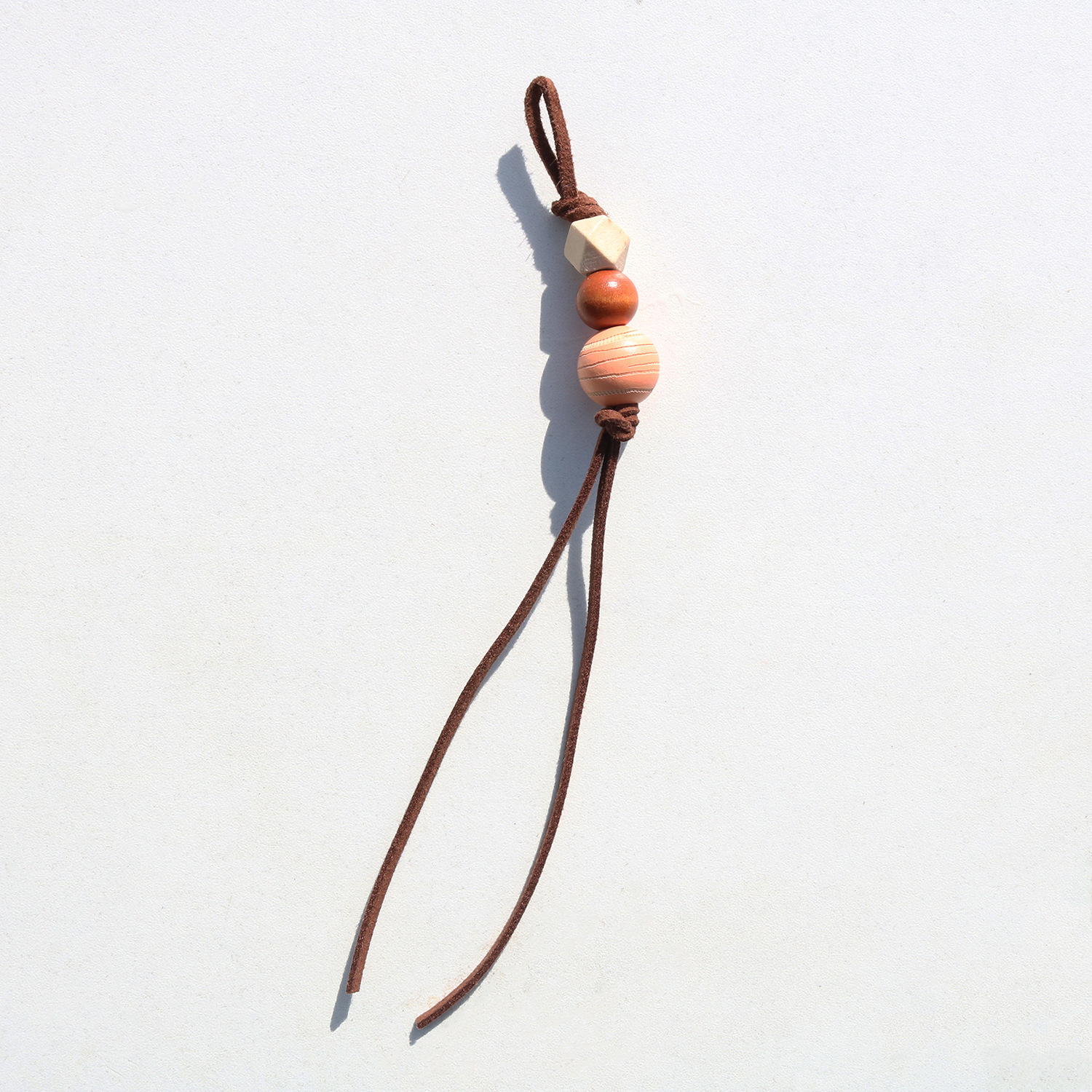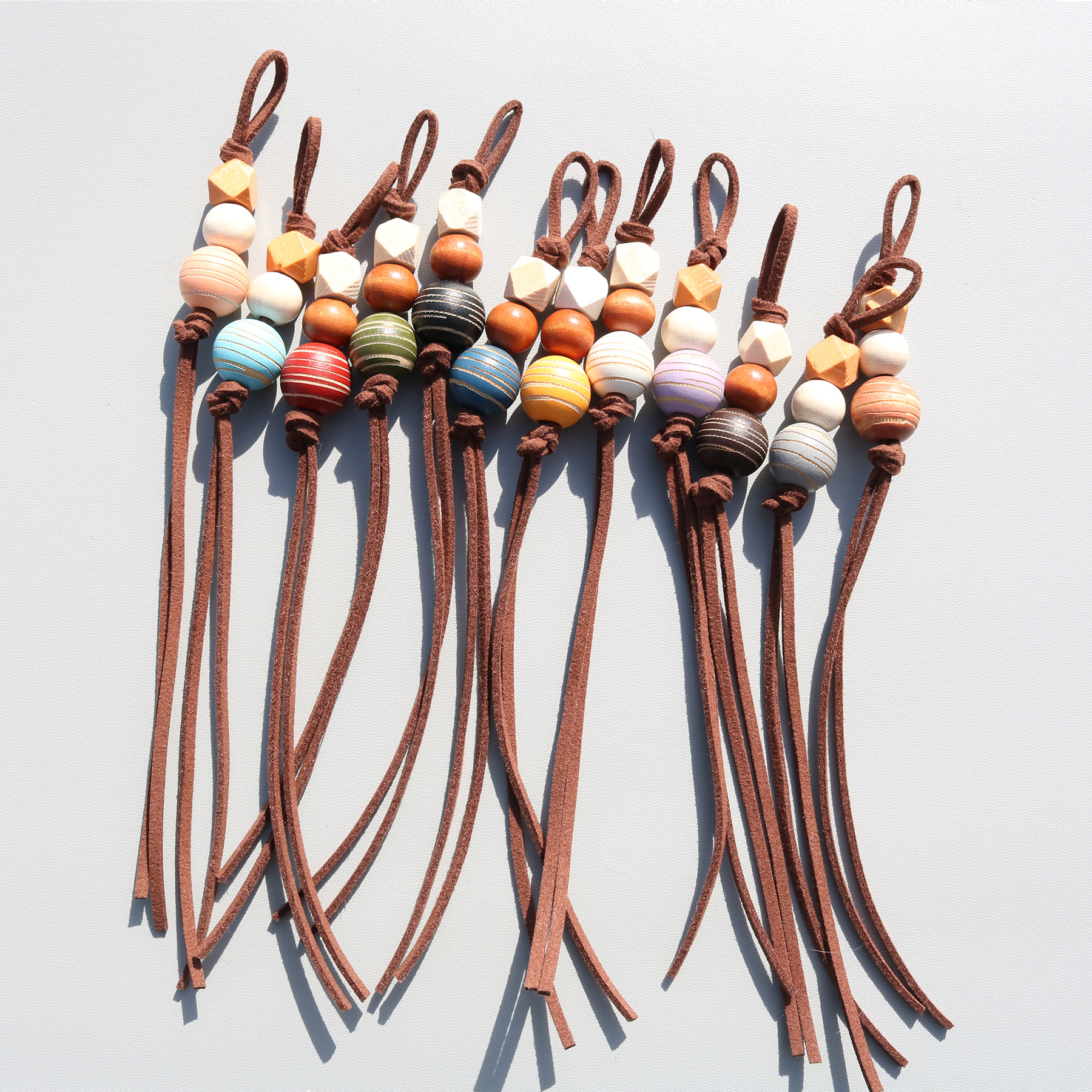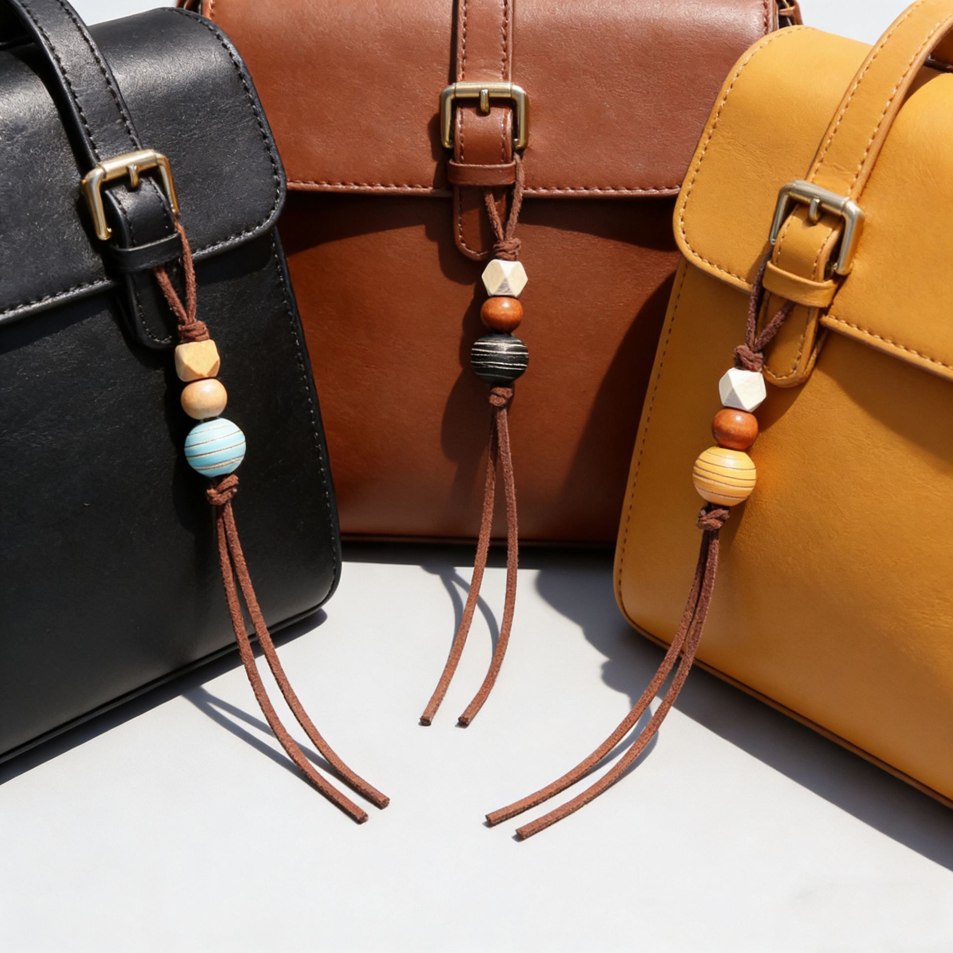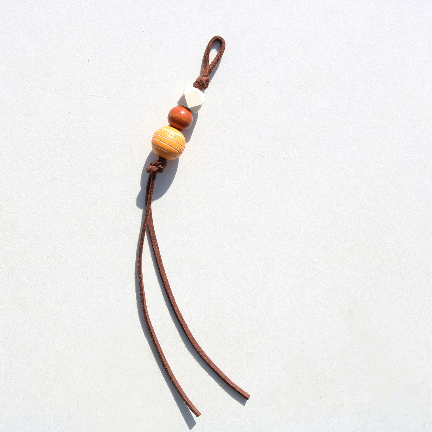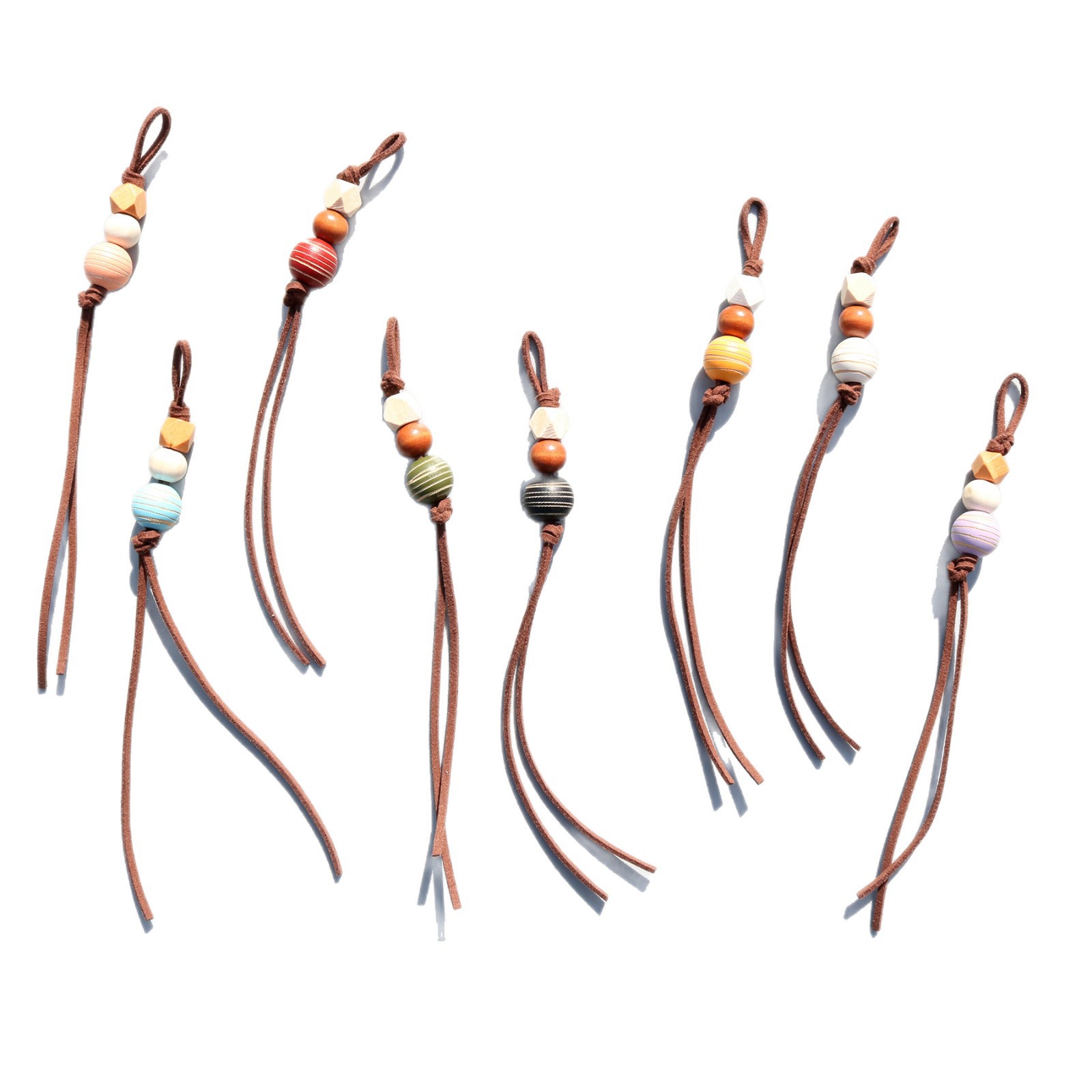 创意miu系串珠包挂件简约棕色系皮绳木珠挂绳背包车钥匙手机挂饰