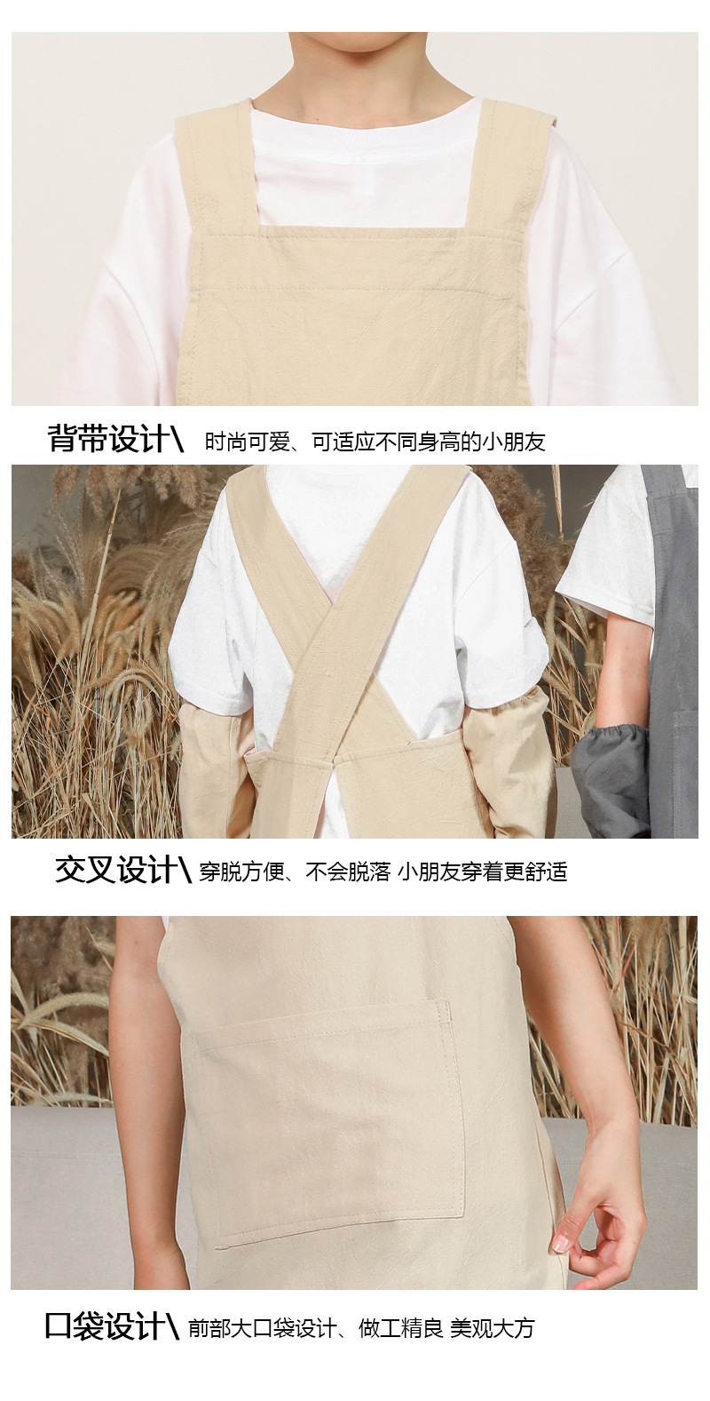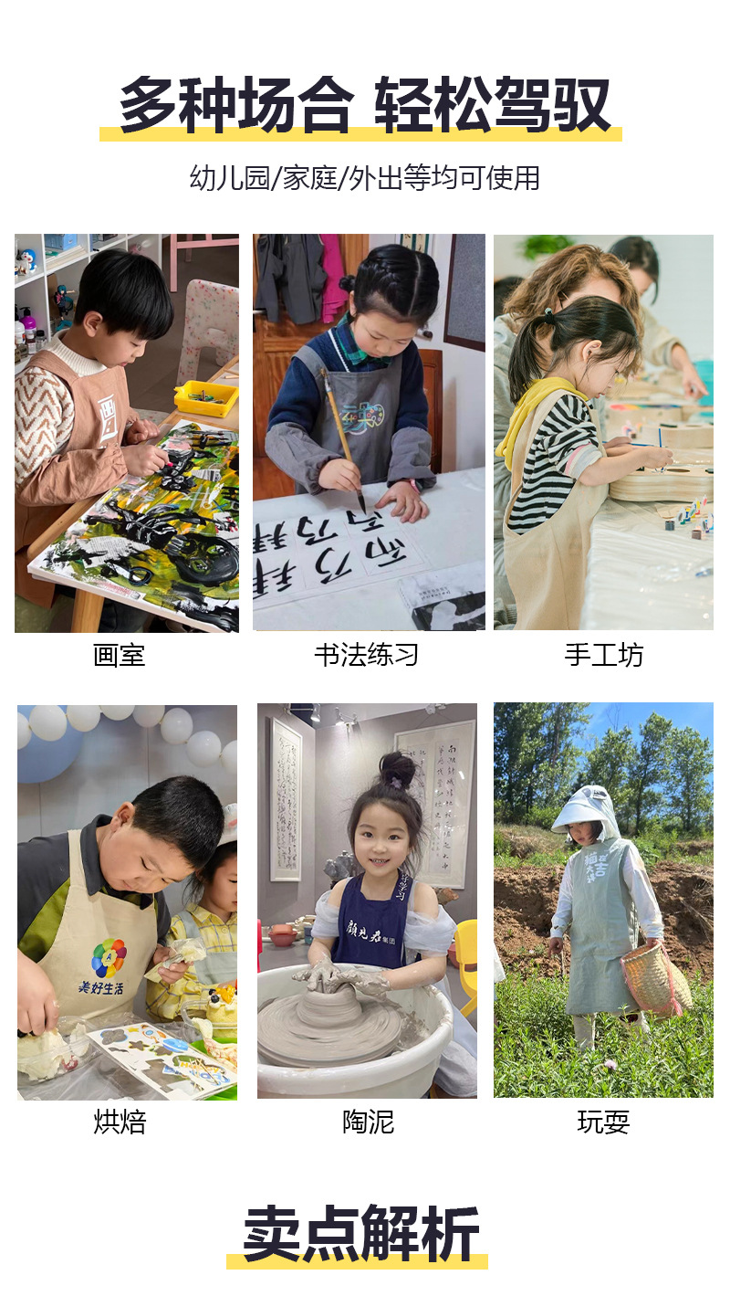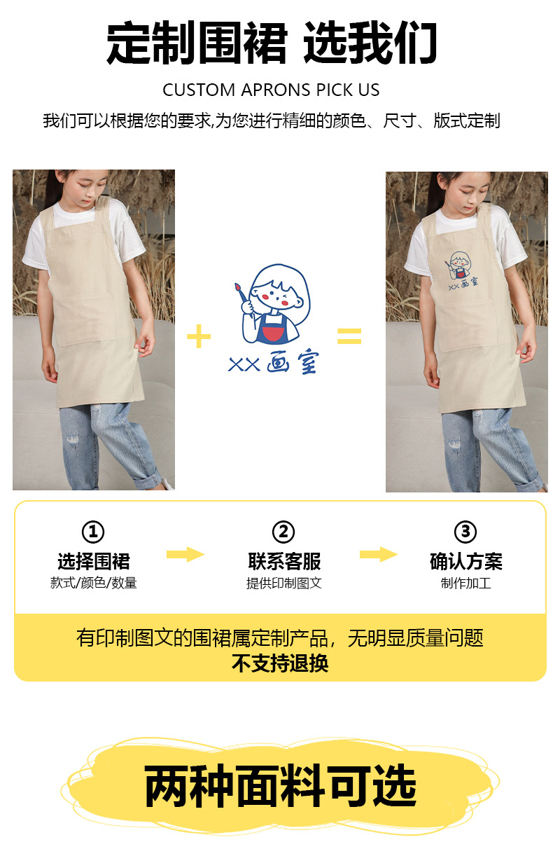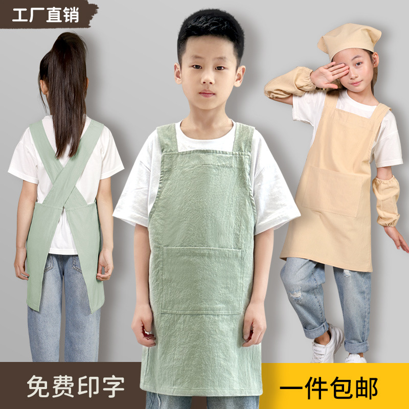 儿童围裙幼儿园画室背带日式陶泥美术画画罩衣男女孩厨房家用班服