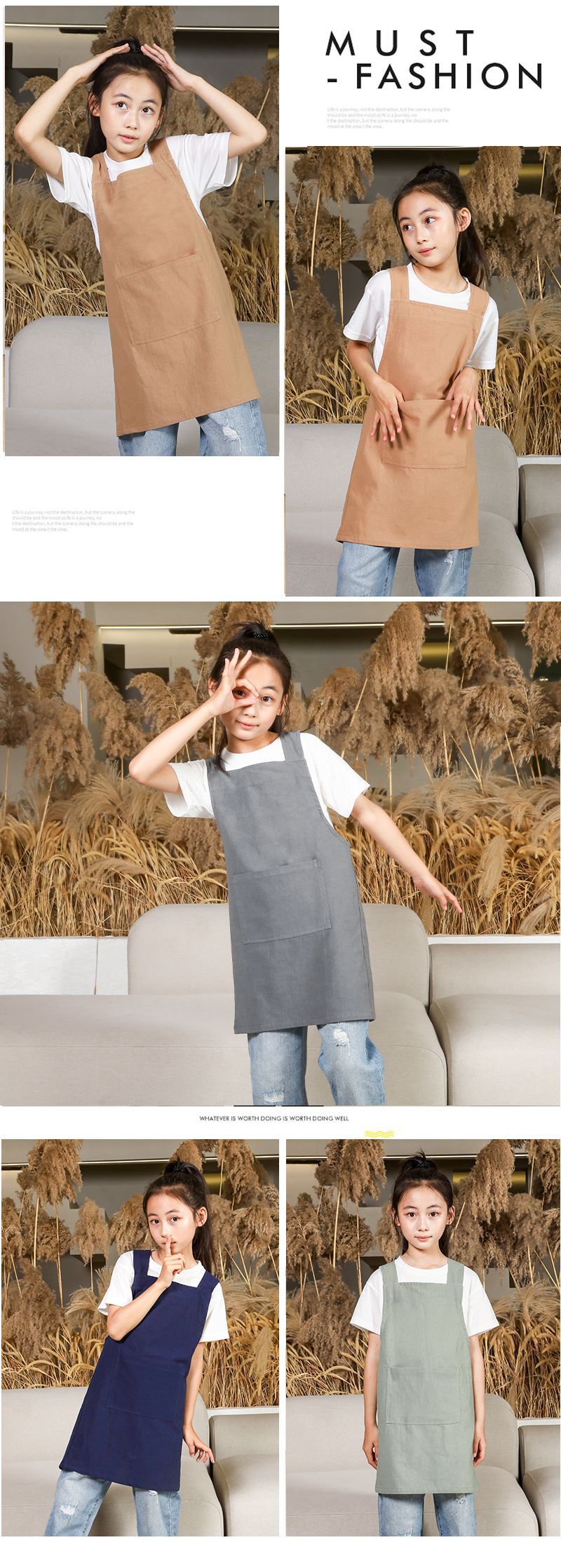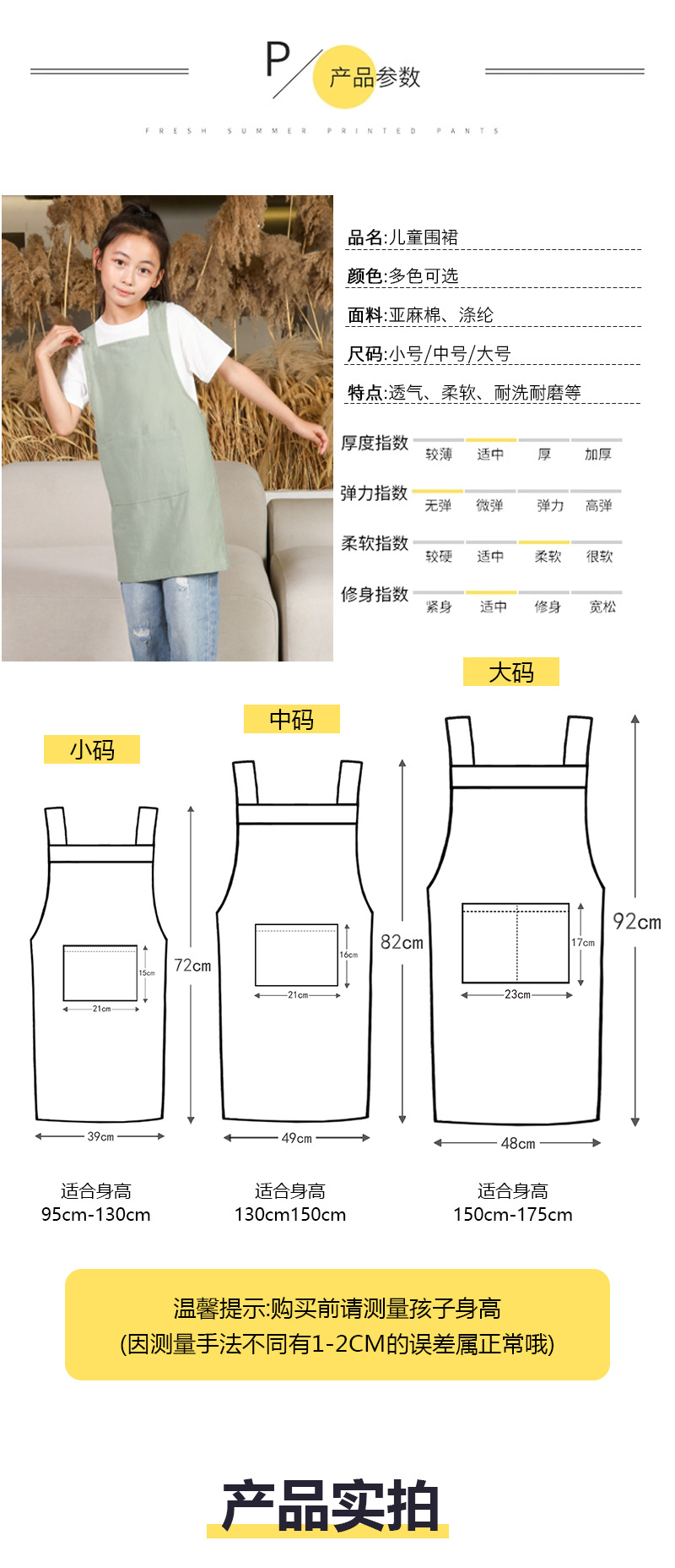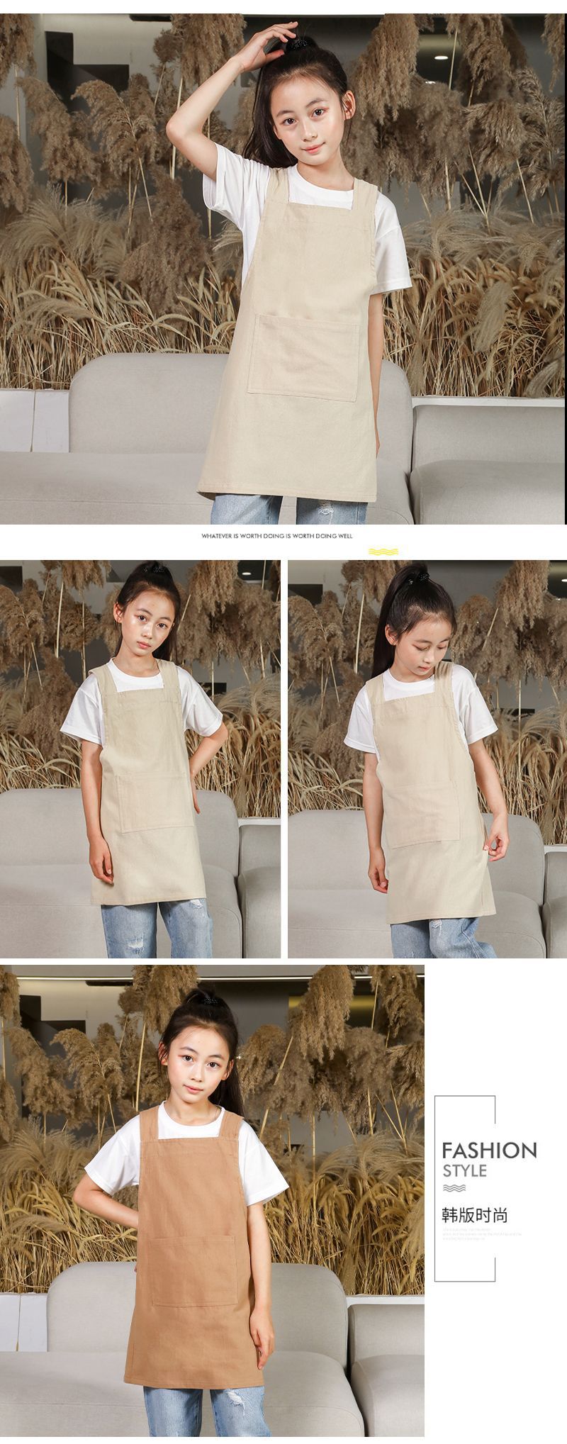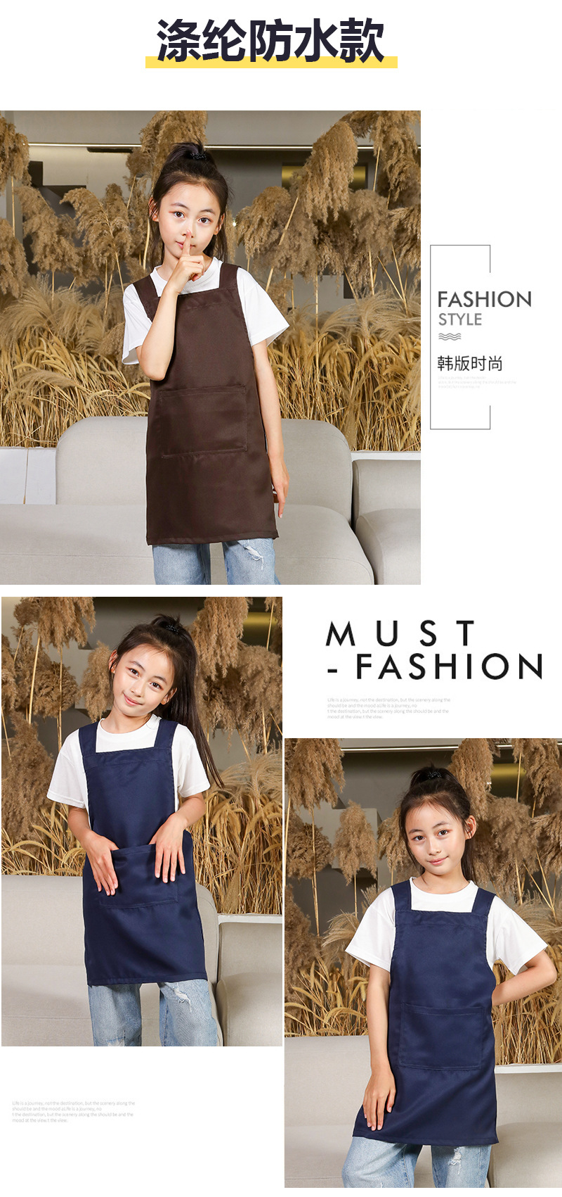儿童围裙幼儿园画室背带日式陶泥美术画画罩衣男女孩厨房家用班服