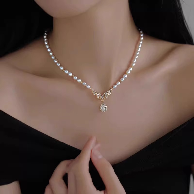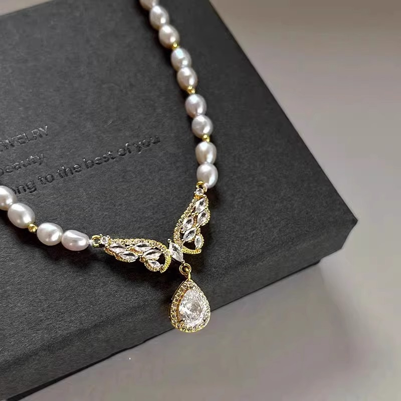 天然淡水珍珠项链 气质时尚百搭锁骨链 轻奢高级感蝴蝶翅膀颈链女
