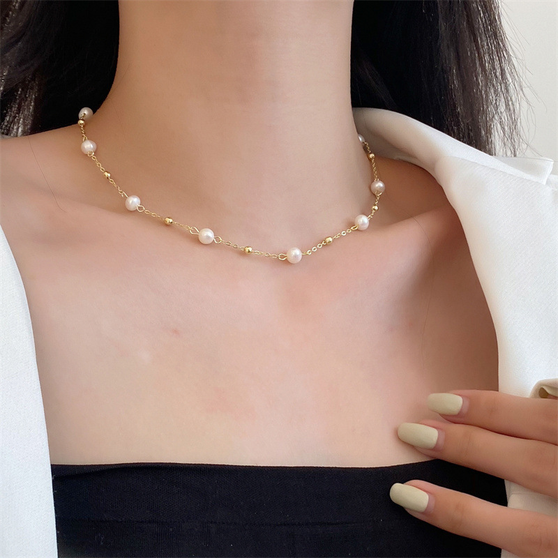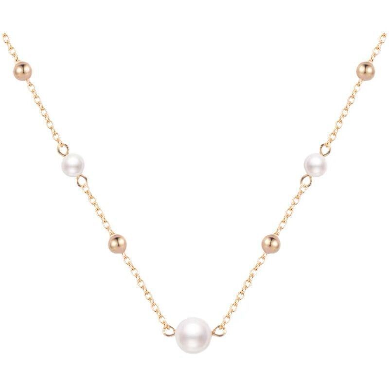 满天星金珠珍珠项链女 简约气质锁骨链 14K包金天然淡水珍珠颈链