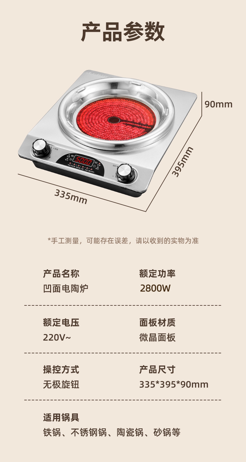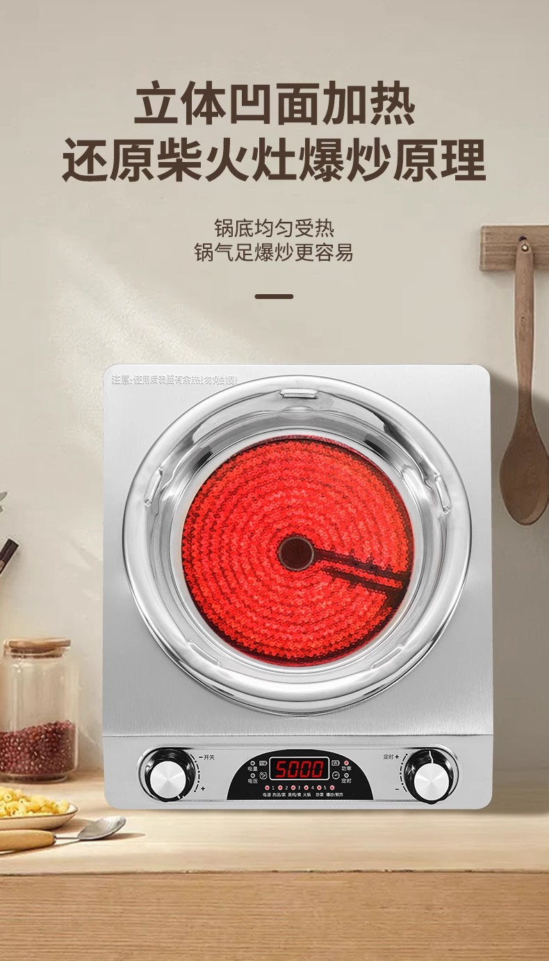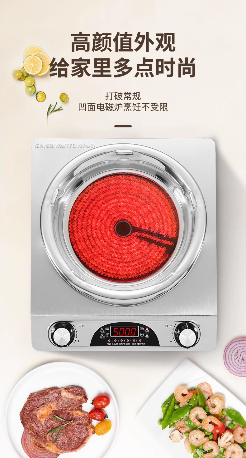 电磁电陶炉凹面大功率不挑锅猛火火锅炒菜火锅烧烤家用多功能跨境