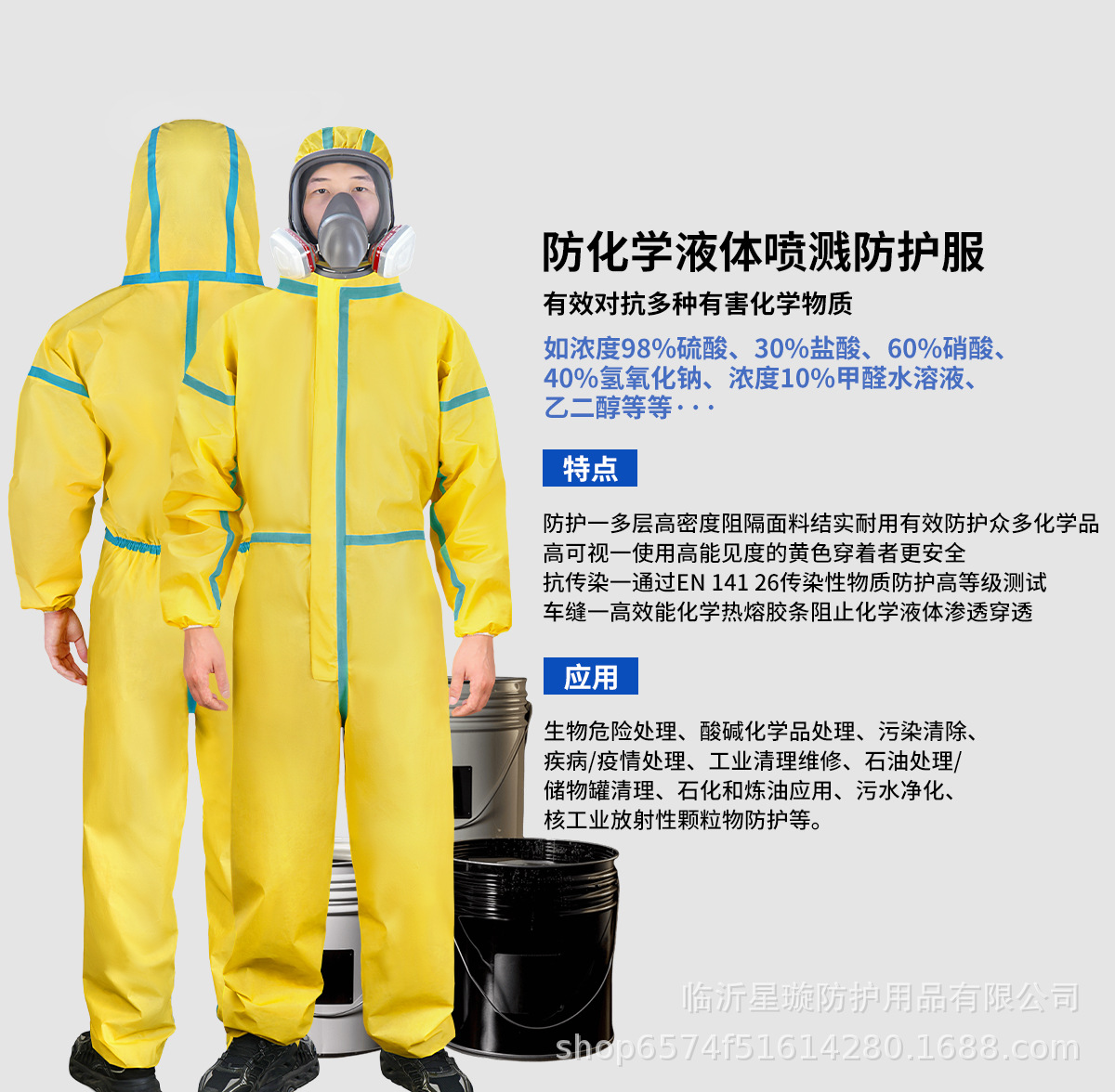 防化服连体全身耐酸碱化学实验防腐蚀工作服全封闭喷漆国标认证