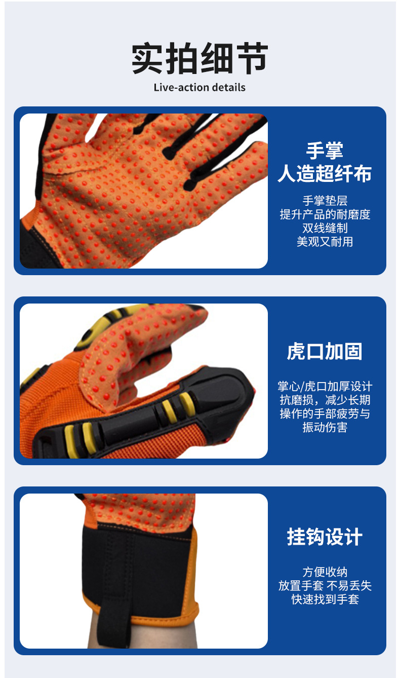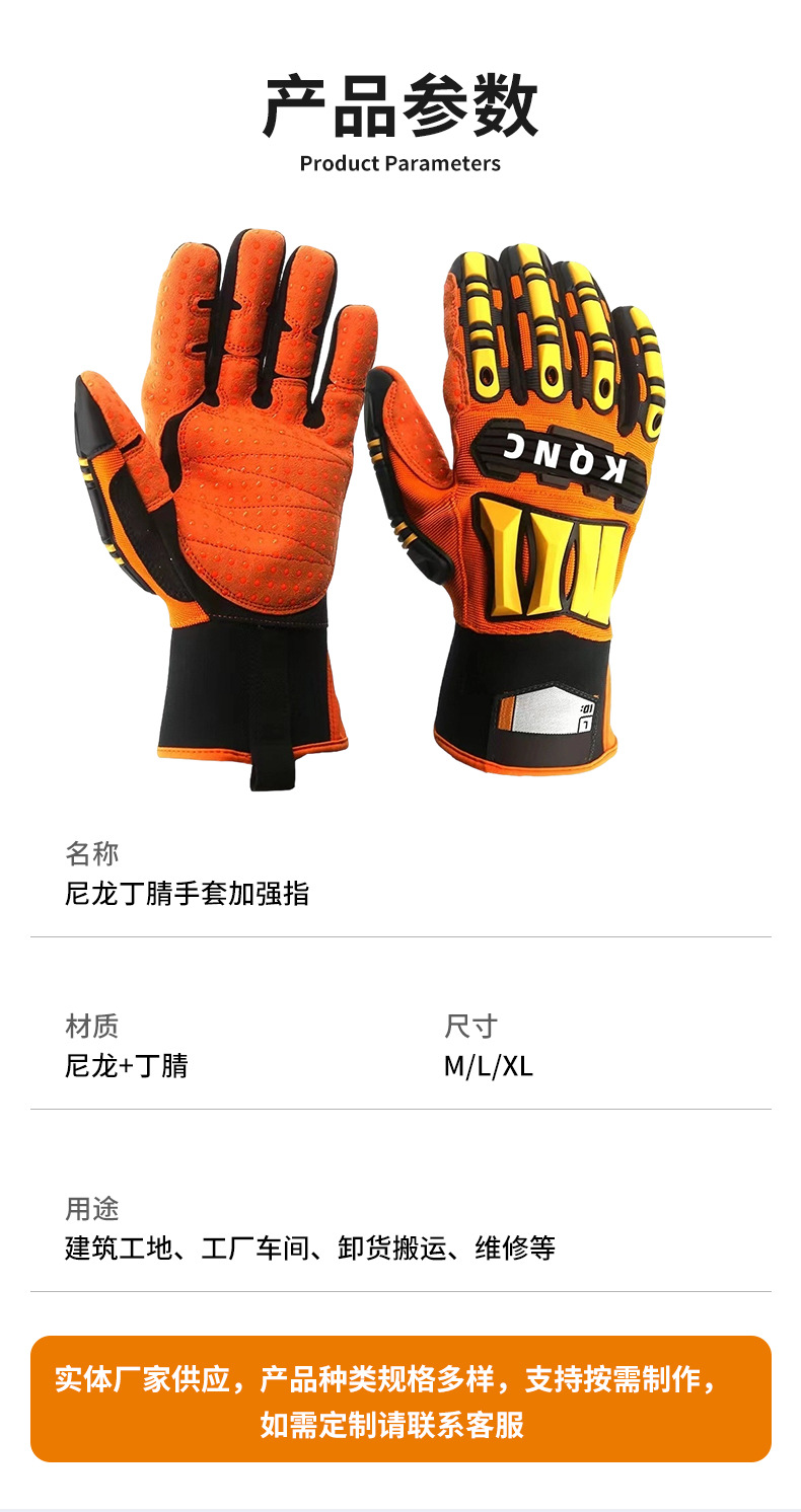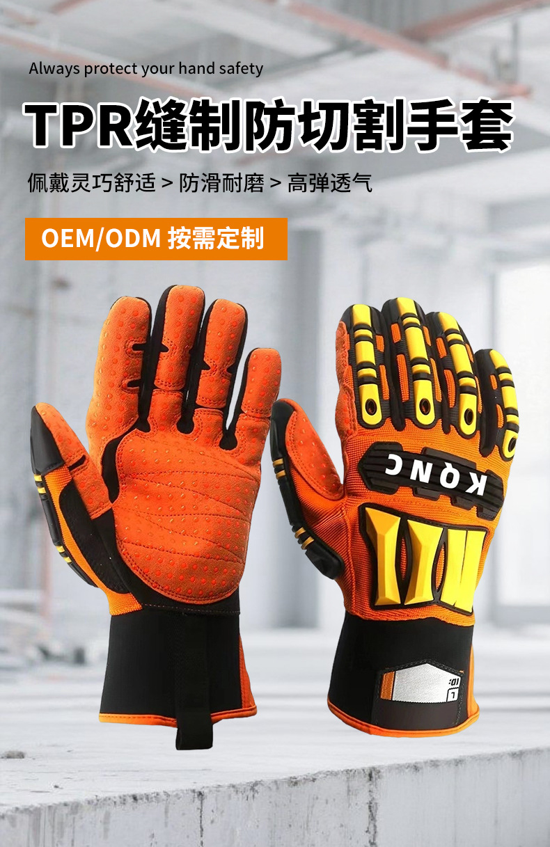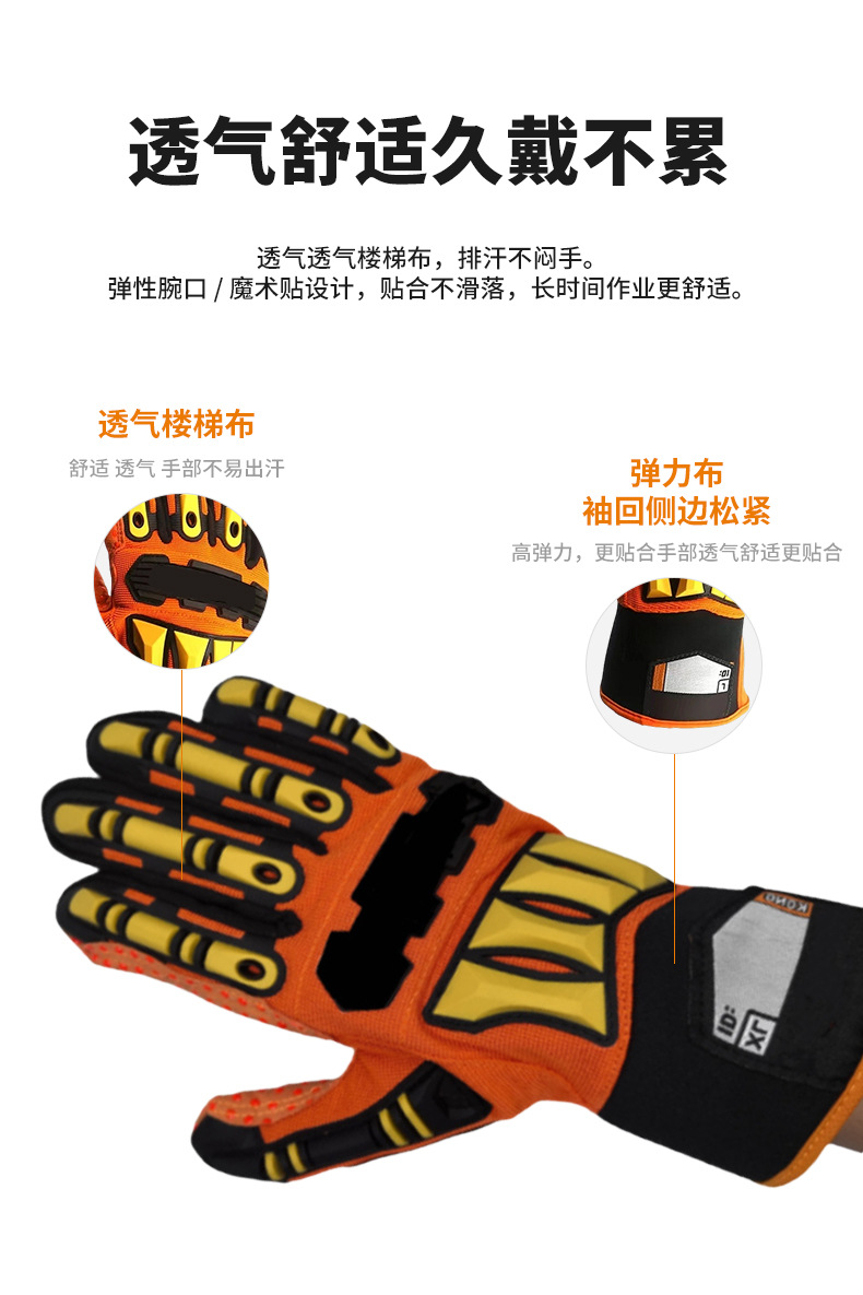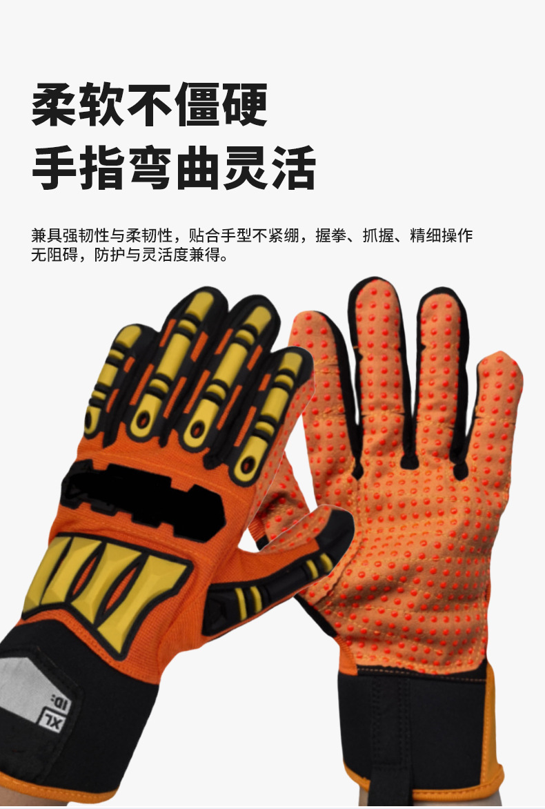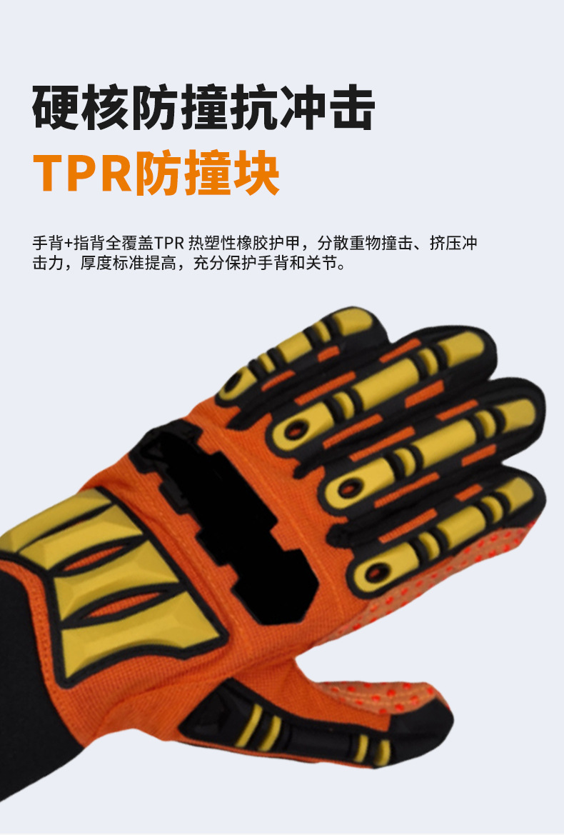 TPR防砸机械手套防撞防滑防震防刺防油耐冲击工业石油矿劳保手套