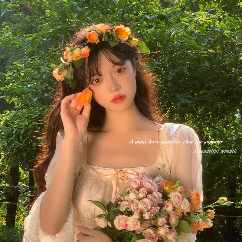 森系彩色花环头饰发箍女2026年新款儿童簪花头箍可爱仿真花朵发饰