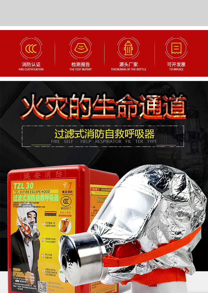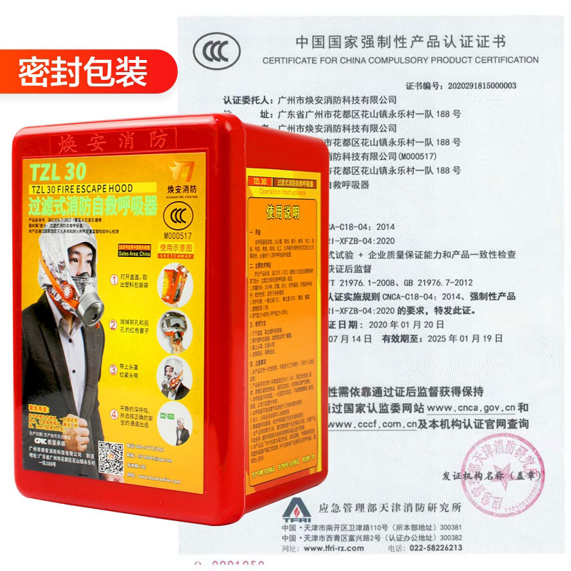 过滤式自救呼吸器酒店必备火灾逃生消防密封防火面罩面具批发