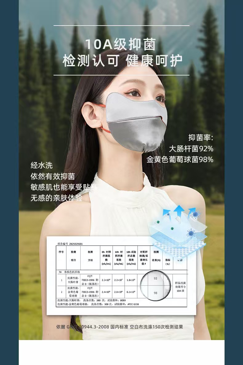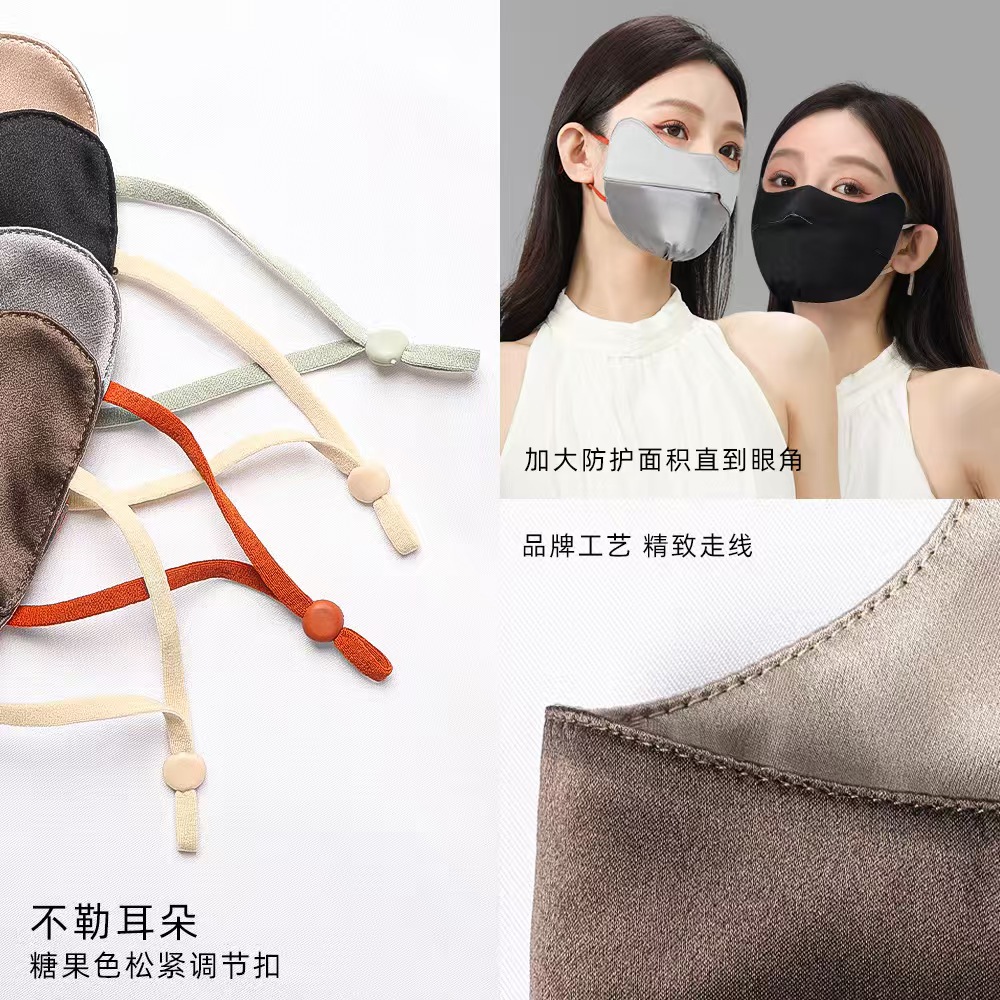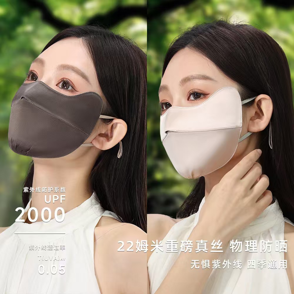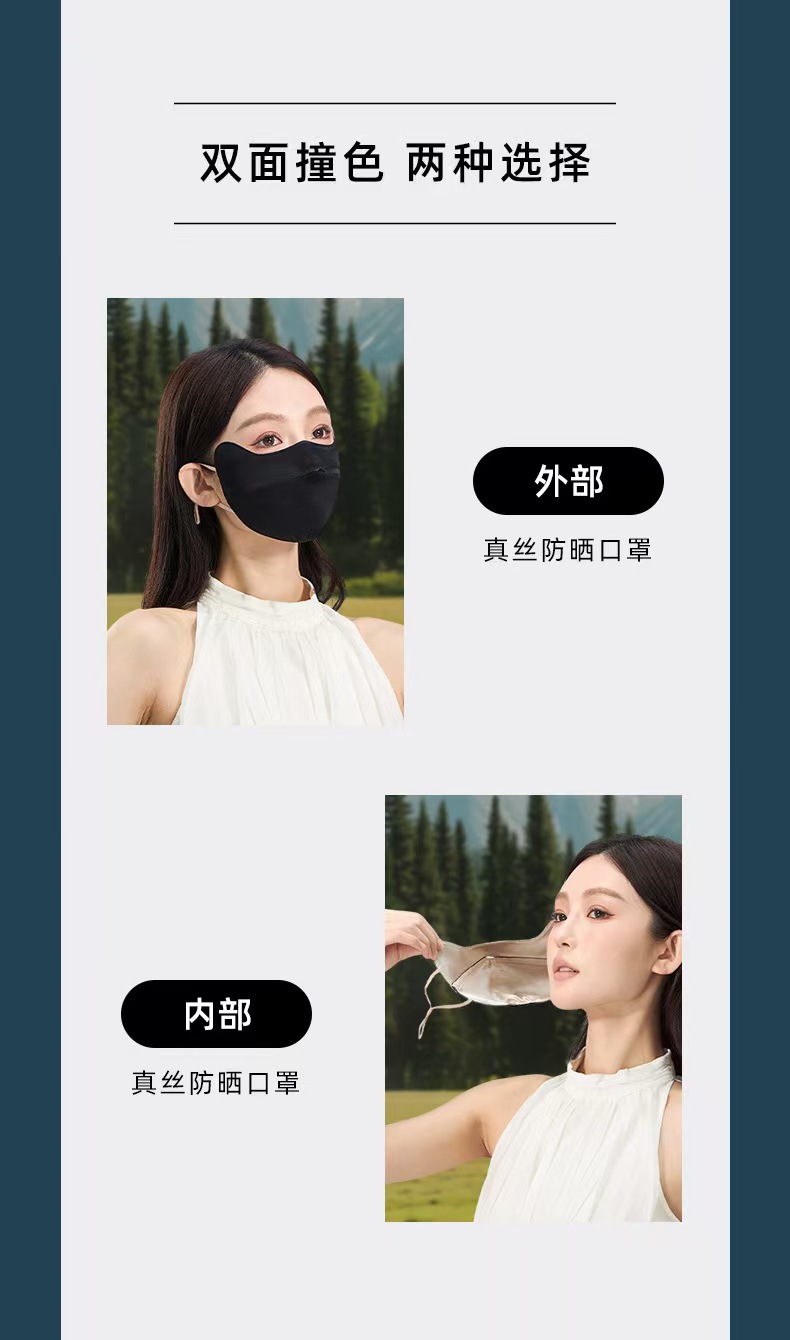 22姆米真丝防晒口罩双面桑蚕丝防紫外线立体口罩护眼角面罩脸罩