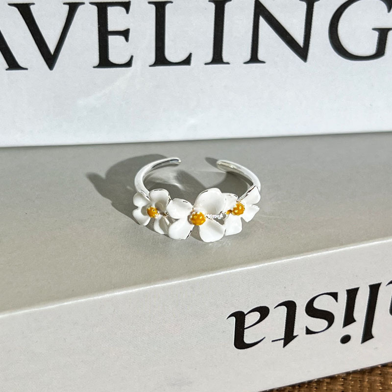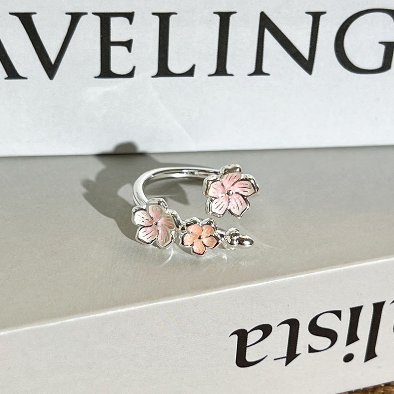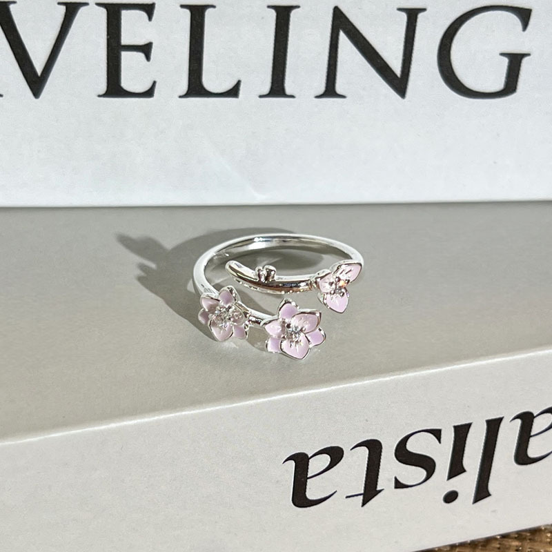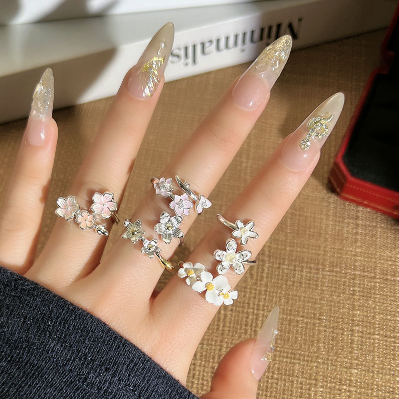 指尖生花甜妹风粉白花朵气质叠戴戒指女时尚小众轻奢高级感指环潮