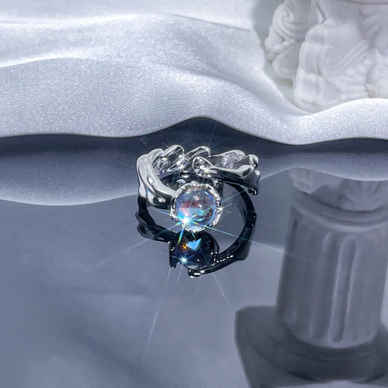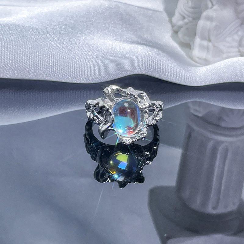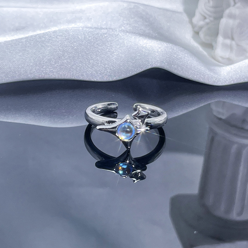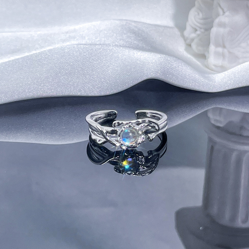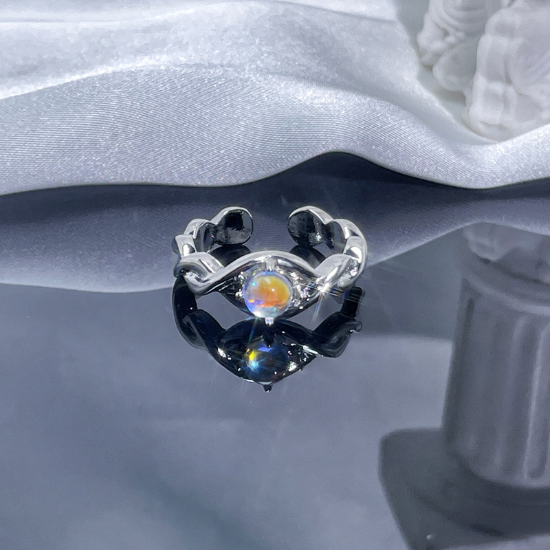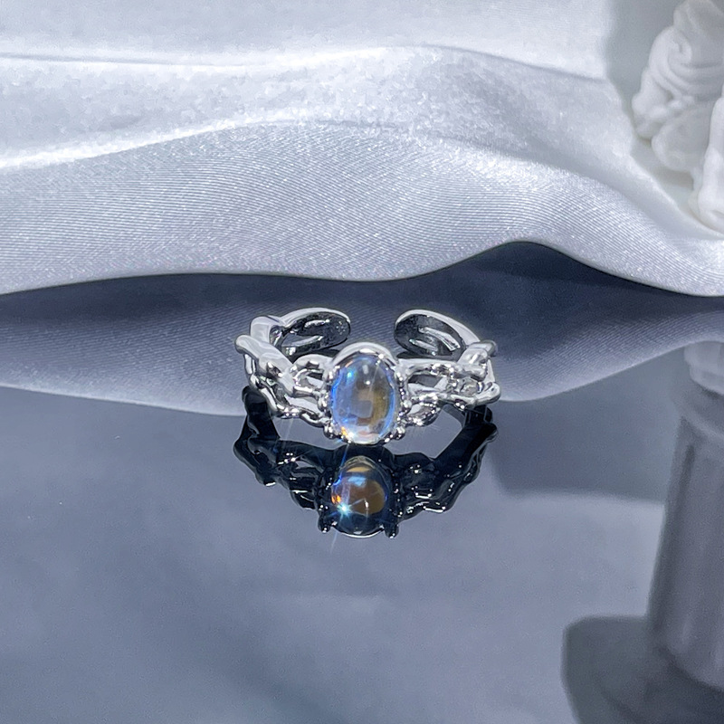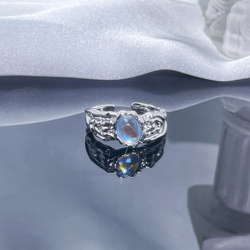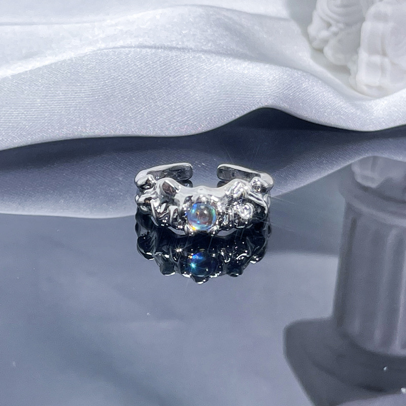 个性肌理月光石开口戒指女ins冷淡风气质甜酷时尚小众高级感指环