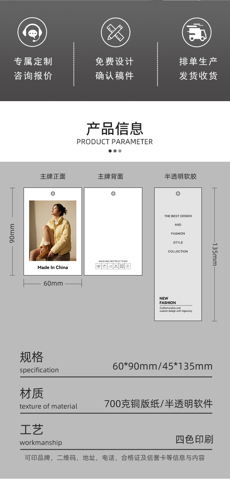 高级感男女装吊牌定制羽绒服饰标签印刷logo软胶吊卡定做免费设计
